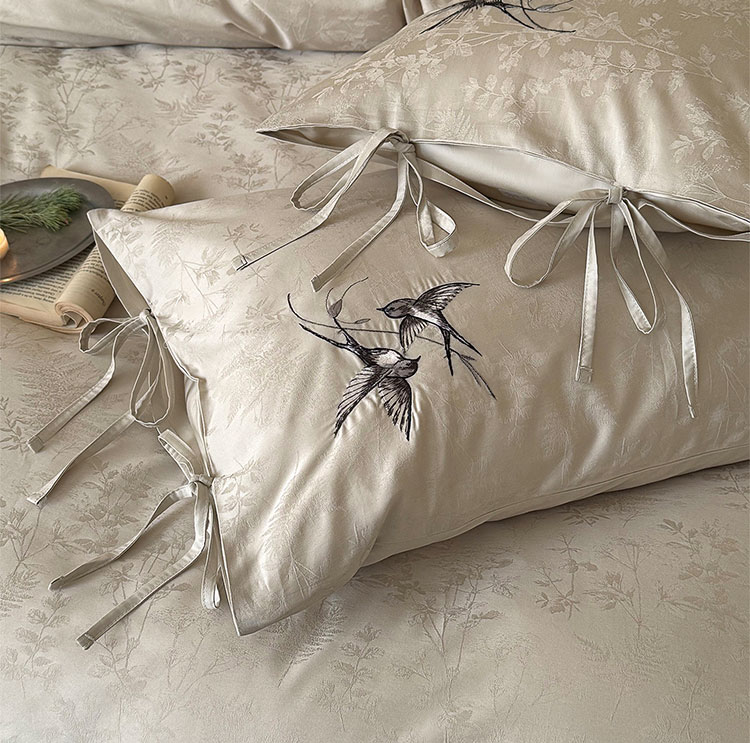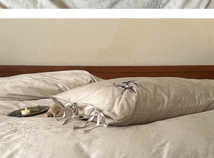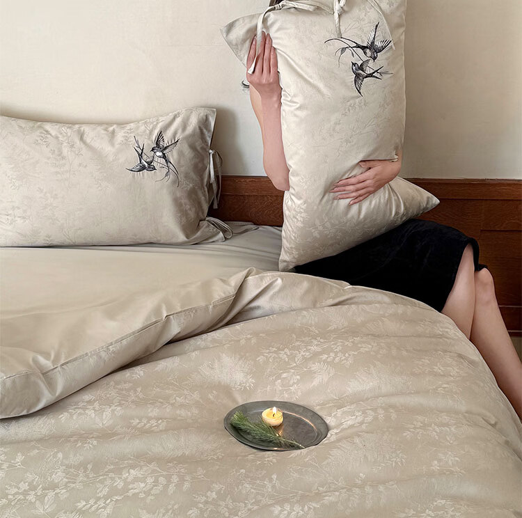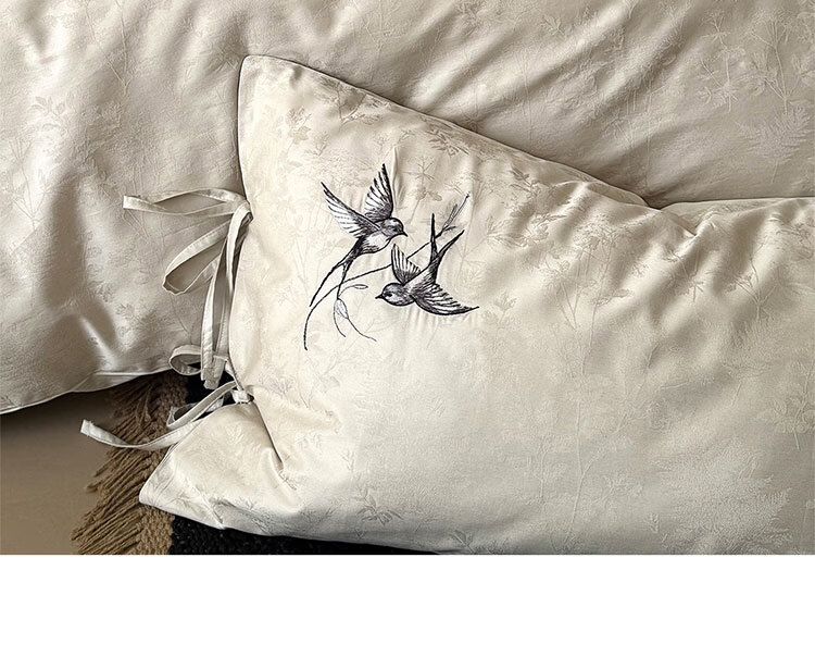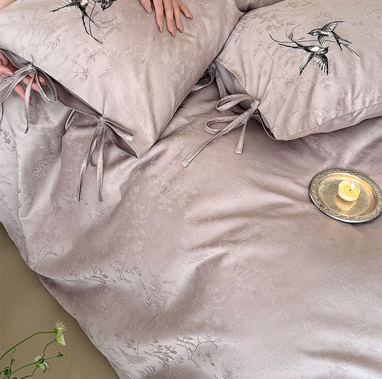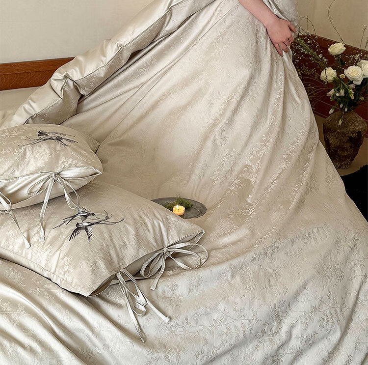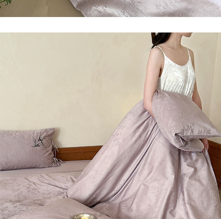 ROLAND LIVE高级感长绒棉提花四件套春夏新款全棉被套床单家用四季床上用品 LB 长绒棉提花套件-鸢语玉色 1.8米床 床单款 【被套200*230cm】