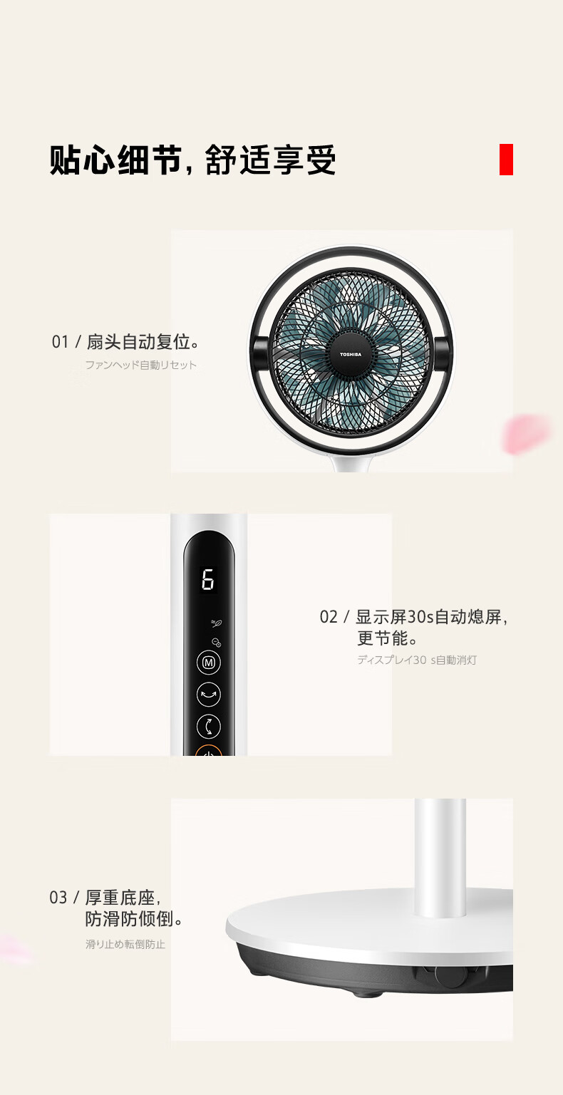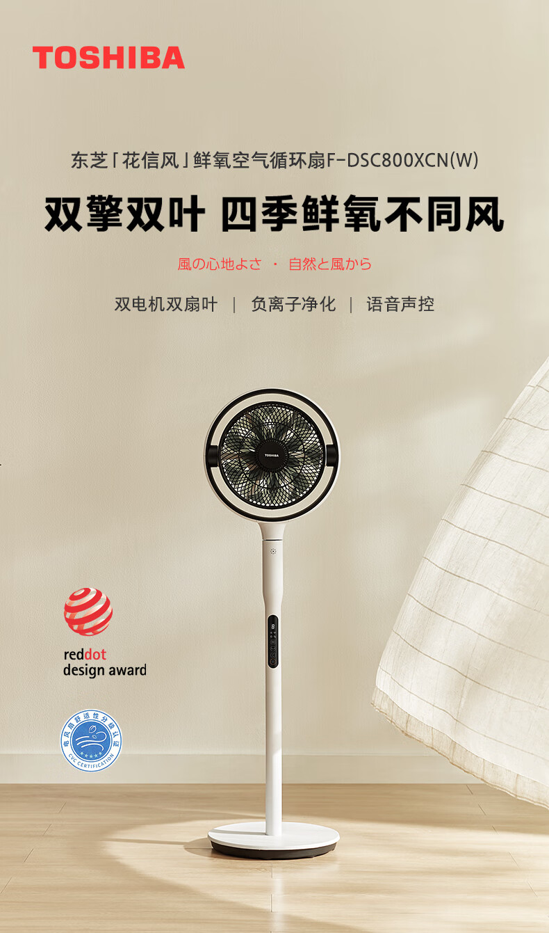 东芝(TOSHIBA)【花信风】电风扇空气循环扇家用落地扇直流变频电风扇卧室轻音客厅风扇F-DSC800XCN(W)