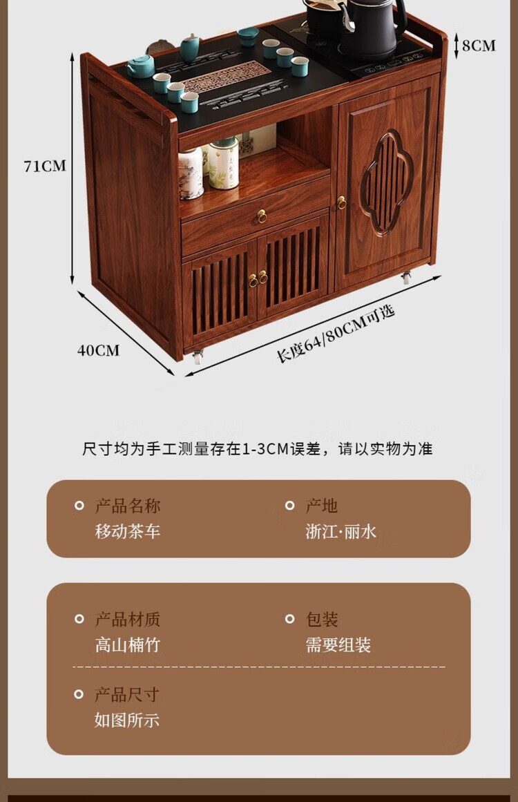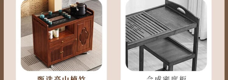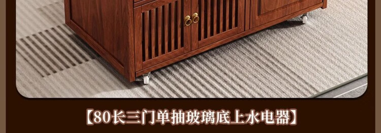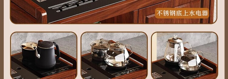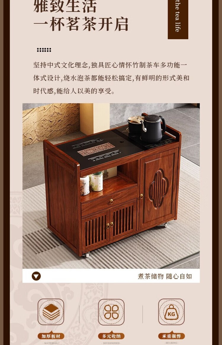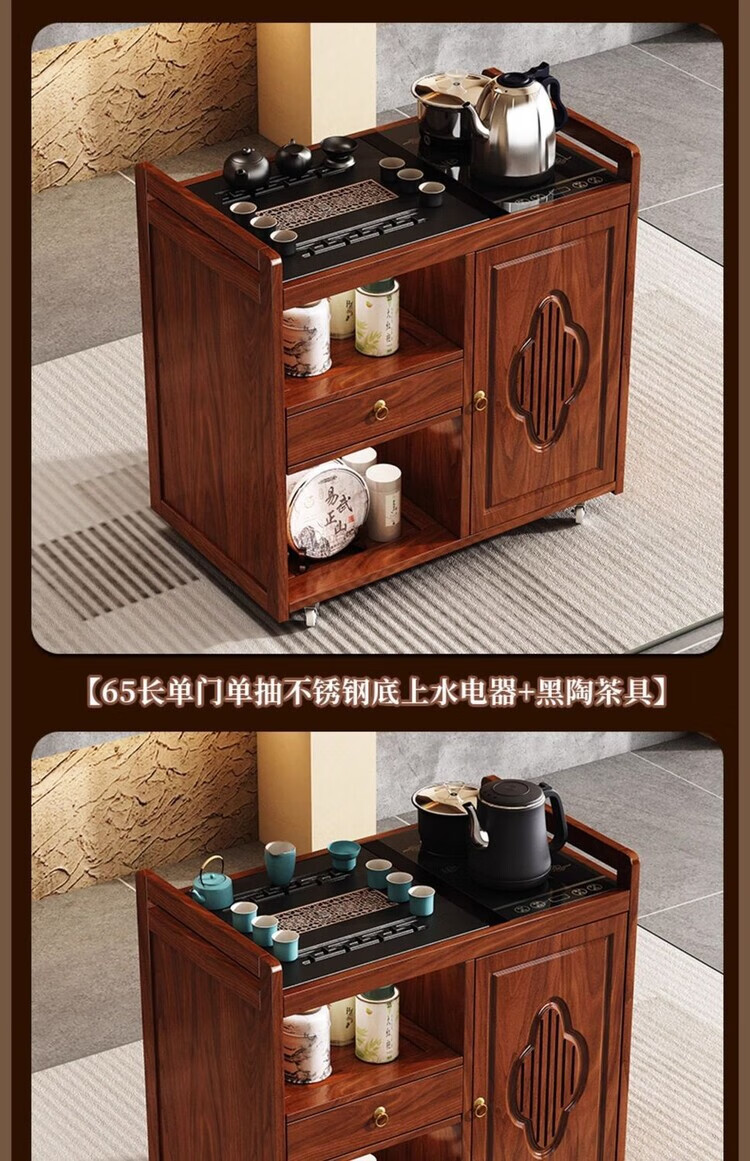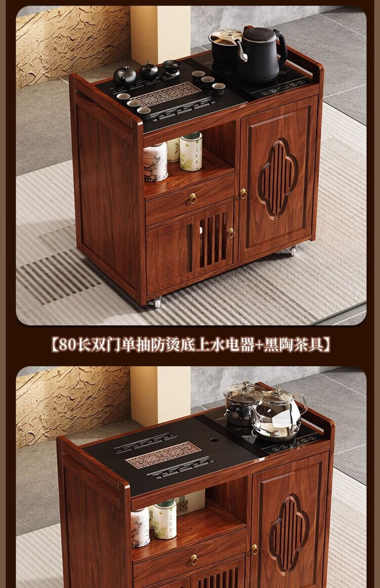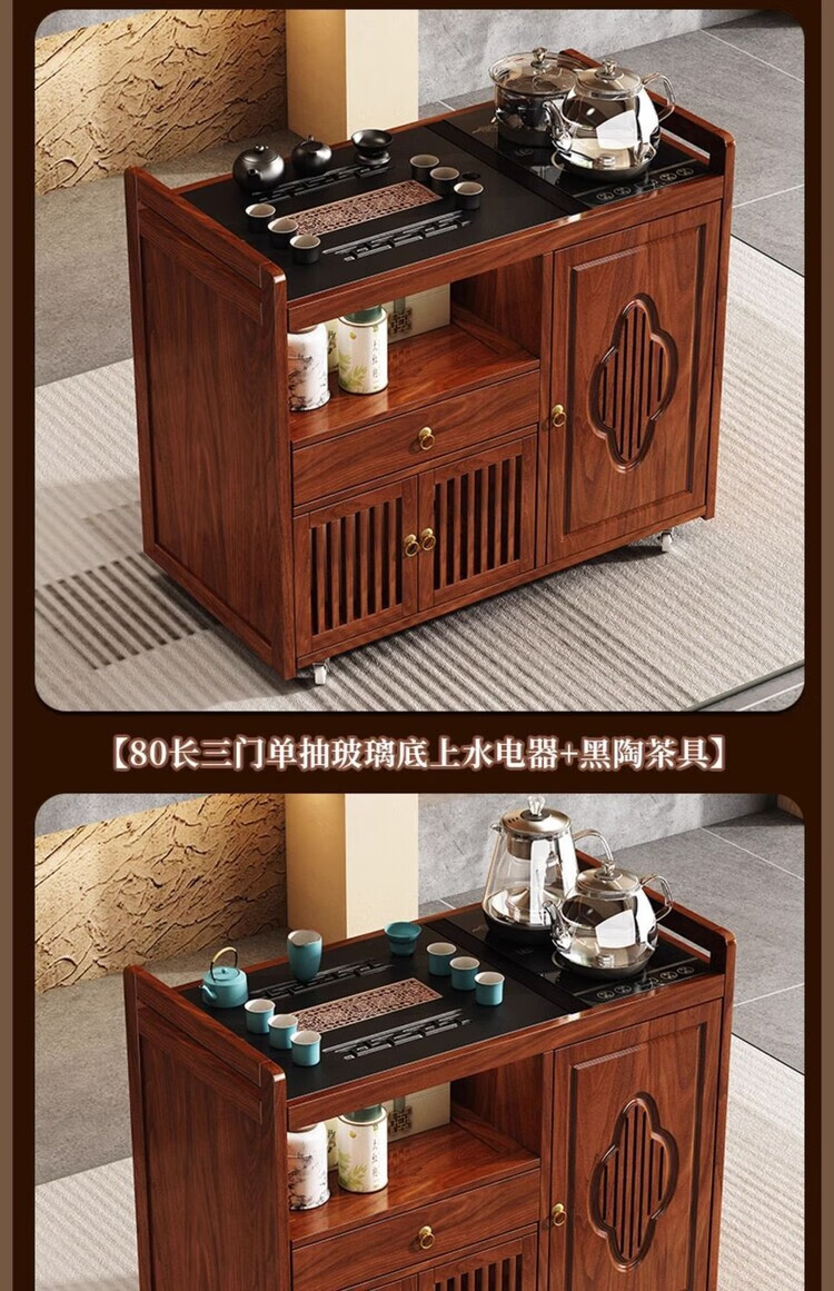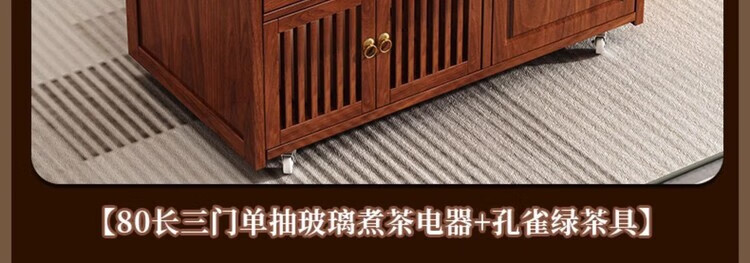 迈途森移动茶台茶桌小型家用茶水柜煮茶烧水一体功夫茶具套装楠竹茶水车 可移动茶桌【80三门+下翻式抽屉】 【茶桌+玻璃煮茶电器+孔雀绿茶具】