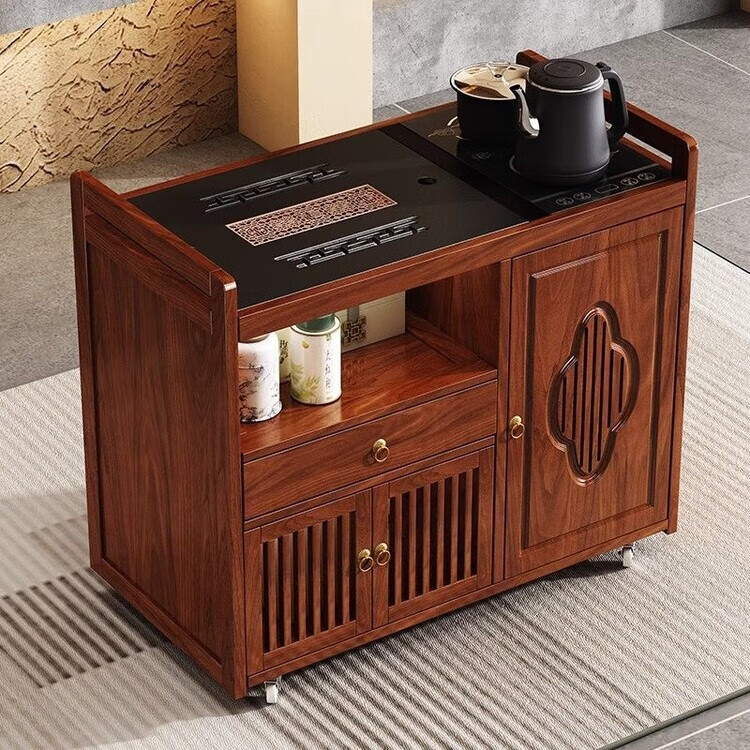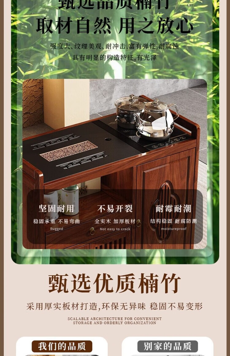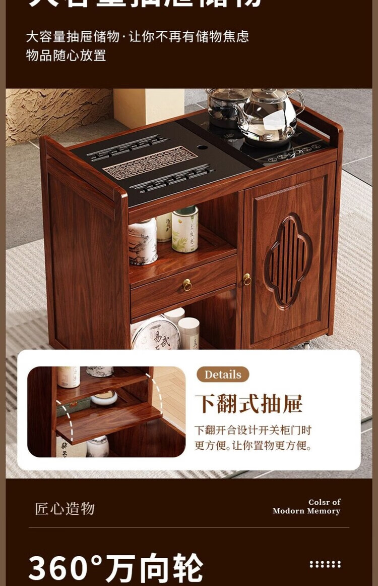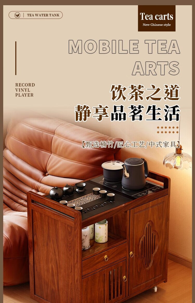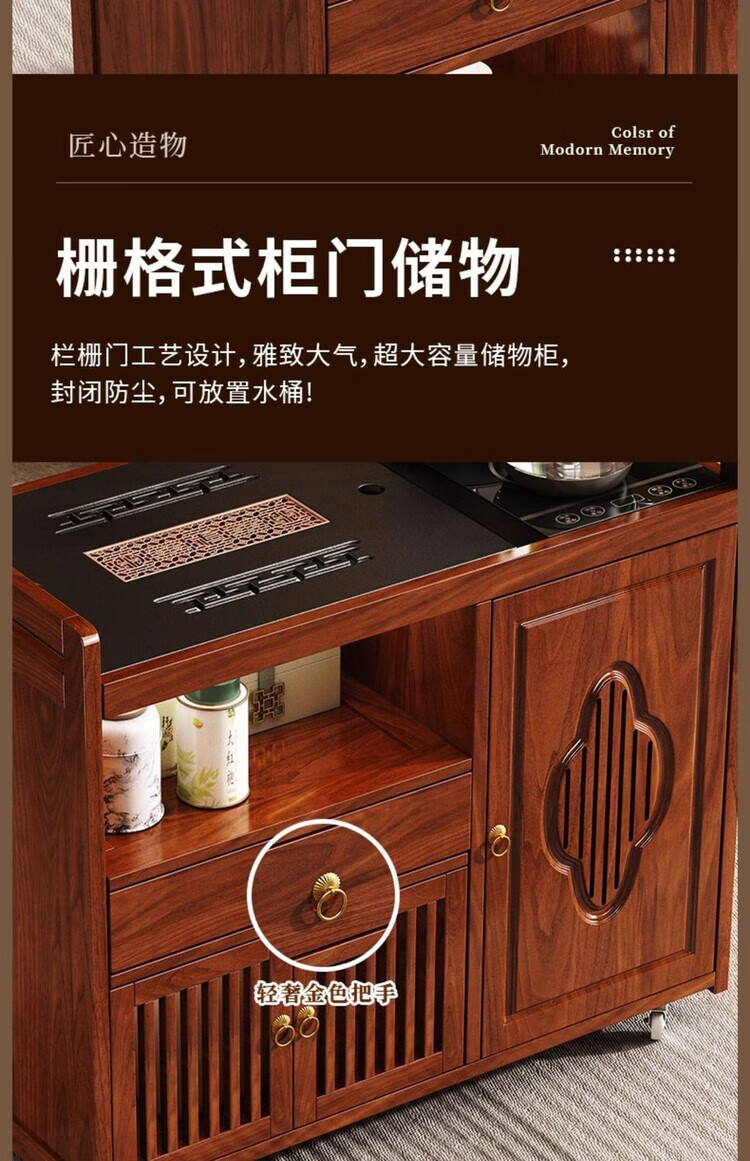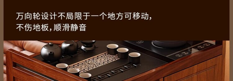 迈途森移动茶台茶桌小型家用茶水柜煮茶烧水一体功夫茶具套装楠竹茶水车 可移动茶桌【80三门+下翻式抽屉】 【茶桌+玻璃煮茶电器+孔雀绿茶具】