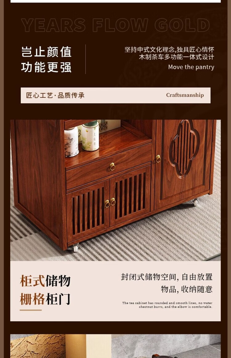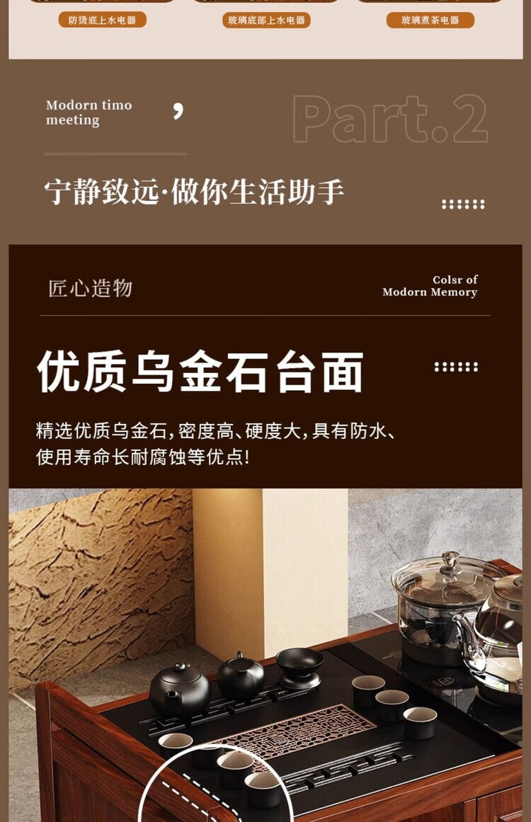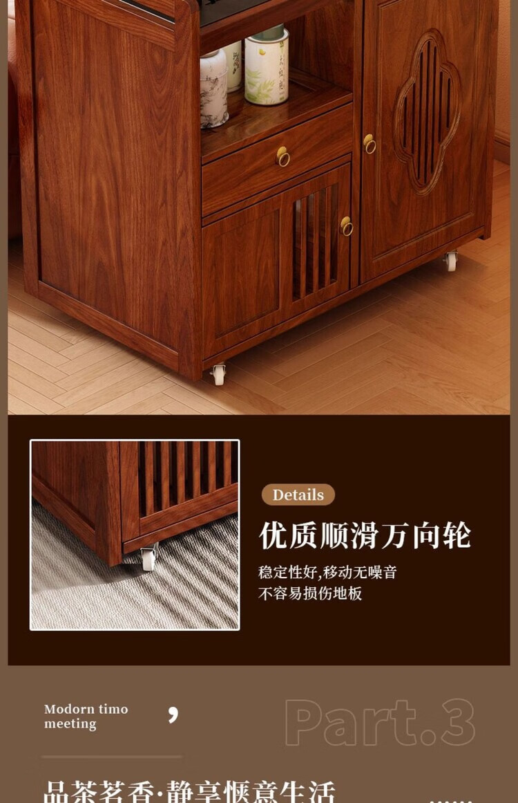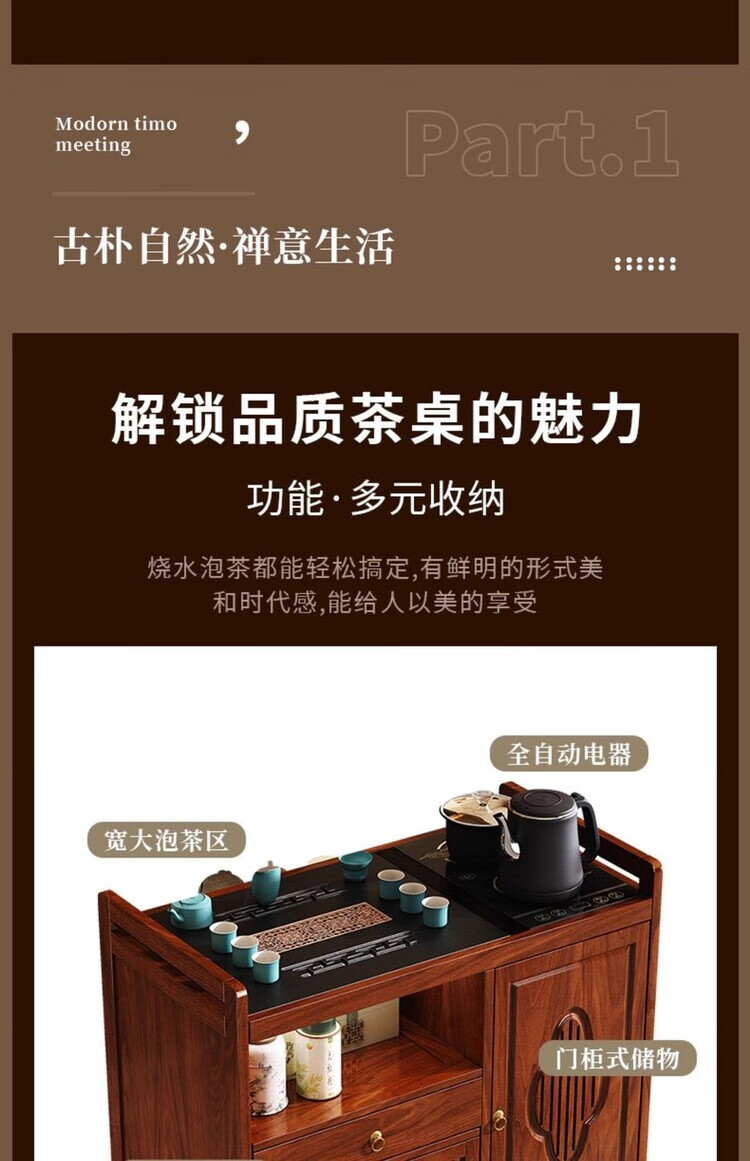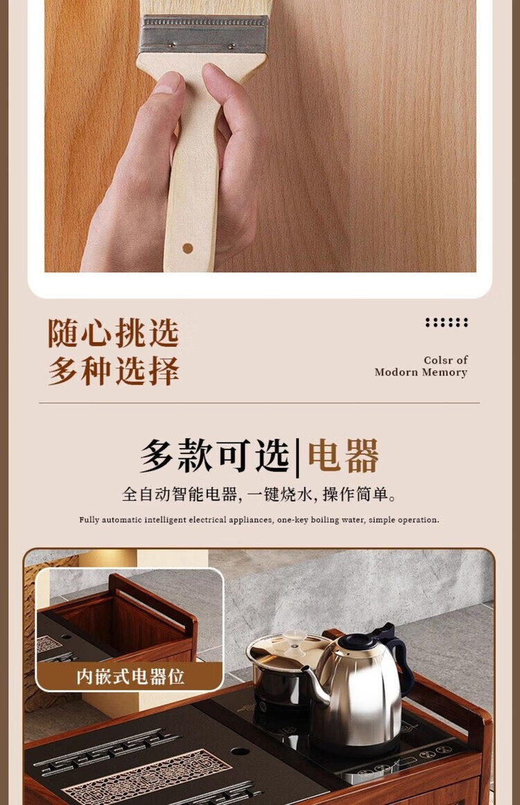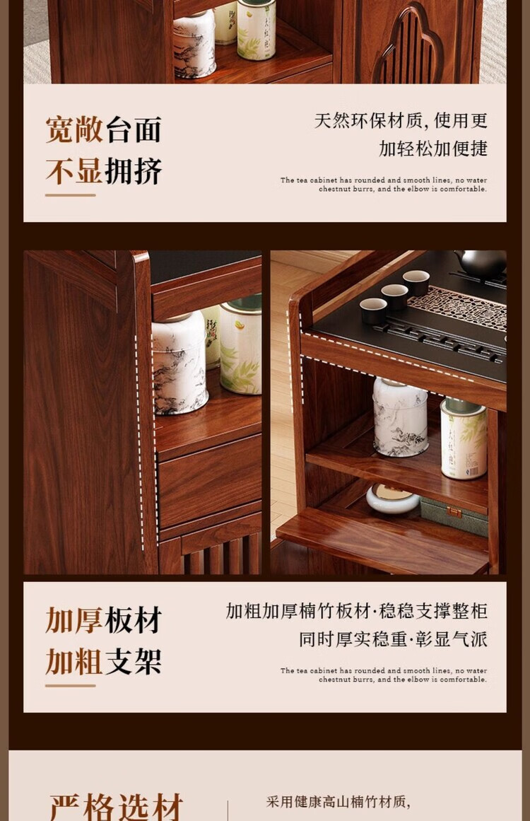迈途森移动茶台茶桌小型家用茶水柜煮茶烧水一体功夫茶具套装楠竹茶水车 可移动茶桌【80三门+下翻式抽屉】 【茶桌+玻璃煮茶电器+孔雀绿茶具】