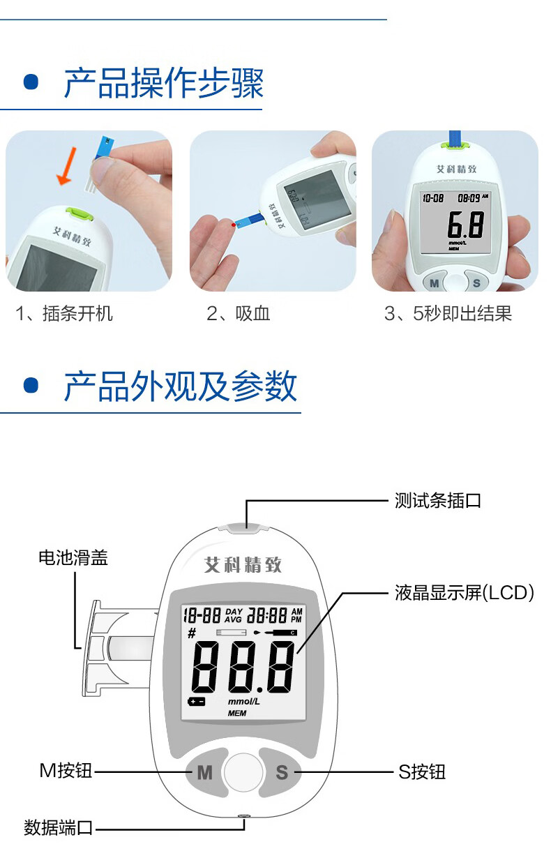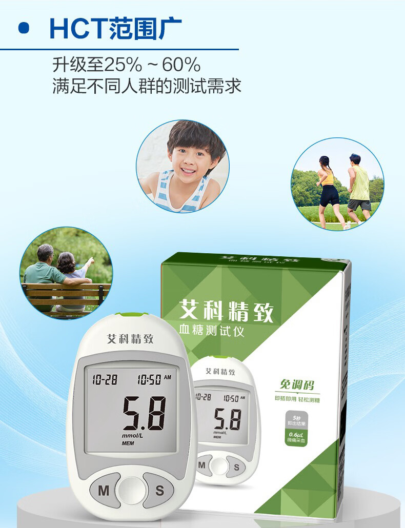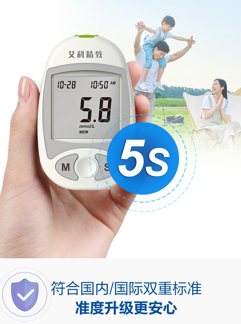 艾科精致血糖仪血糖试纸糖尿病孕妇老人高血糖测试纸自动调码测试条 血糖仪+25独立试纸+低痛采血针