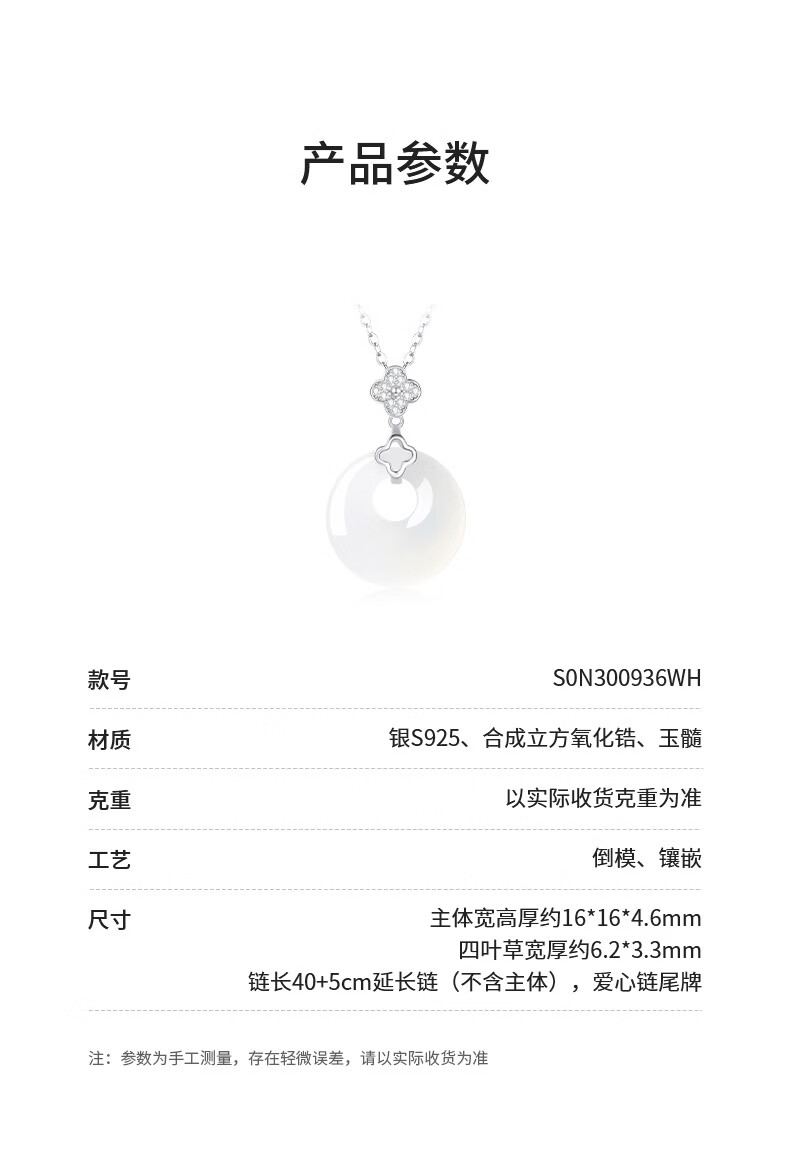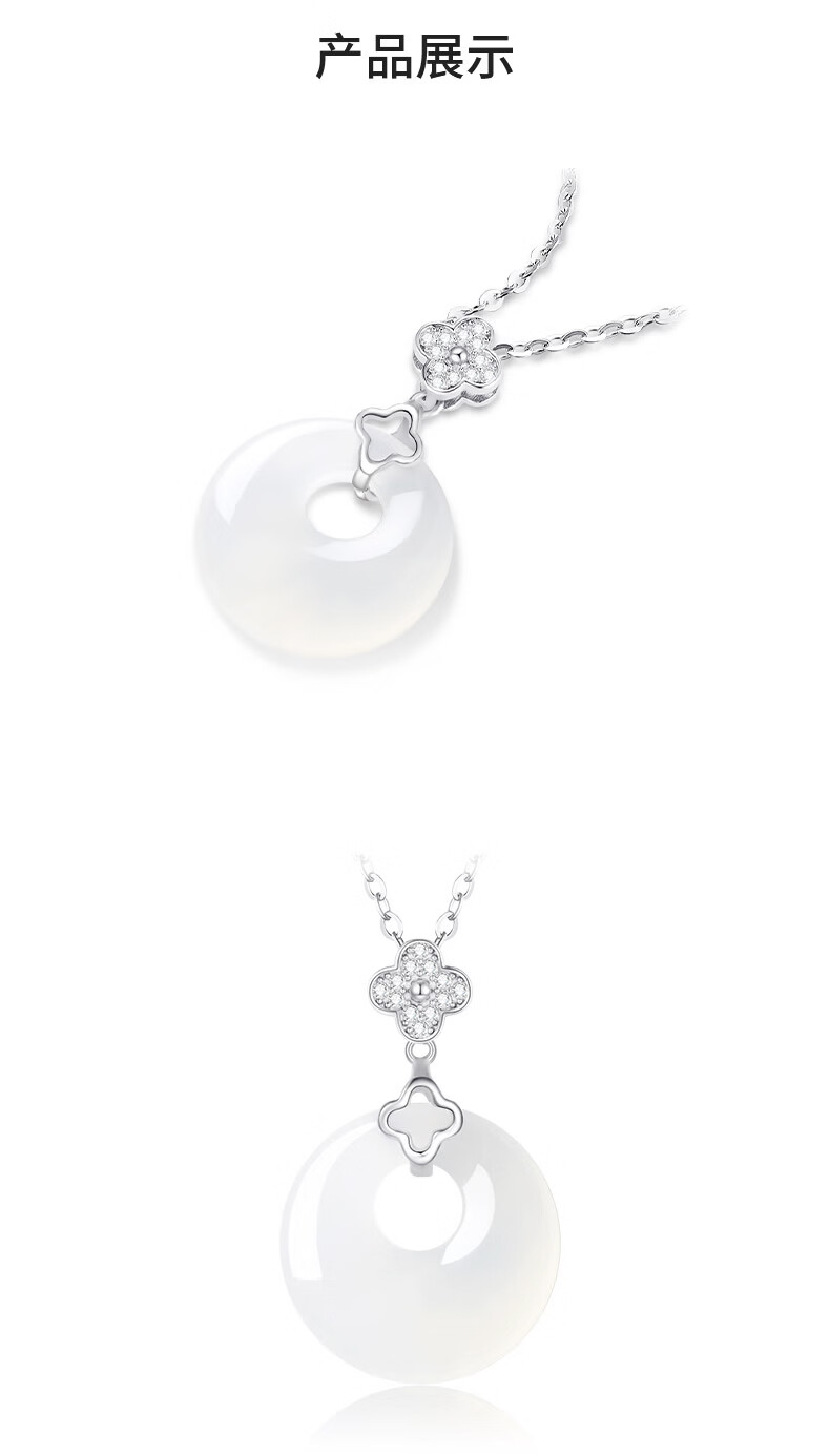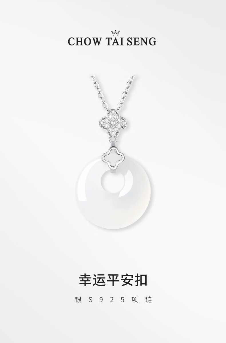 周大生幸运四叶草玉髓平安扣项链S925银女本命年轻奢高级生日礼物送女友 四叶草玉髓平安扣项链