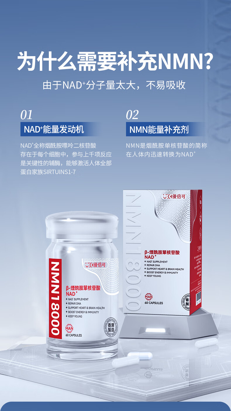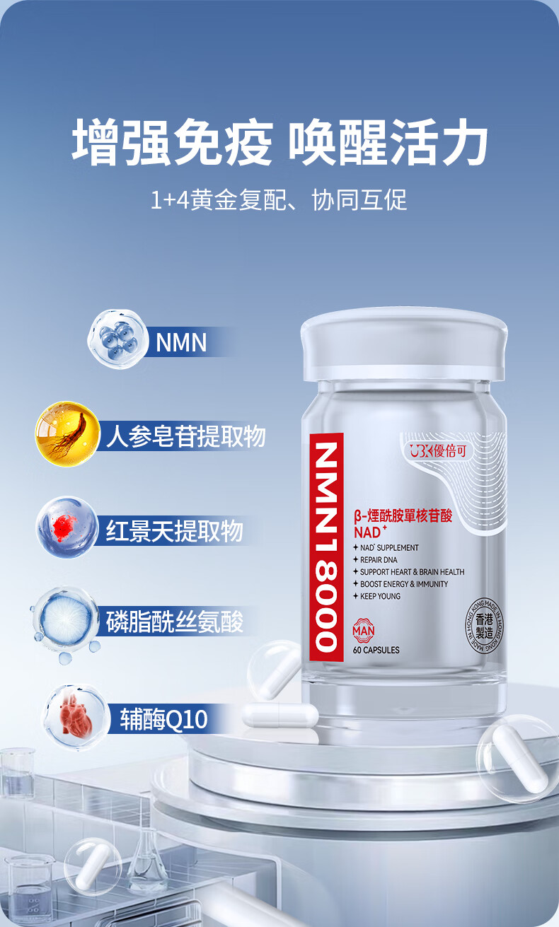優倍可NMN18000男士尊享活力精力NAD+辅酶Q10人参皂苷红景天PS香港直邮