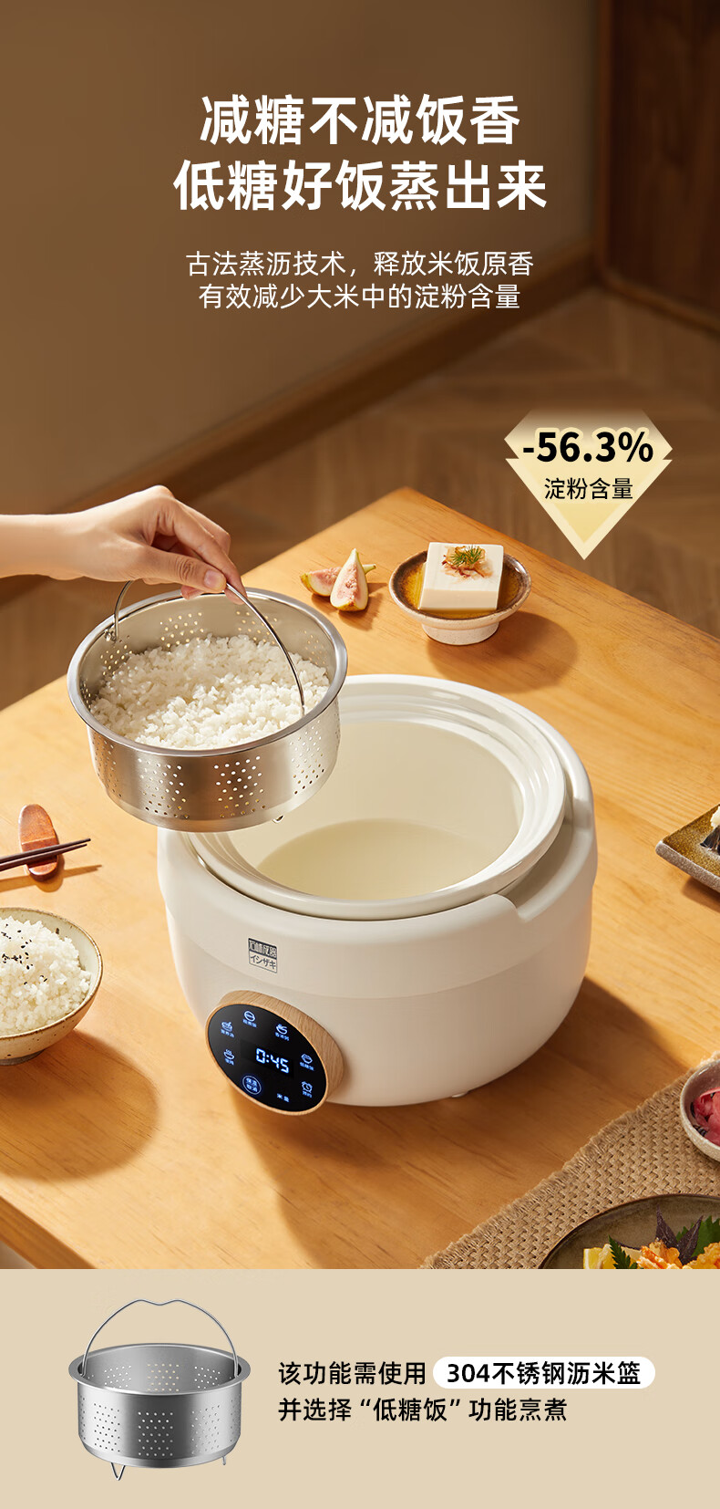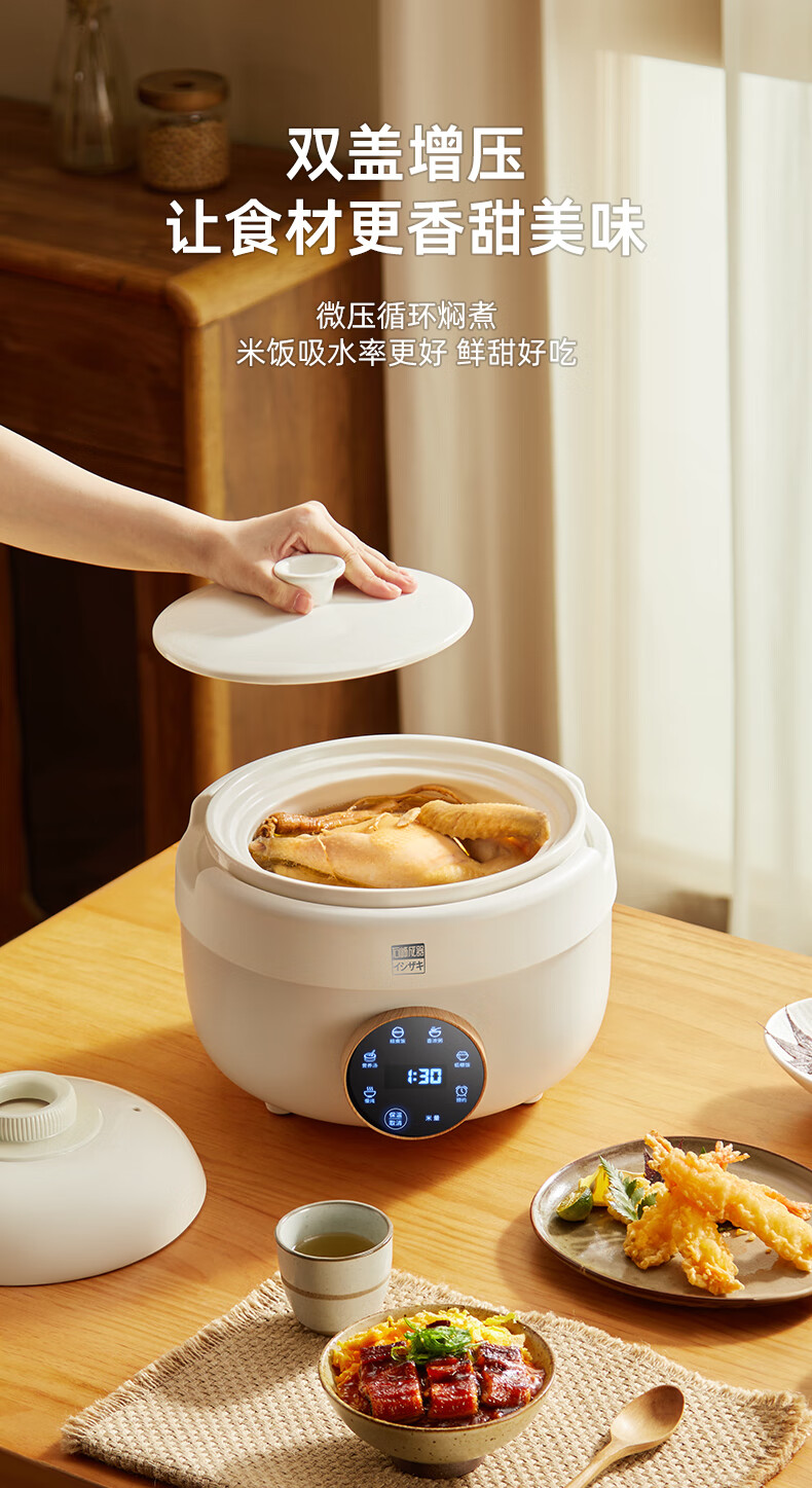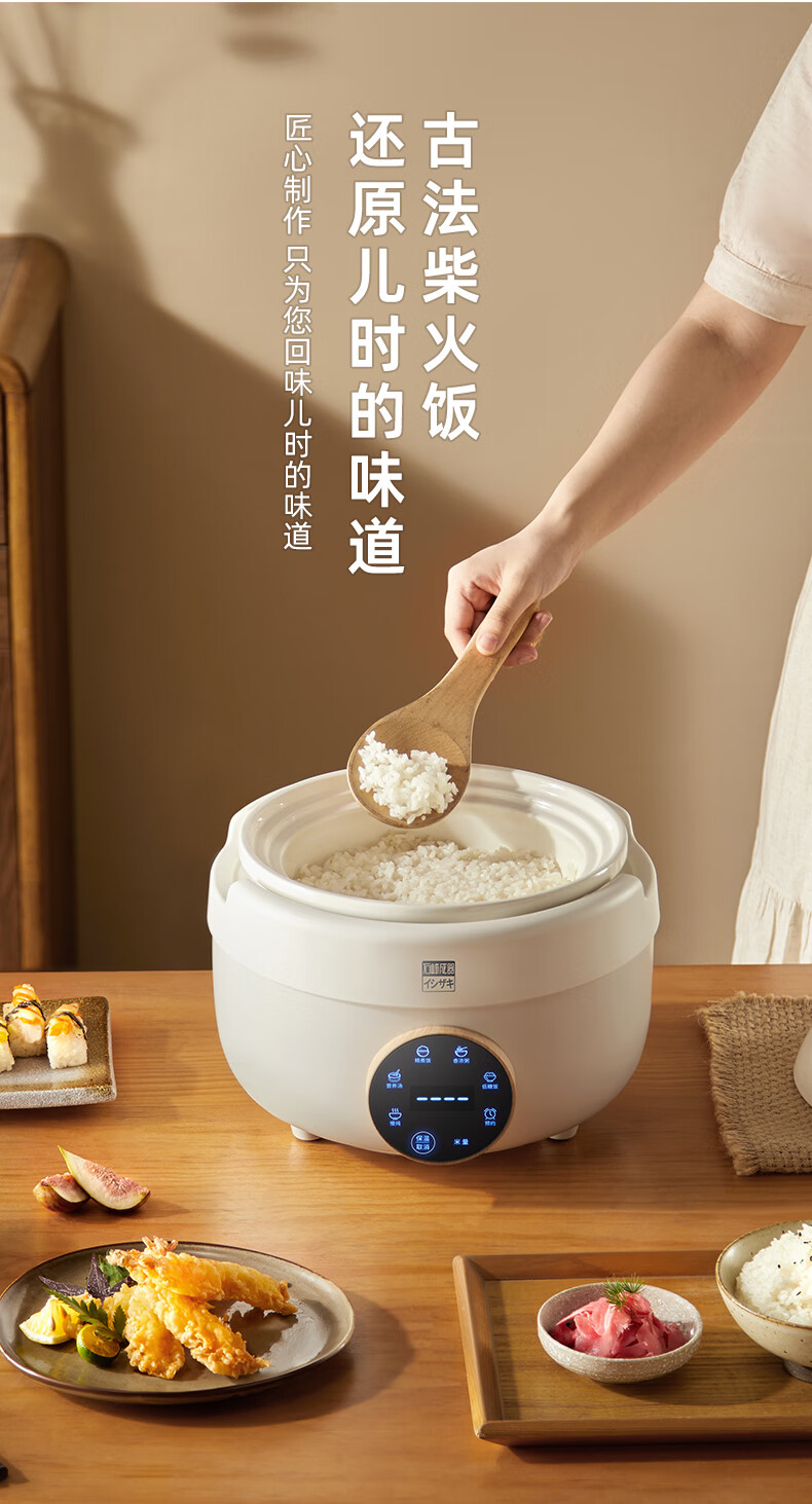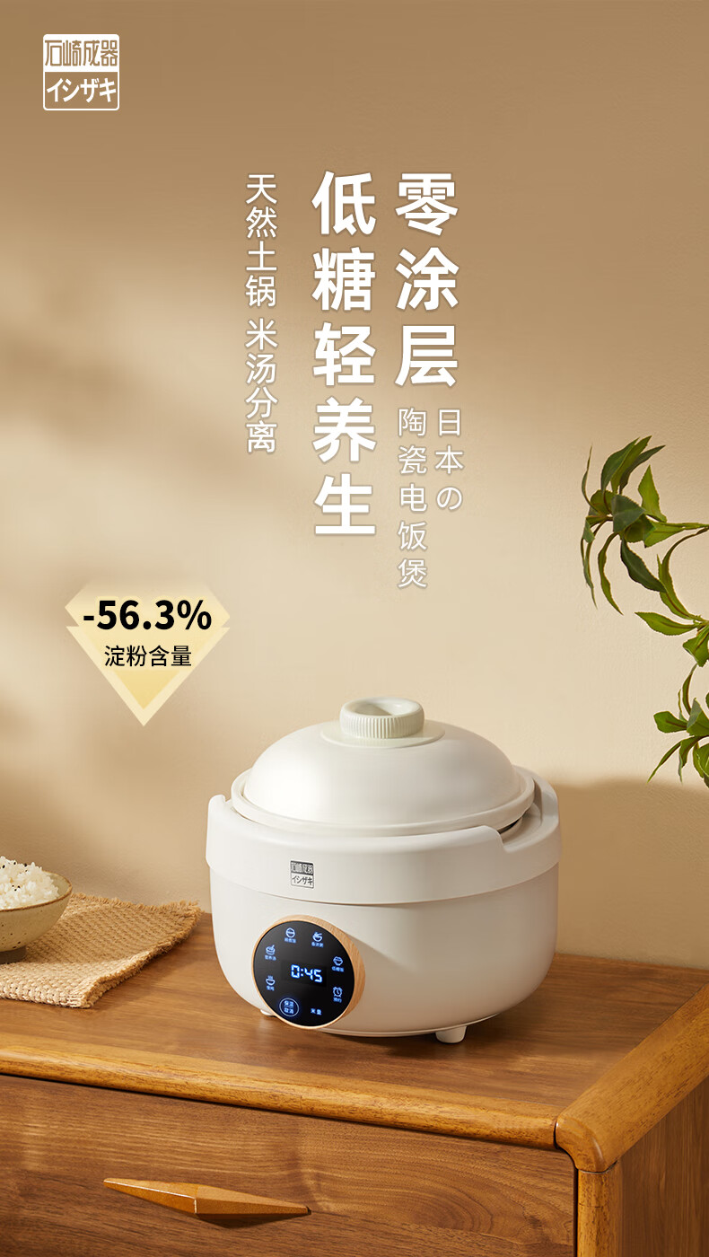 石崎成器日本 陶瓷内胆电饭煲 低糖电饭煲无涂层 家用微压电饭锅柴火饭土陶伊贺烧3L煮饭防溢煲汤砂锅预约 胡椒白 3L
