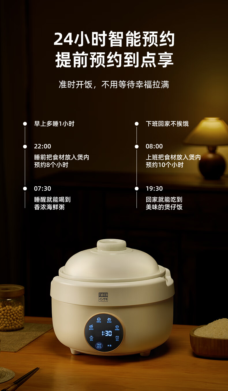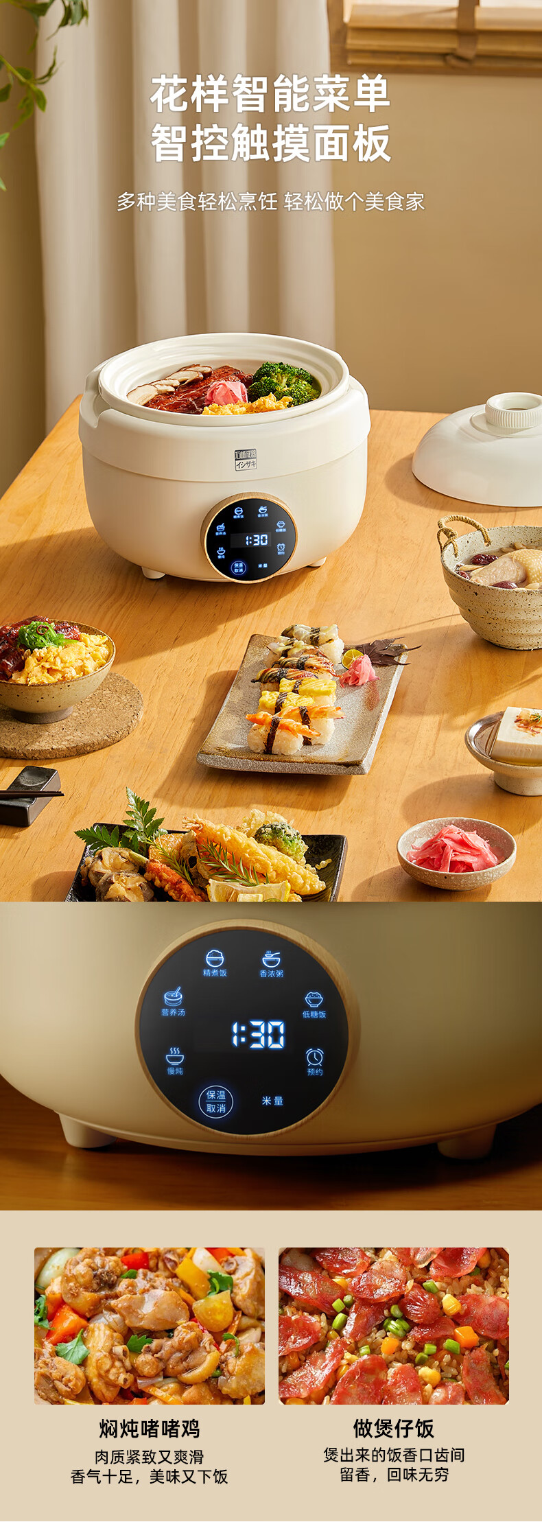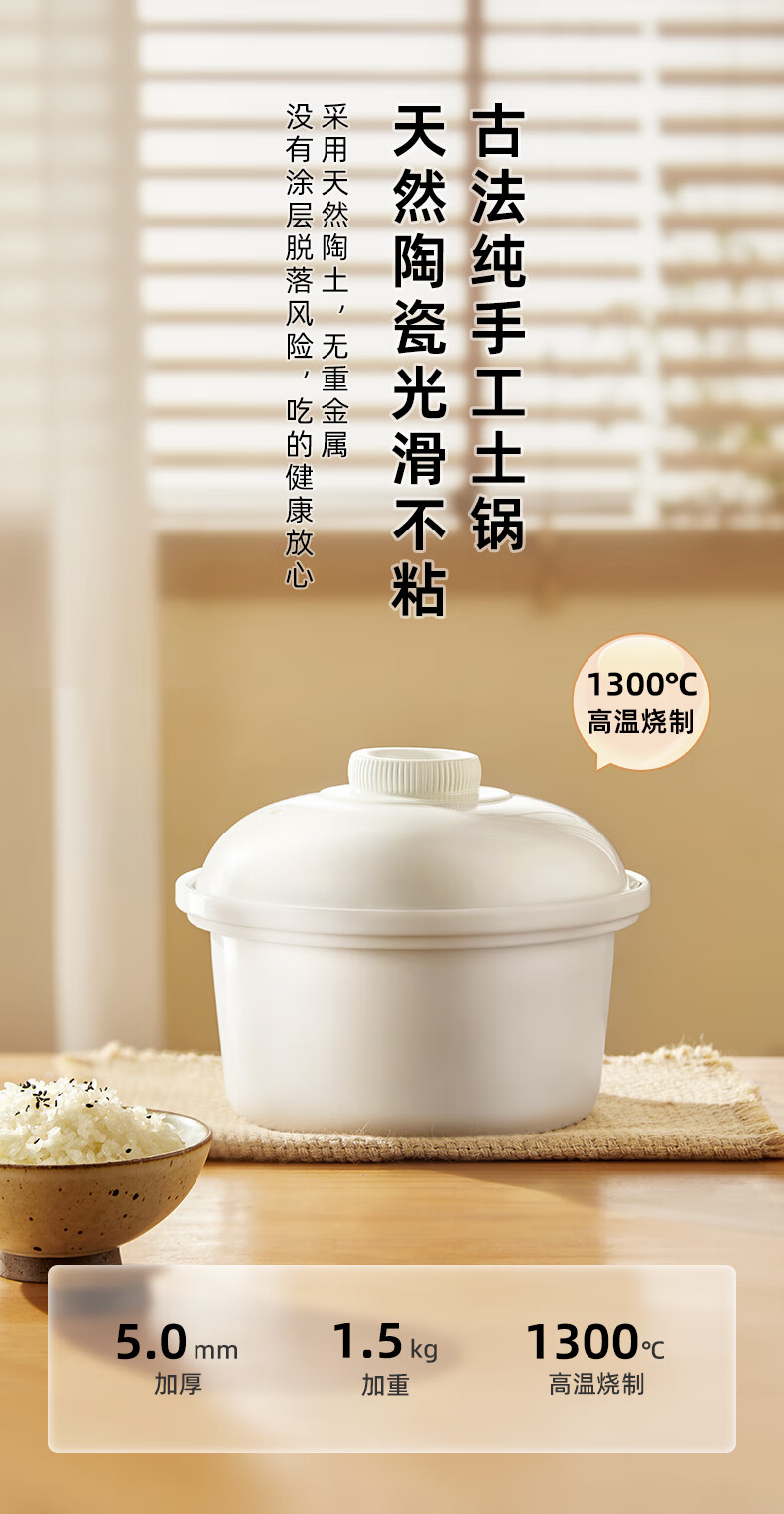 石崎成器日本 陶瓷内胆电饭煲 低糖电饭煲无涂层 家用微压电饭锅柴火饭土陶伊贺烧3L煮饭防溢煲汤砂锅预约 胡椒白 3L