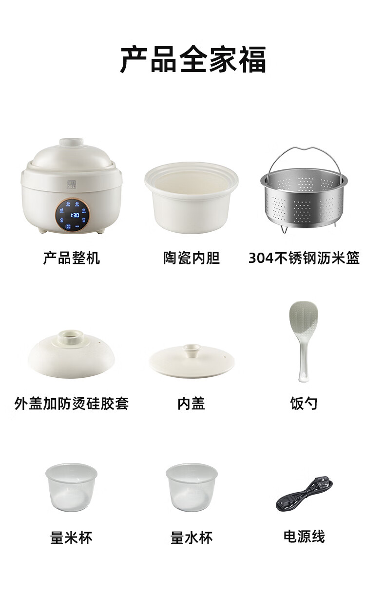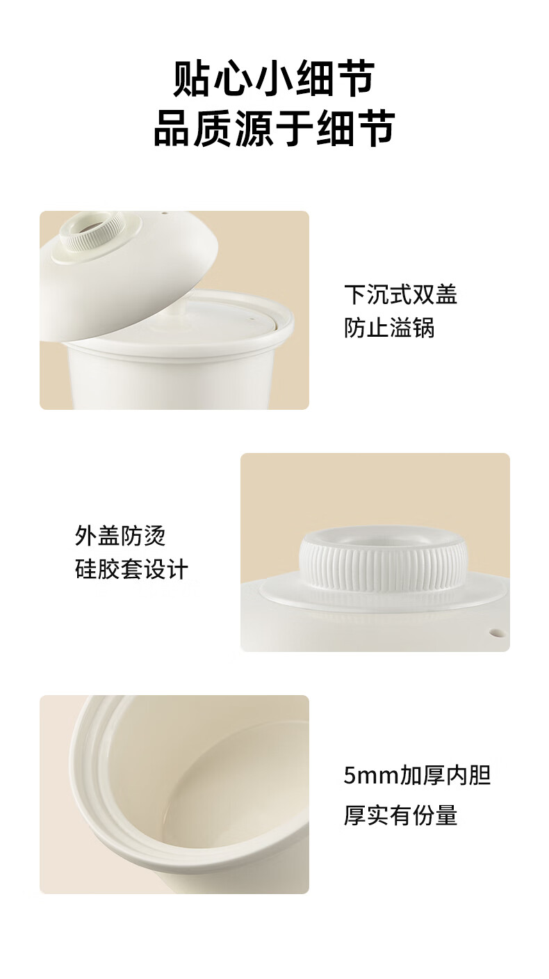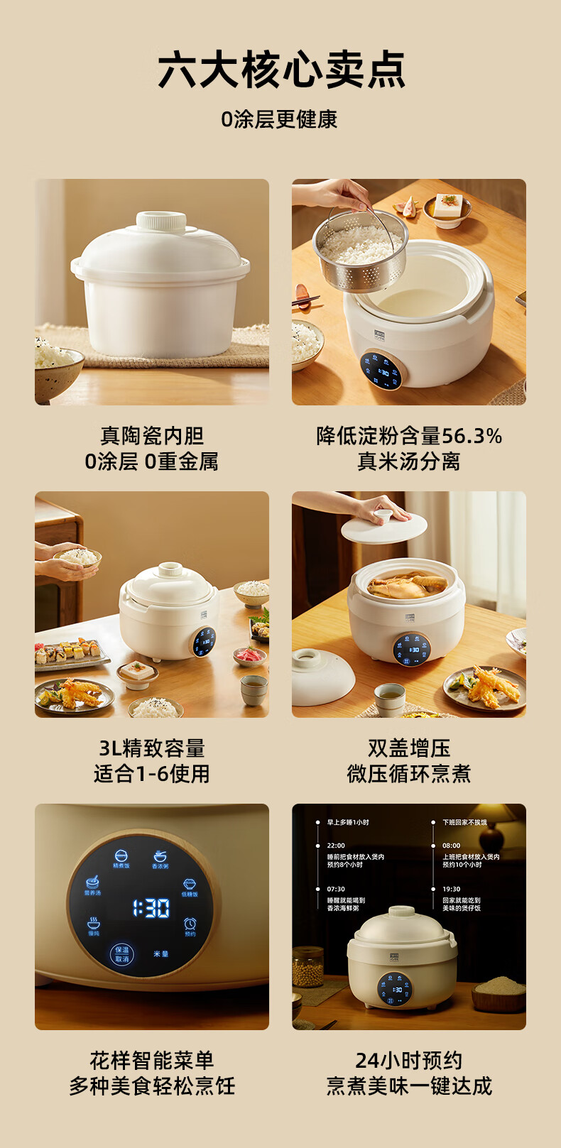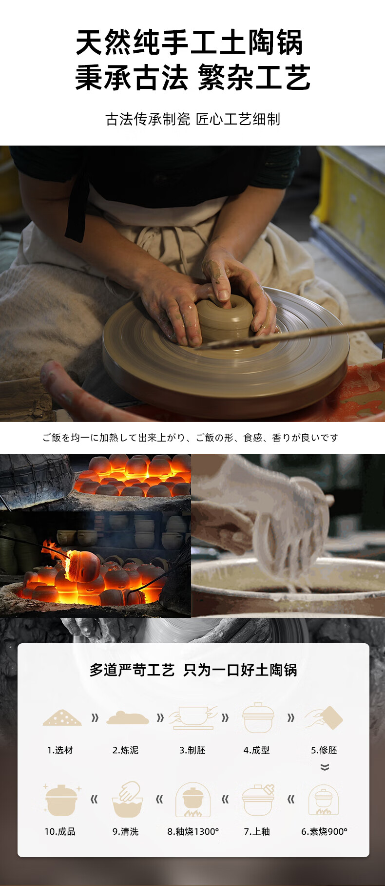 石崎成器日本 陶瓷内胆电饭煲 低糖电饭煲无涂层 家用微压电饭锅柴火饭土陶伊贺烧3L煮饭防溢煲汤砂锅预约 胡椒白 3L