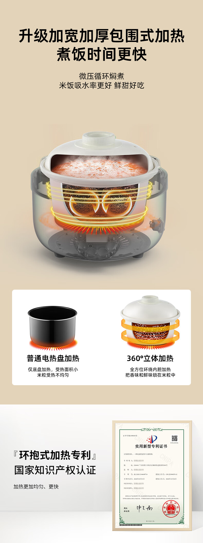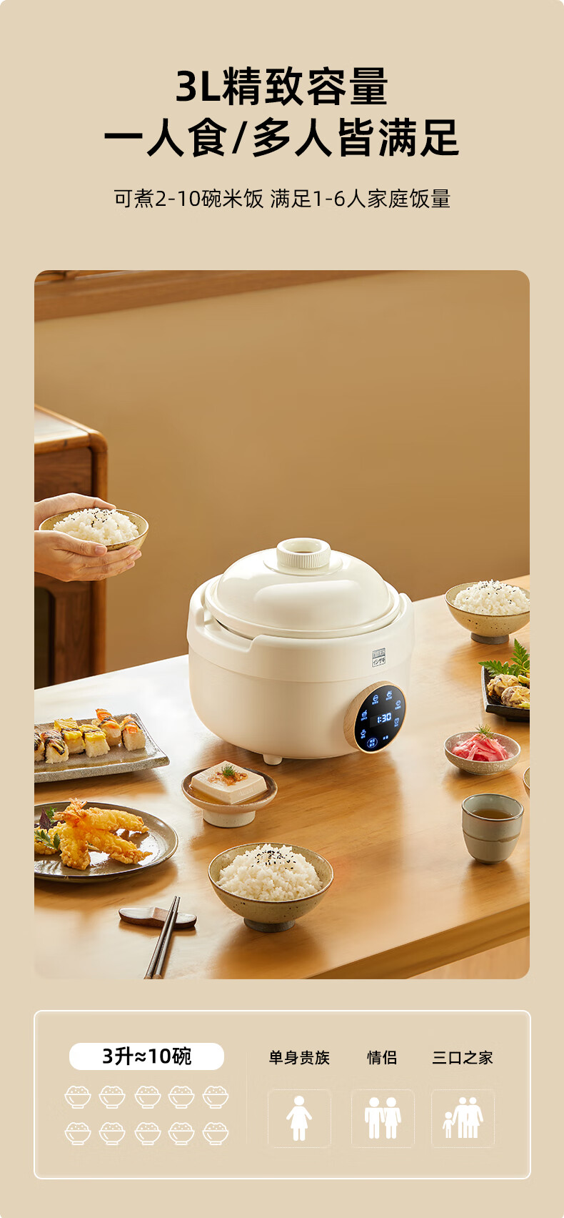 美的(Midea)家用电饭煲电饭锅1-2-3-4人用柴火饭不粘锅 3升4升迷你小型智能微压焖香煮饭小米粥电饭煲蒸煮一体 【25年节能款】微压焖香 3L