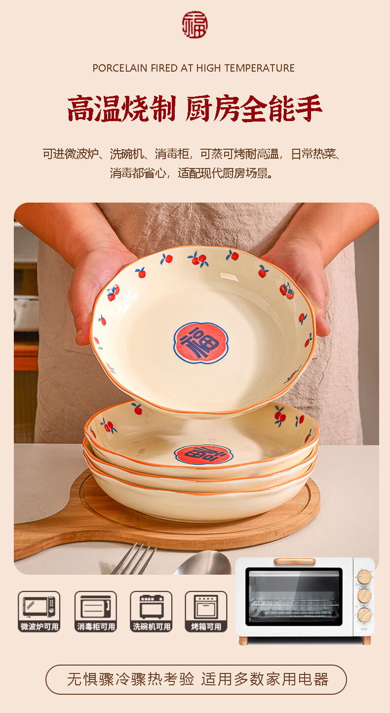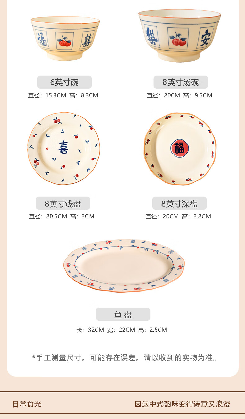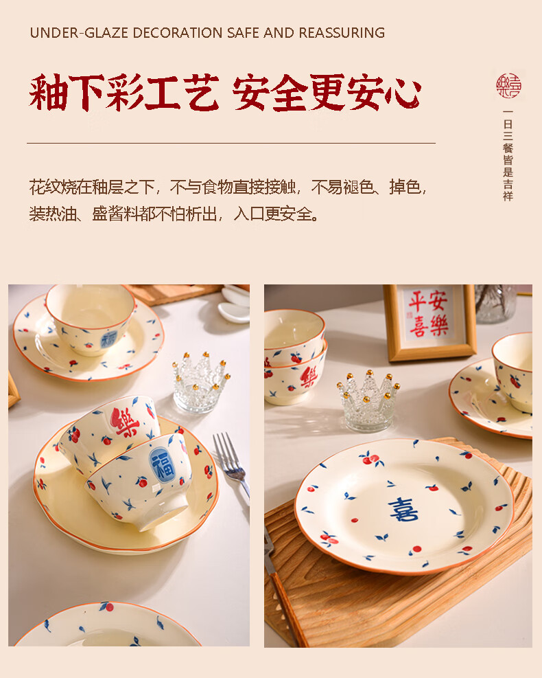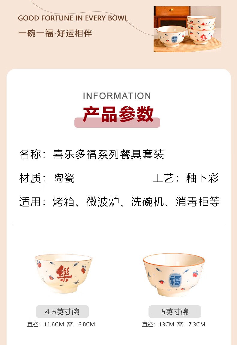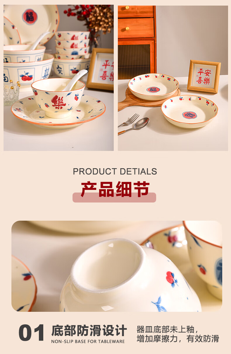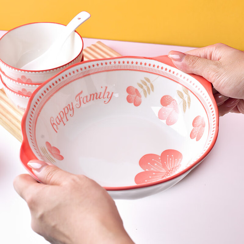 想迦喜乐多福系列陶瓷餐具中式家用陶瓷春节送礼餐具套装釉下彩 2只8.5英寸粉黛双耳碗