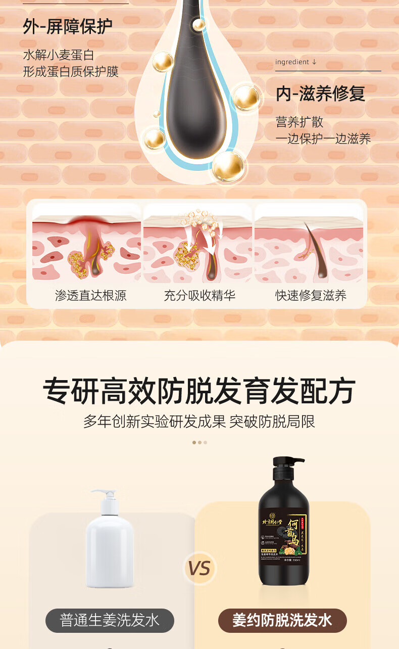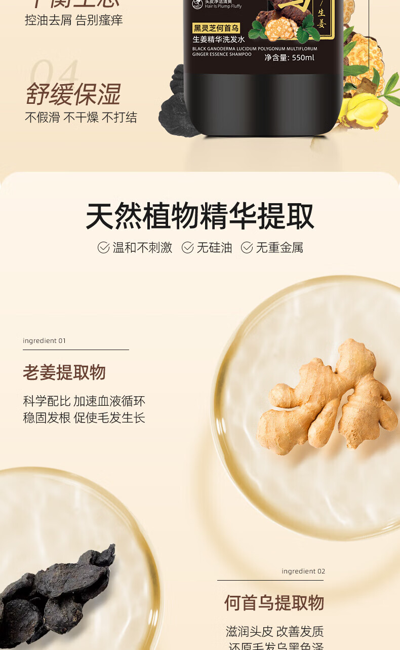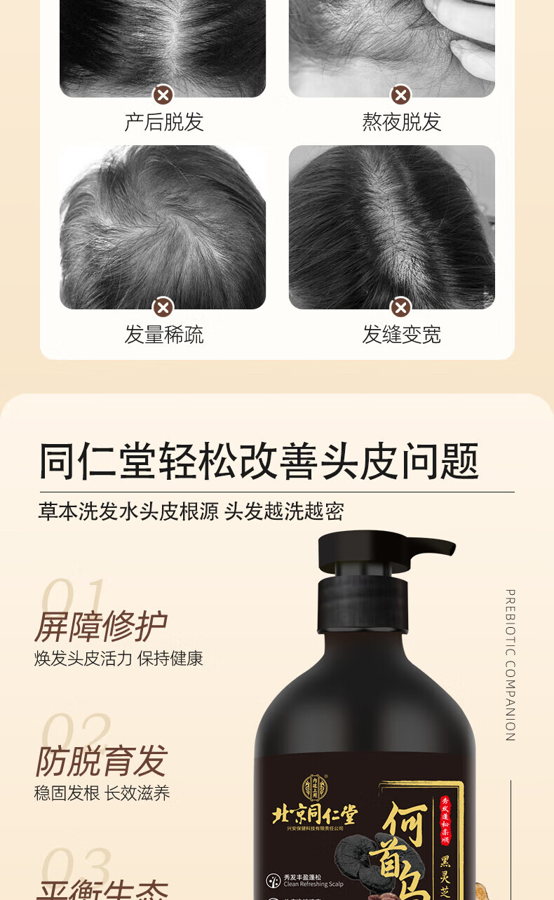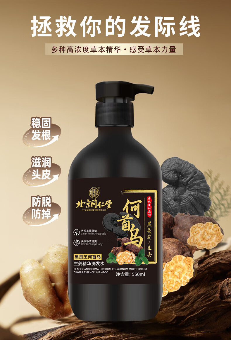 同仁堂防脱育发何首乌生姜洗发水增头发控油蓬松固发白发转养黑发洗发露 一瓶装【大容量550ml】 生姜何首乌黑灵芝白发洗黑发防脱