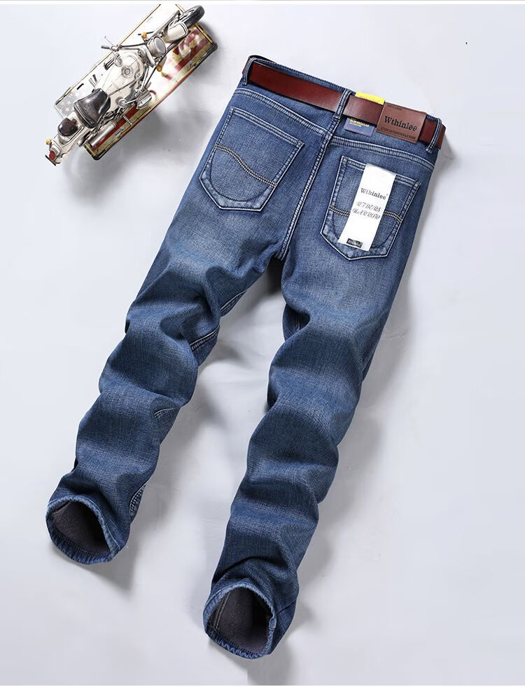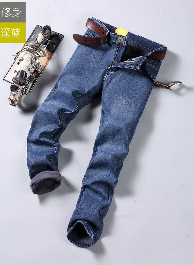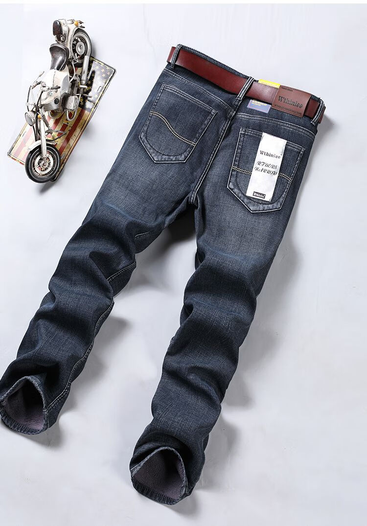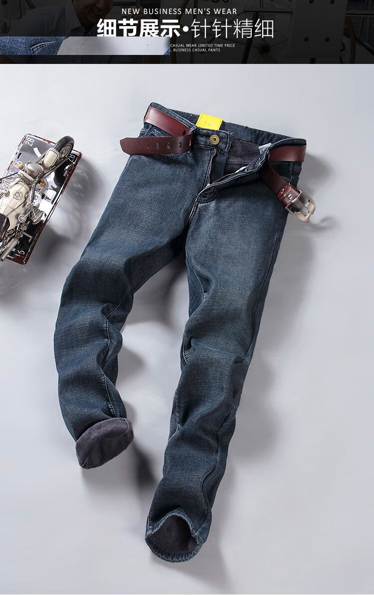 CronetKcnsy高端轻奢男士牛仔裤男秋冬厚款潮流加绒时尚直筒长裤百搭男裤子男 866-厚款黑色 33 (推荐140-150斤)