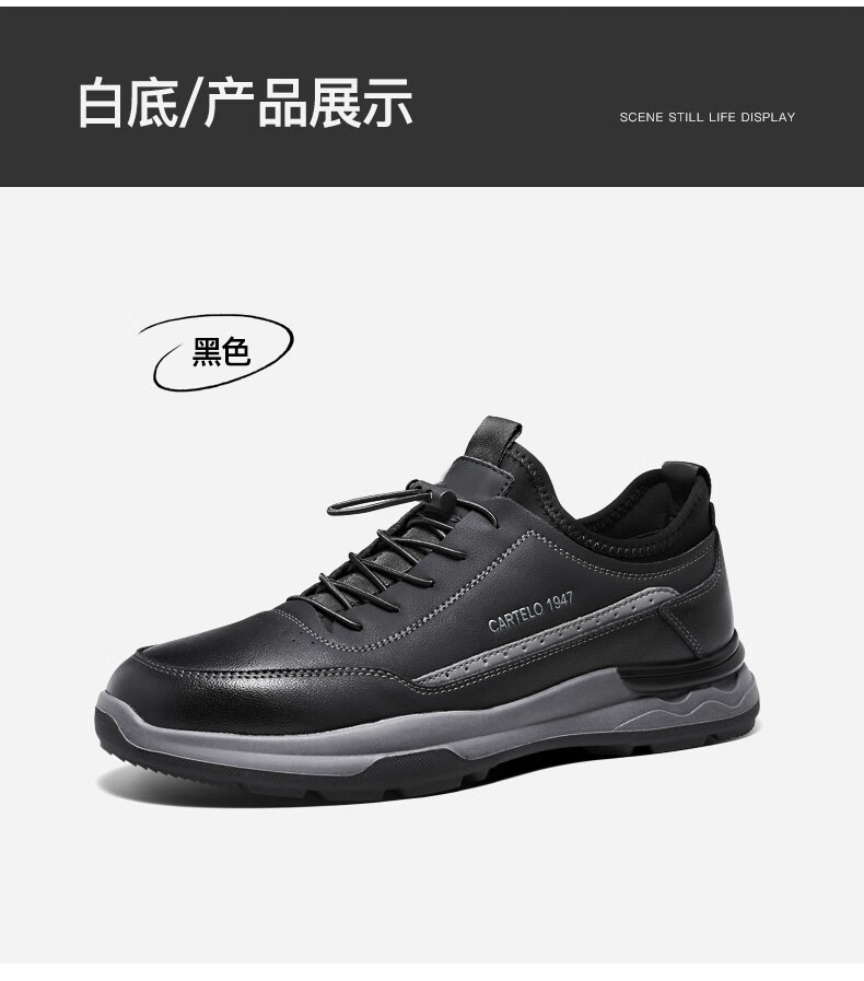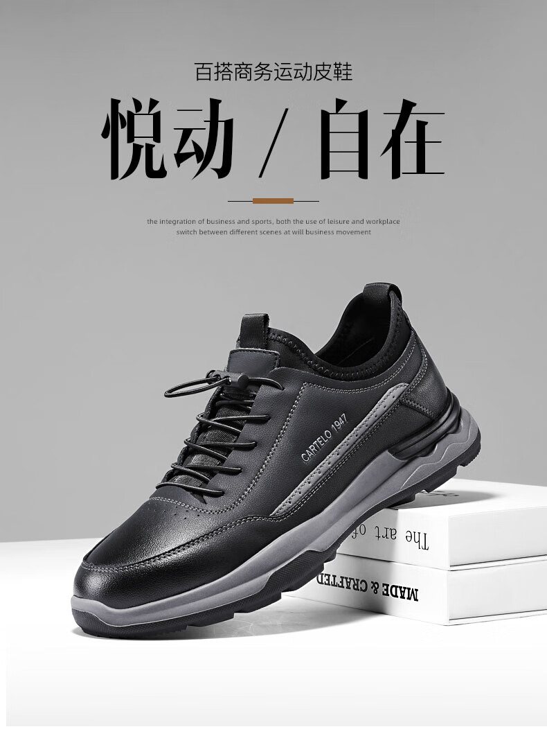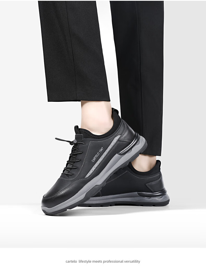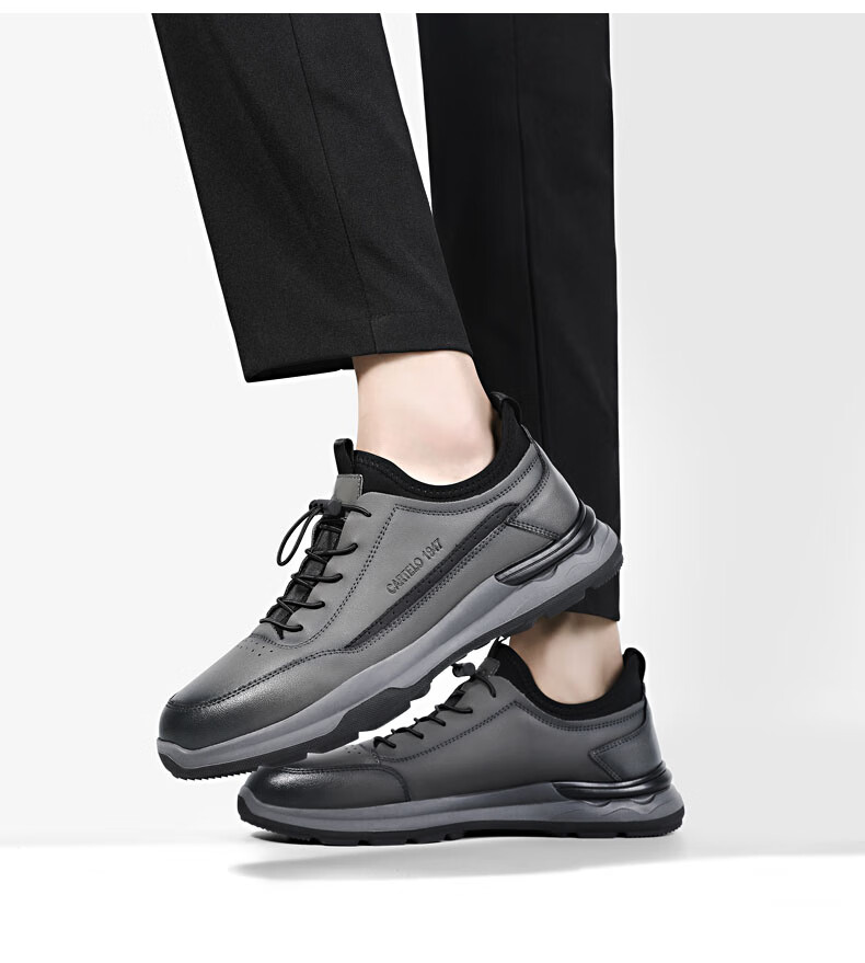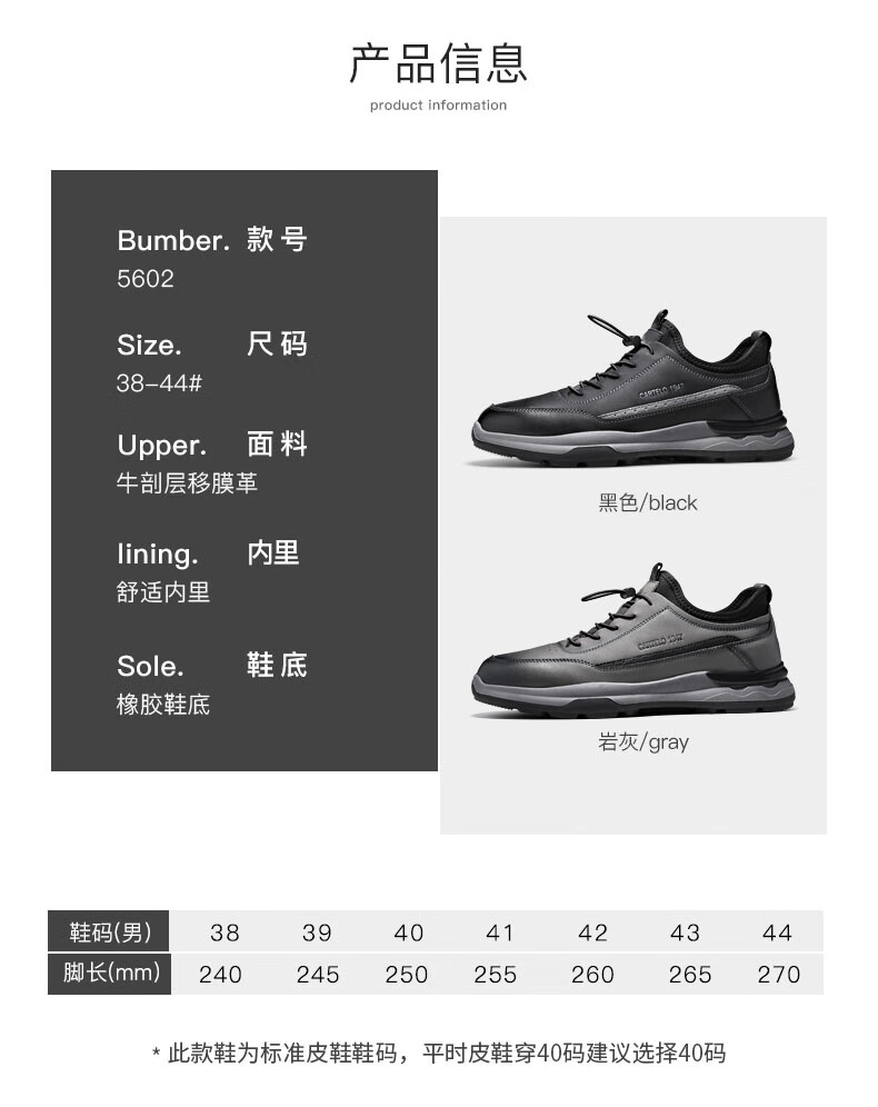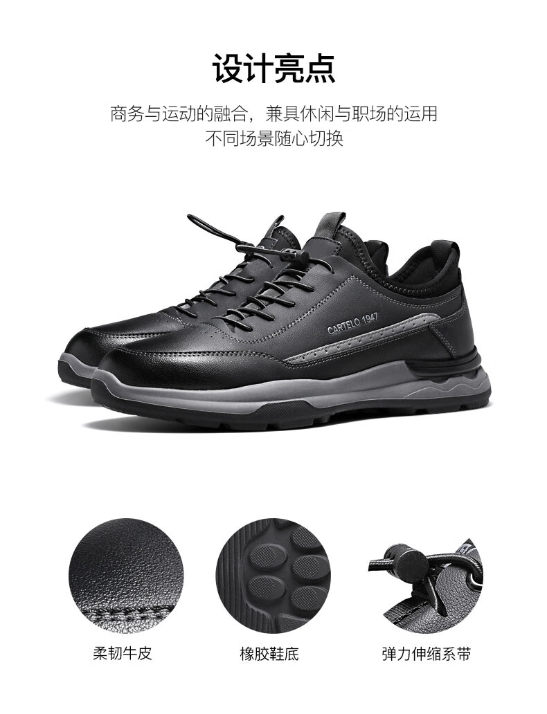 卡帝乐鳄鱼男鞋2025春夏季新款男士休闲皮鞋时尚运动休闲鞋百搭舒适旅游鞋子 5603黑色 38
