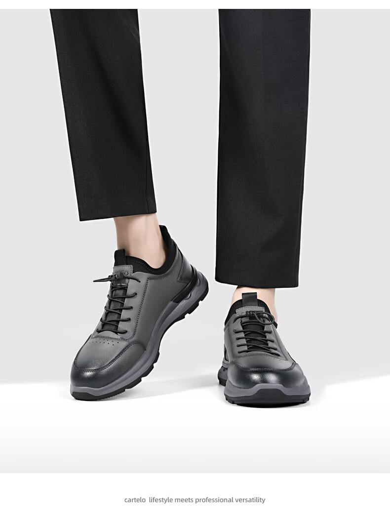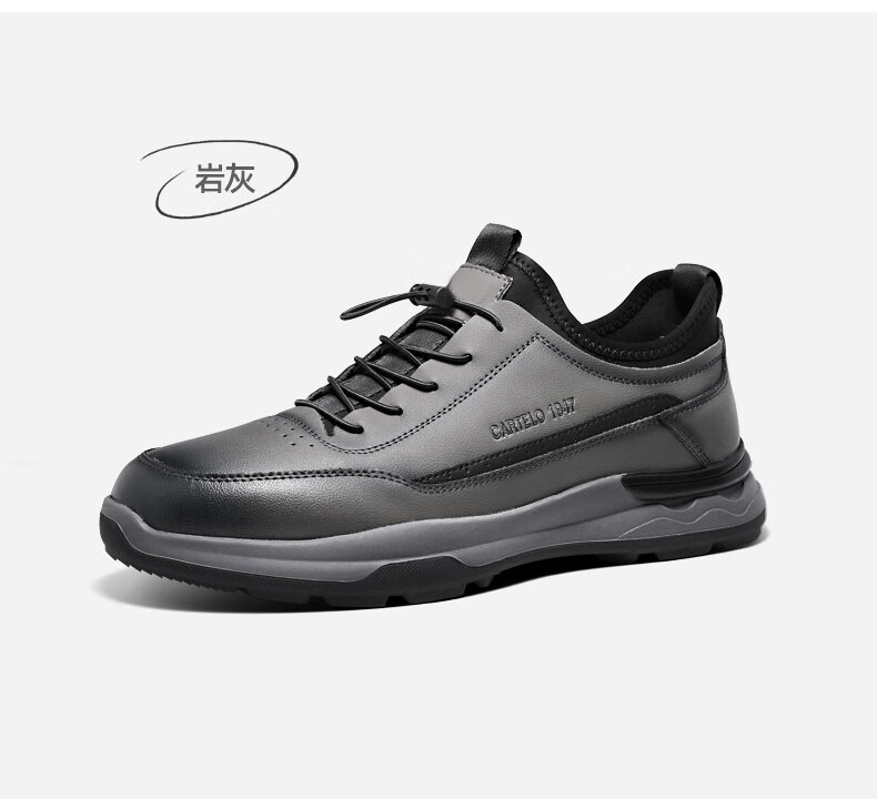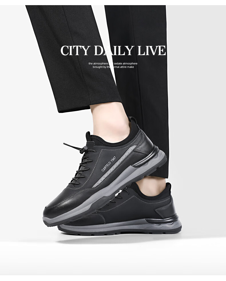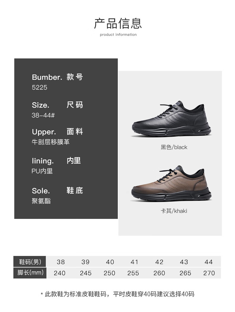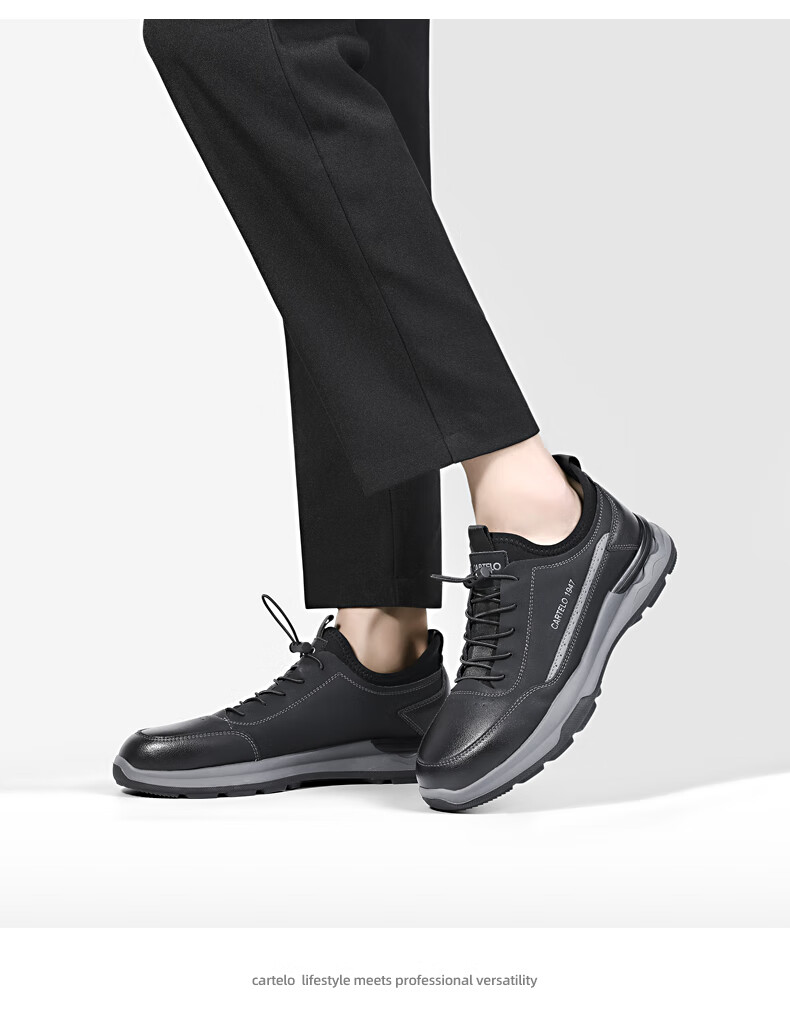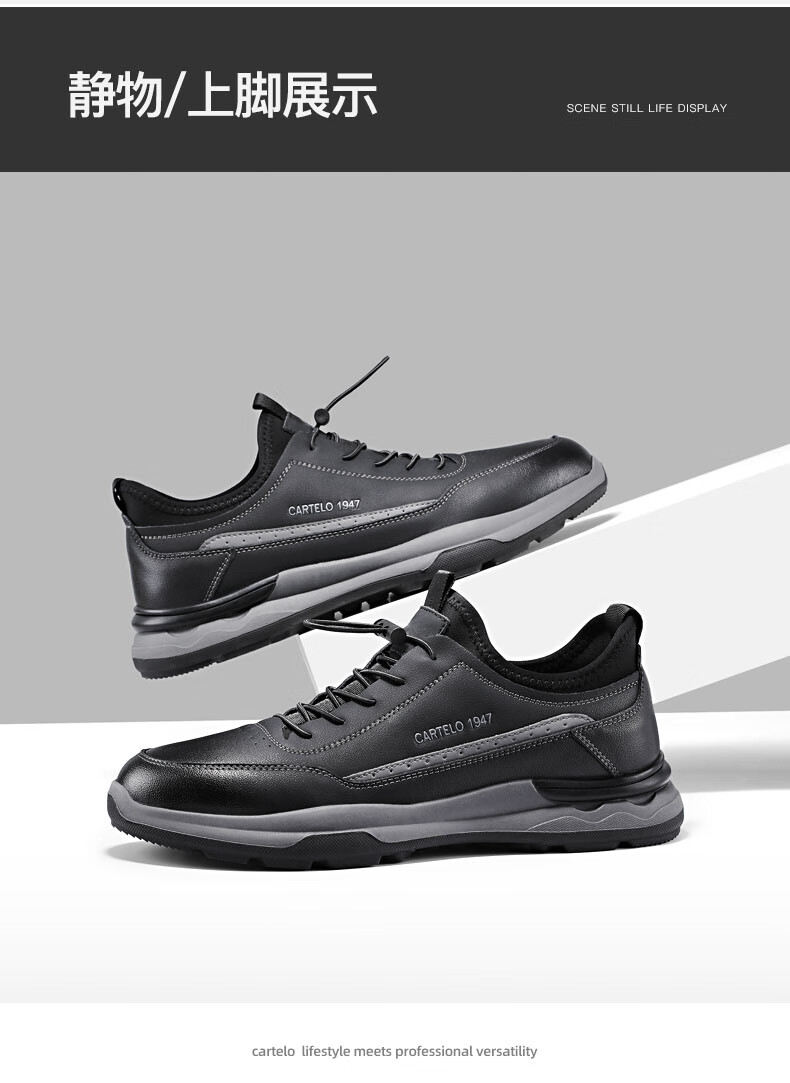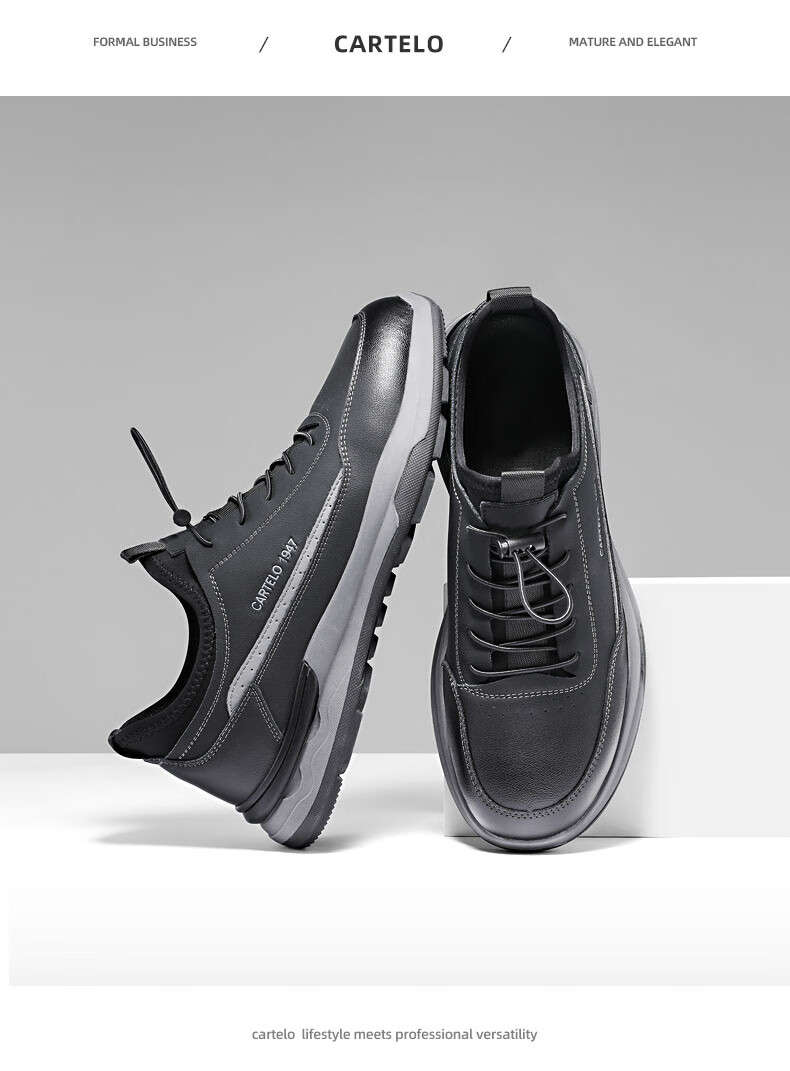 卡帝乐鳄鱼男鞋2025春夏季新款男士休闲皮鞋时尚运动休闲鞋百搭舒适旅游鞋子 5603黑色 38
