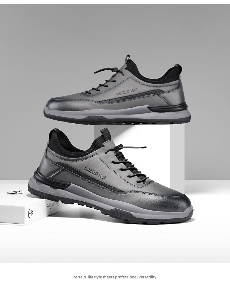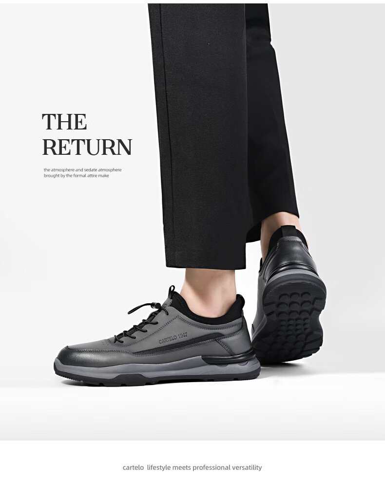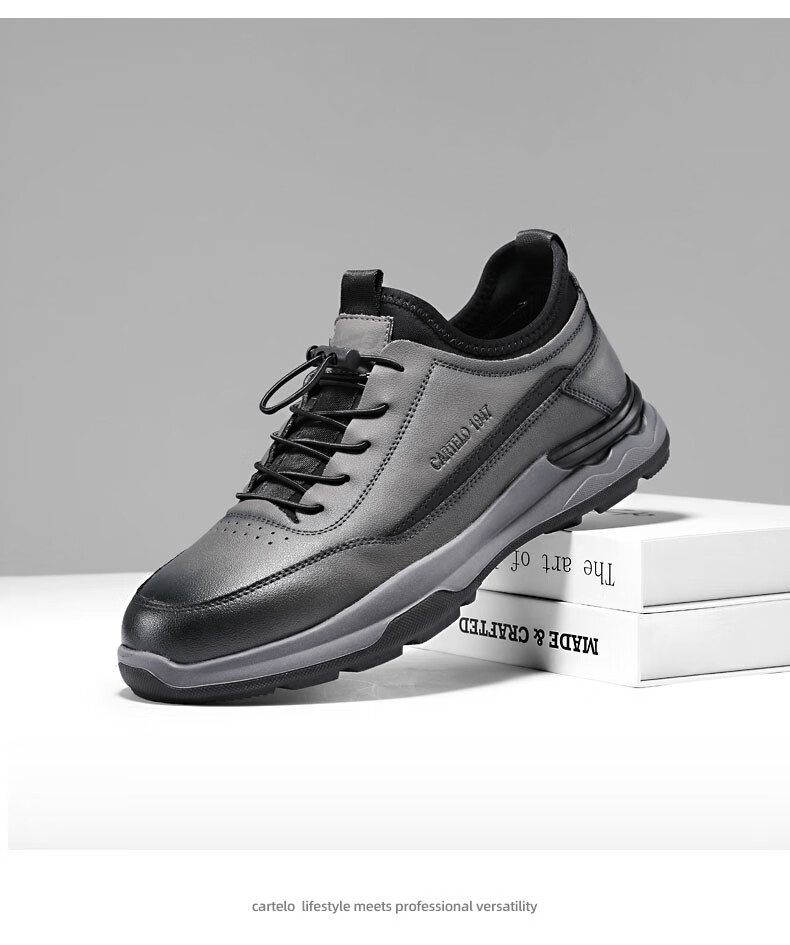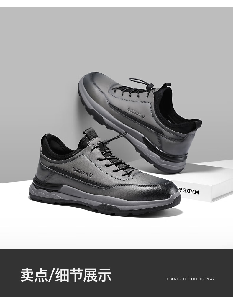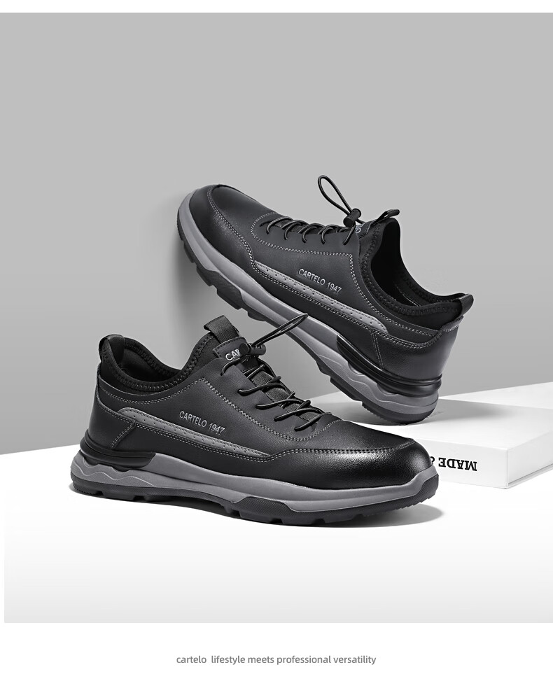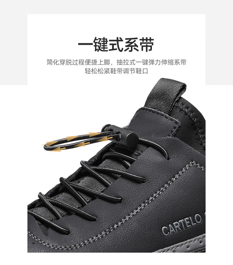 卡帝乐鳄鱼男鞋2025春夏季新款男士休闲皮鞋时尚运动休闲鞋百搭舒适旅游鞋子 5603黑色 38