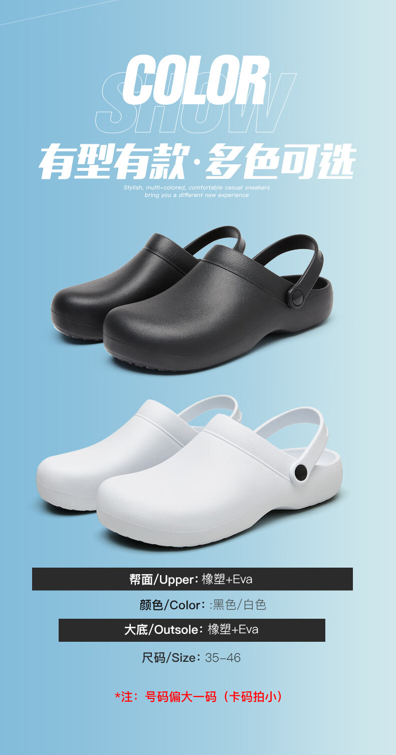 TEER厨房安全鞋防滑厨师鞋防水工作鞋防油护士鞋手术鞋老人鞋妈妈后厨 白色 脚形偏瘦的建议选小一码 35 (225mm)