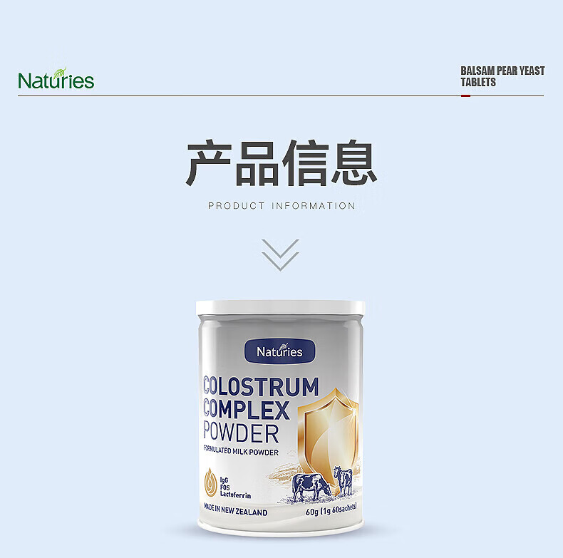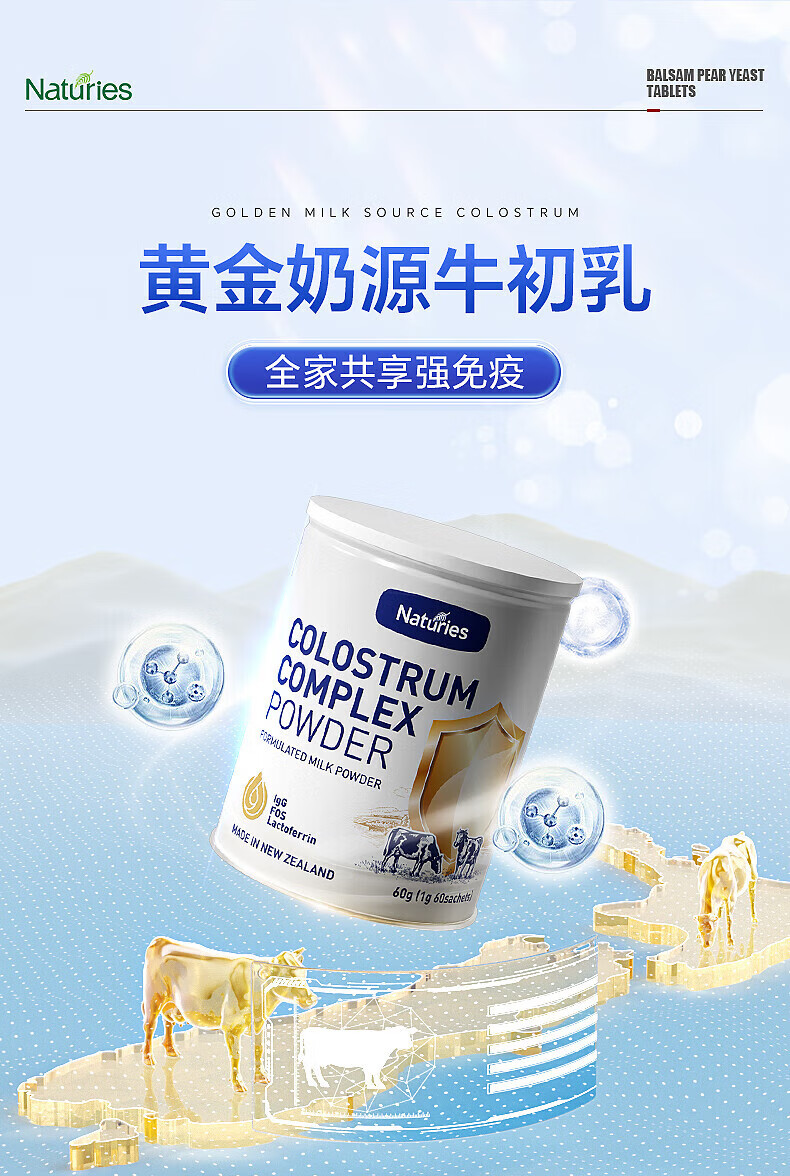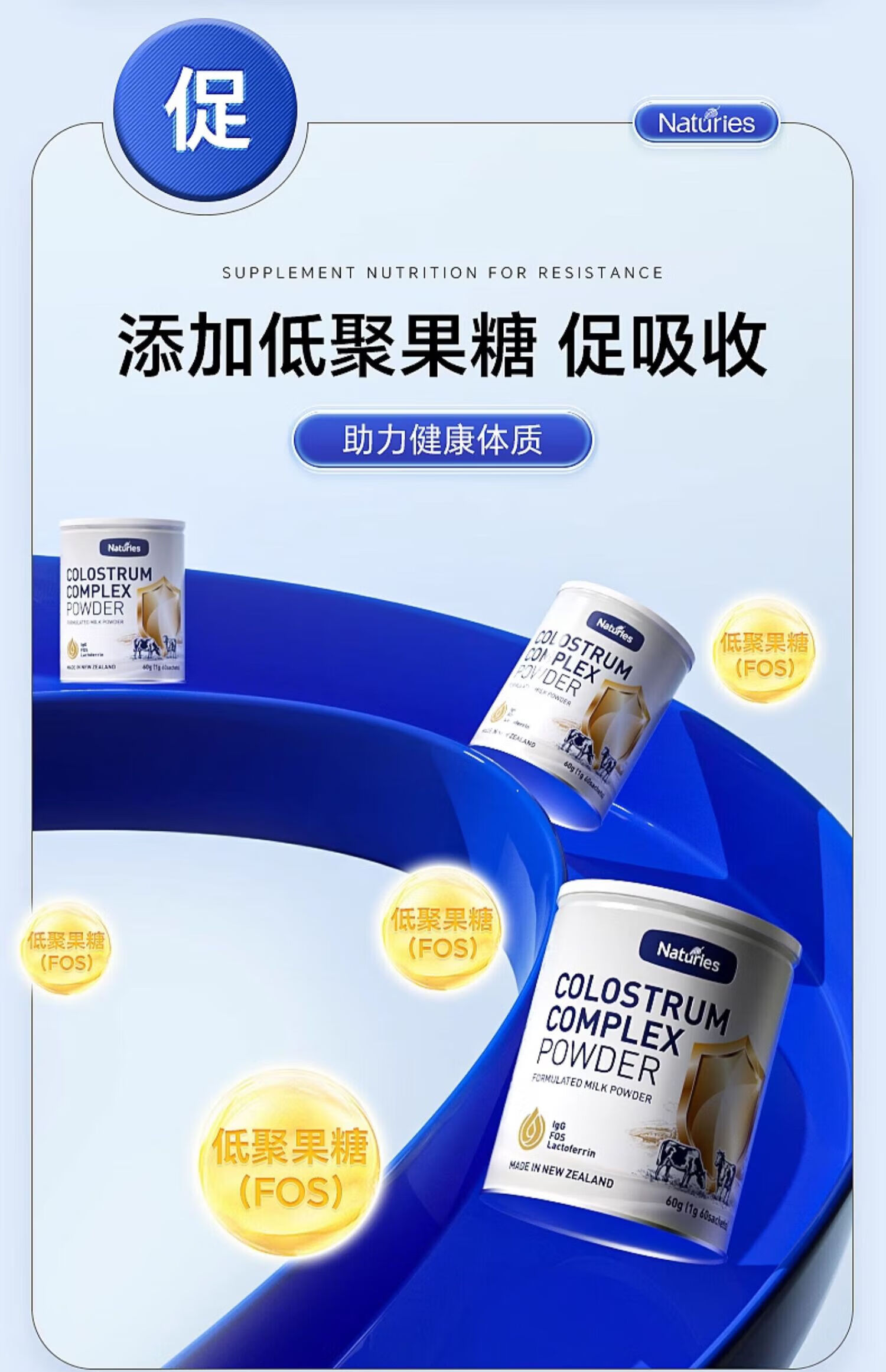 奈氏力斯新西兰进口牛初乳奶粉儿童成人人体免疫球蛋白乳清乳铁蛋白营养品 60袋*12罐 【整箱装 上门送货】