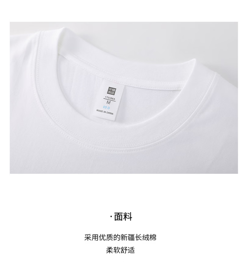 尺度保罗100%纯棉短袖T恤夏季重磅新疆长绒棉半袖t恤小白T恤男圆领打底衫 SX301白色 M 推荐95-120斤