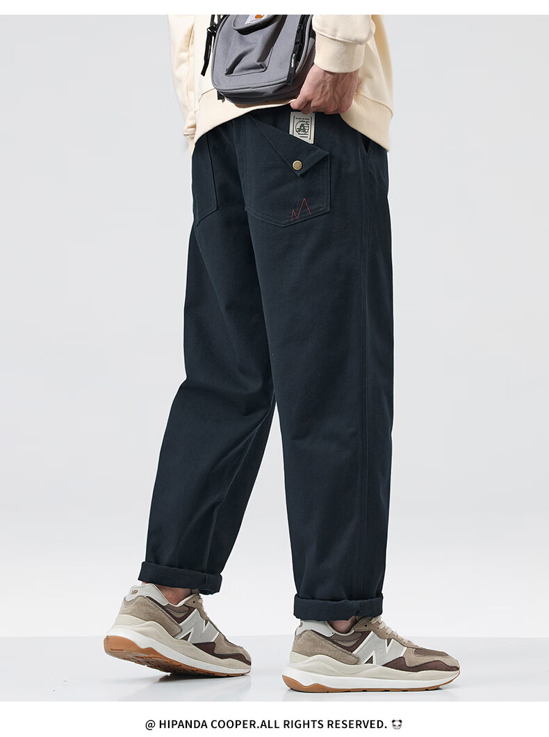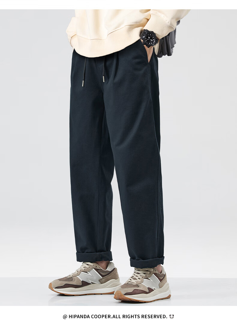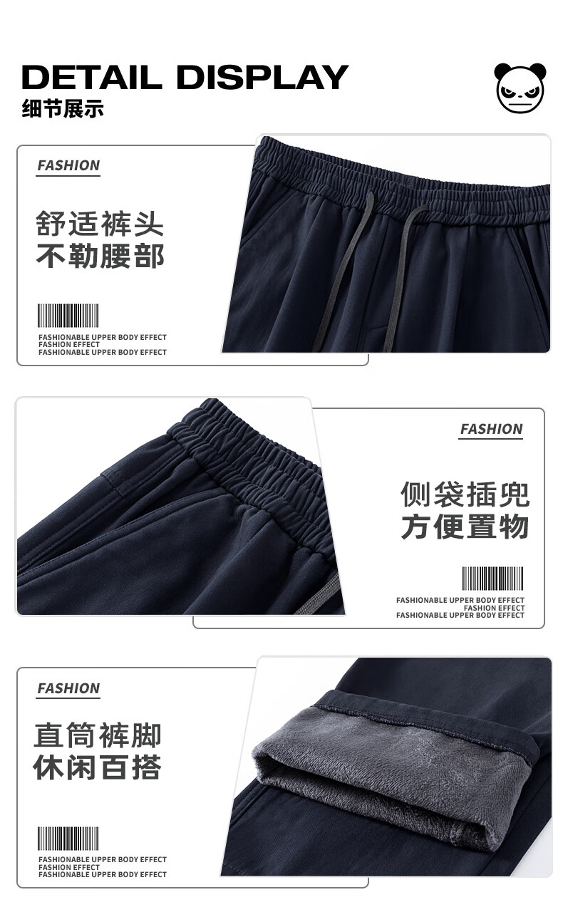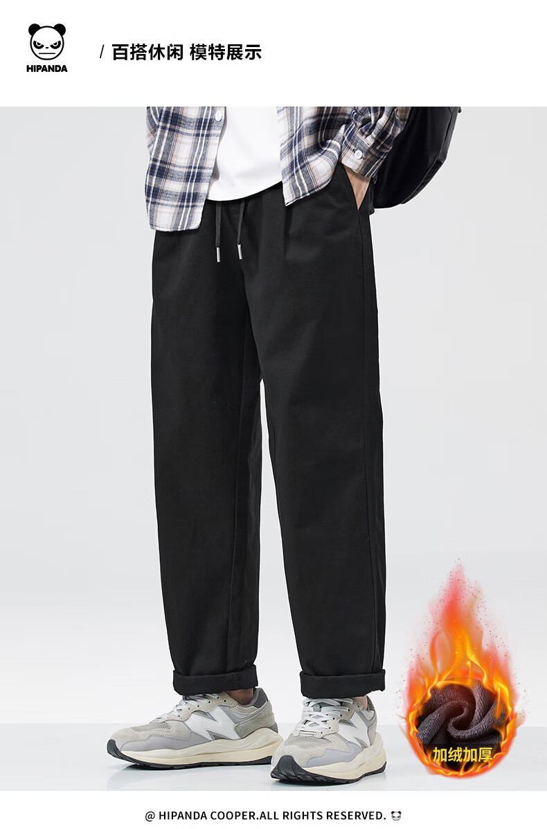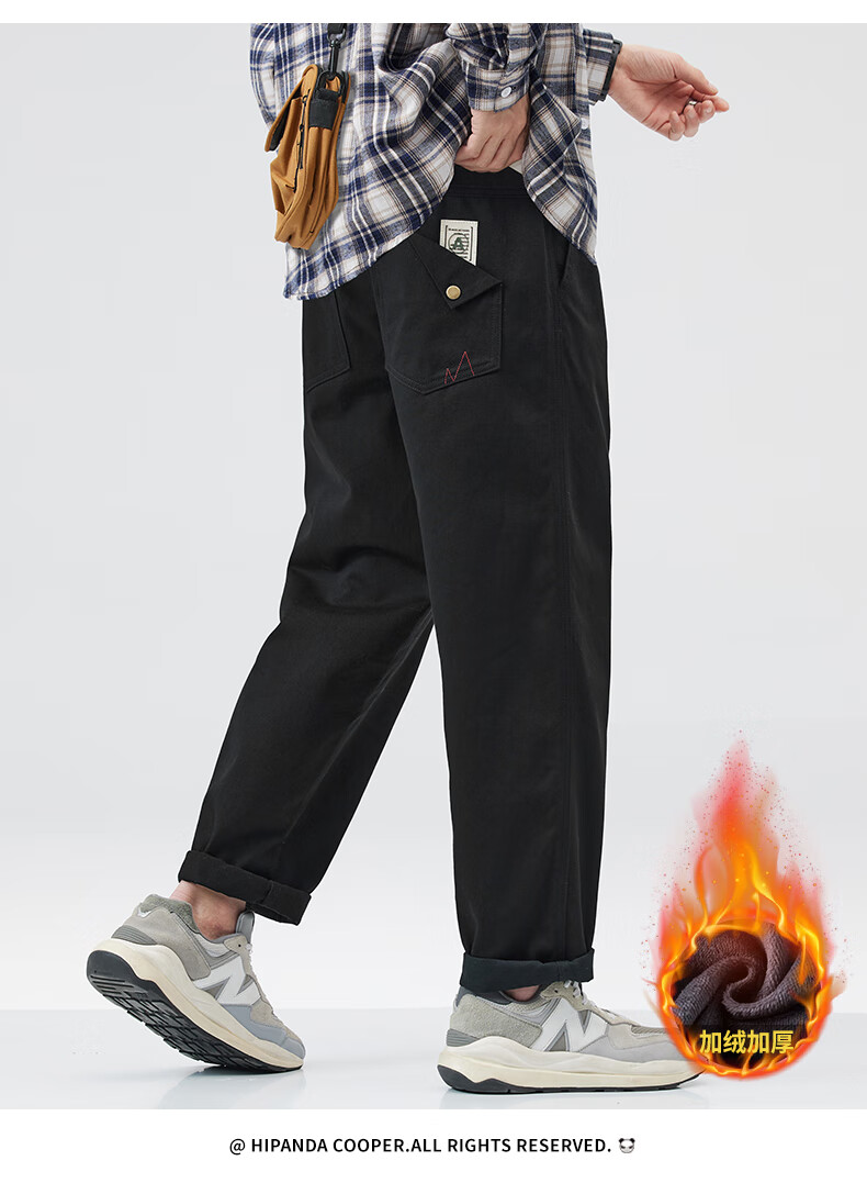HIPANDA你好熊猫加绒休闲裤男2025年秋冬新款美式潮流休闲直筒长裤子男裤 藏蓝加绒 XL