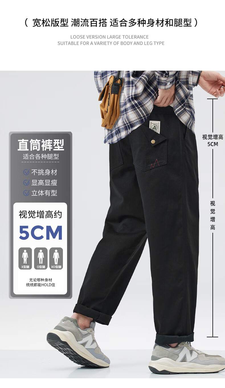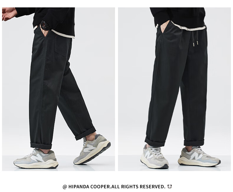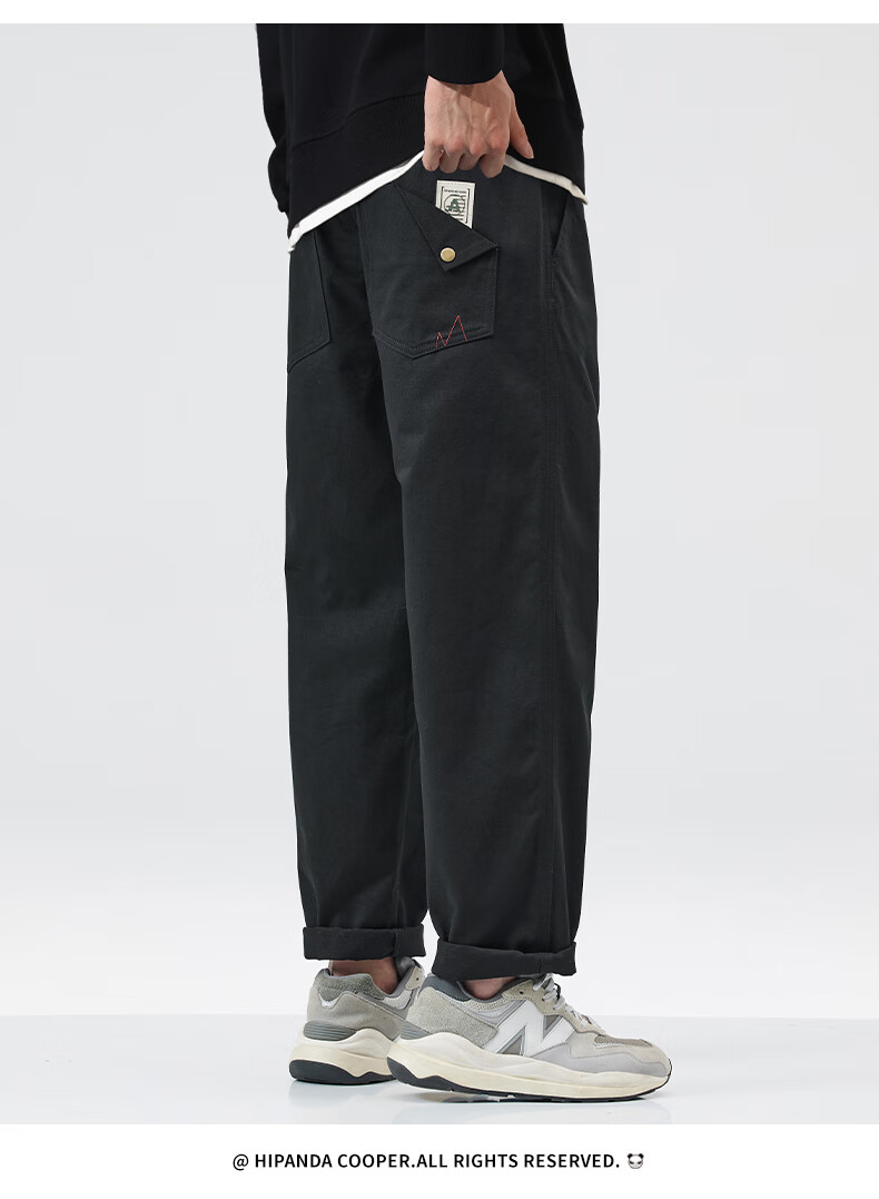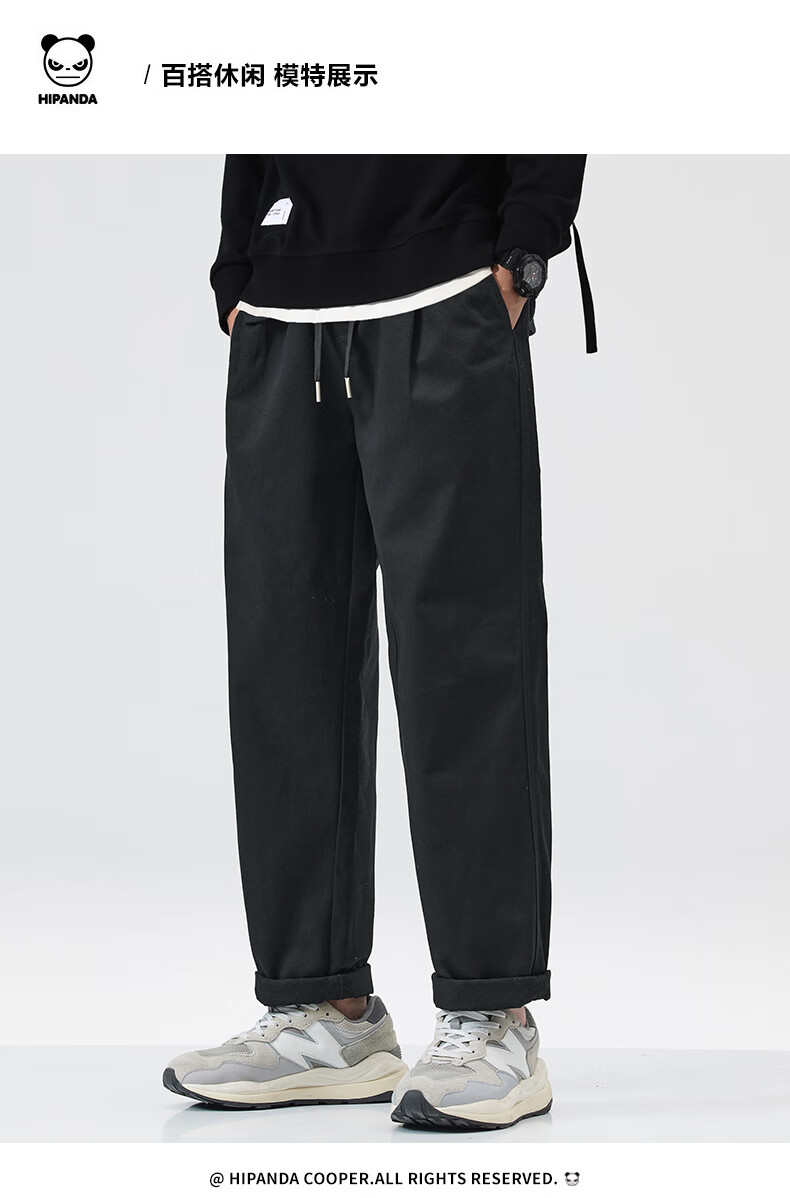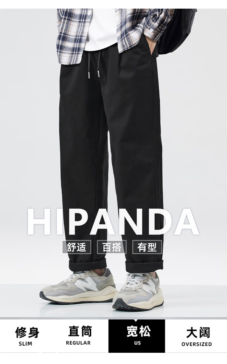 HIPANDA你好熊猫加绒休闲裤男2025年秋冬新款美式潮流休闲直筒长裤子男裤 藏蓝加绒 XL