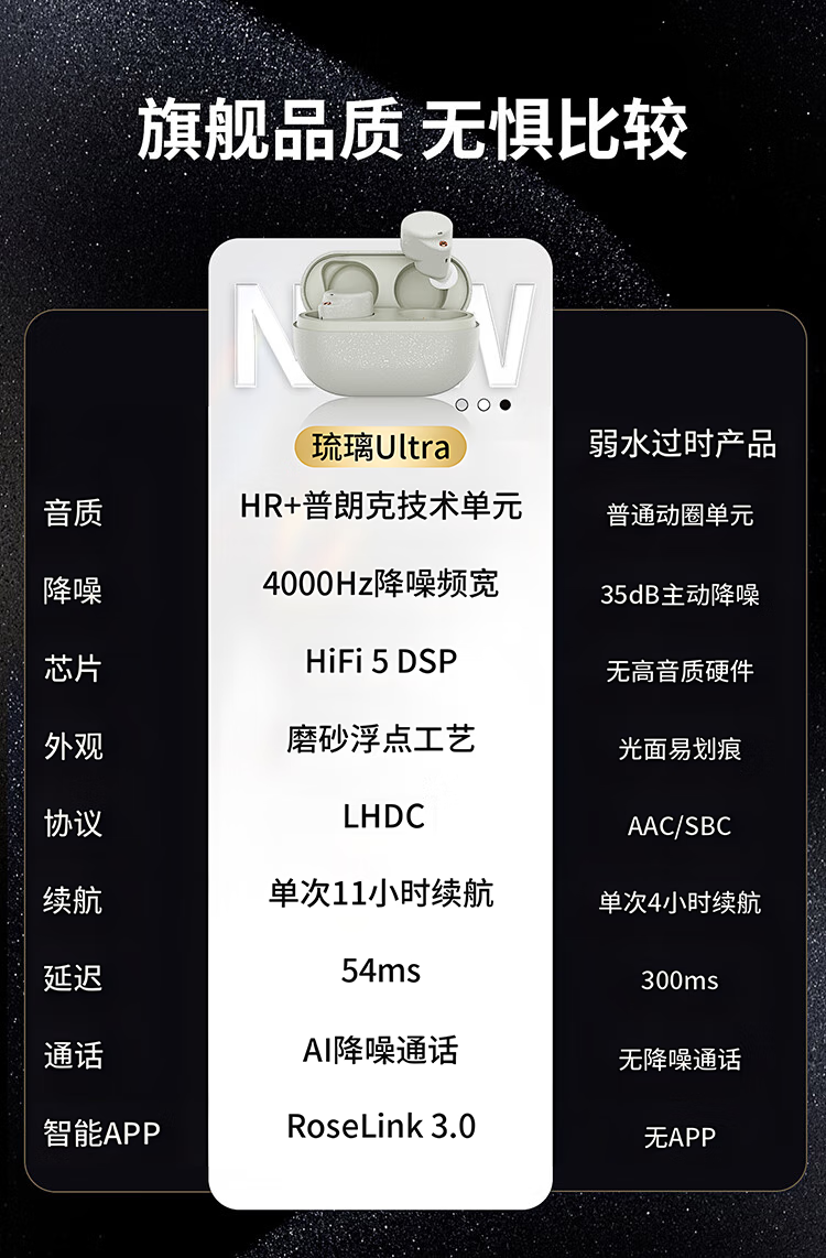 弱水时砂【重磅新品】琉璃Ultra无线蓝牙耳机琉璃X升级款入耳运动耳机抗风噪主动降噪HiFi音质超长续航学生 【静谧套装】浅云白+降噪耳塞套
