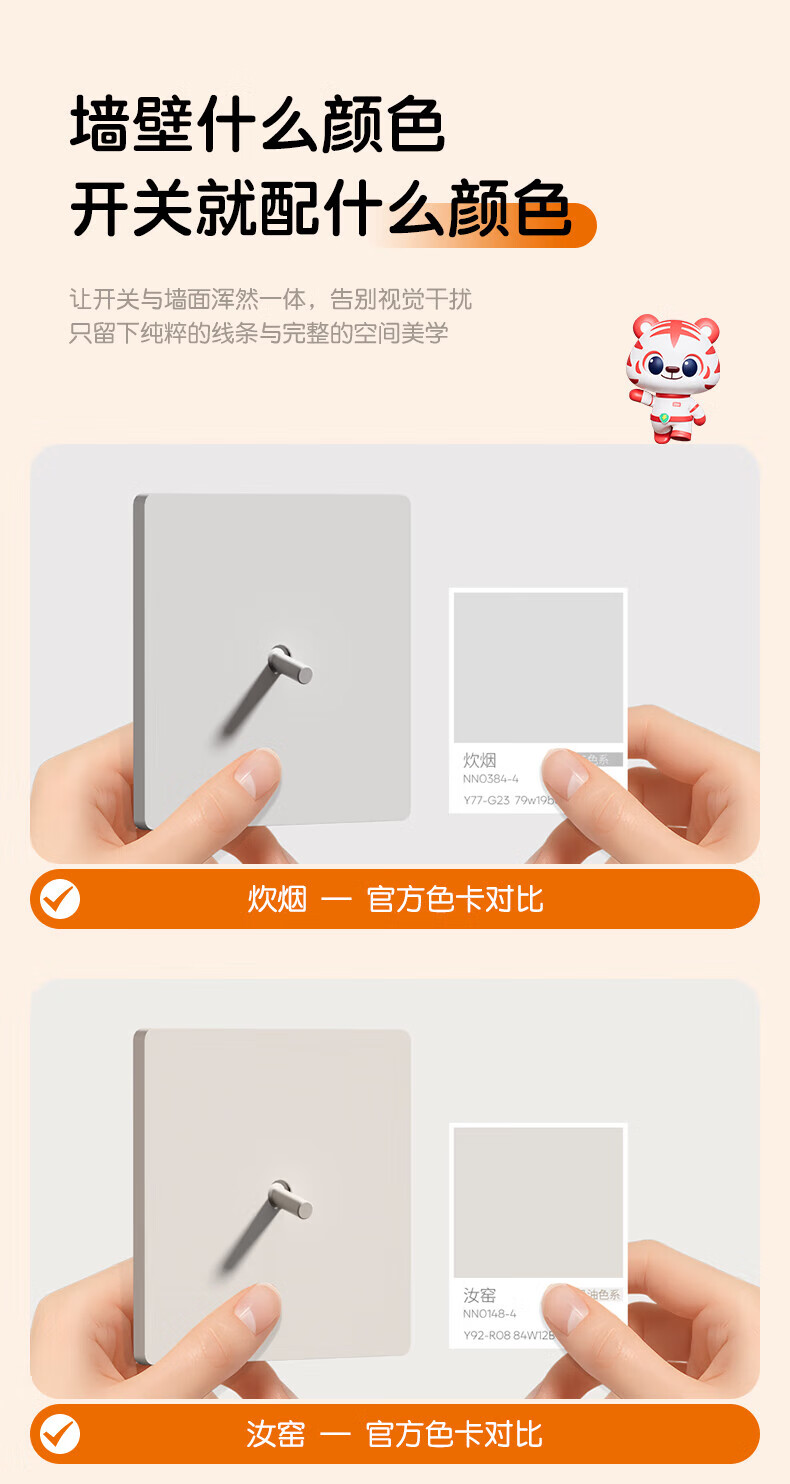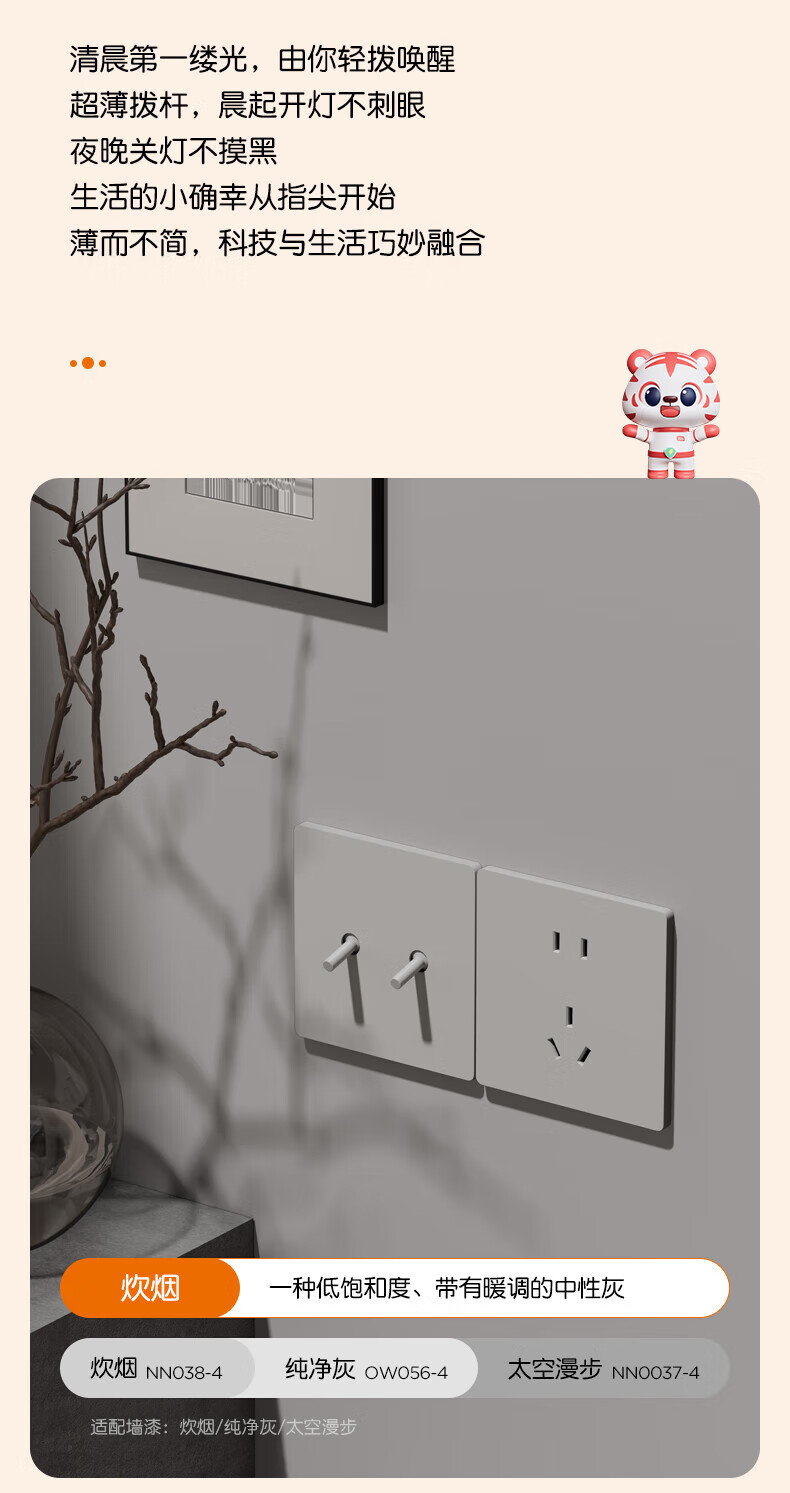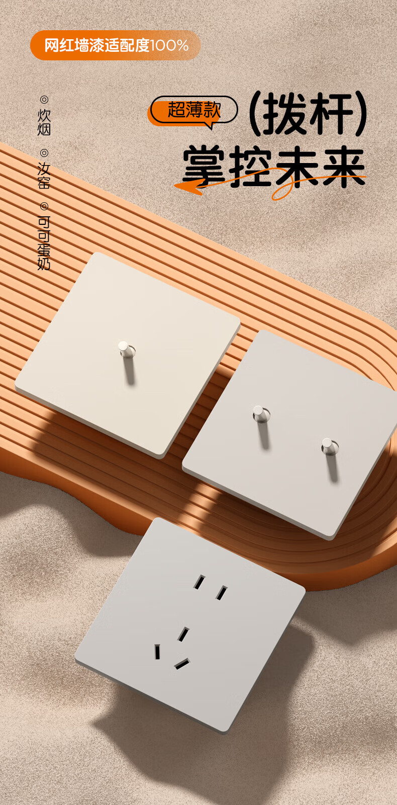 国际电工86型隐藏暗装直拨杆开关插座面板汝窑灰一开双控错位五孔墙壁 穿线板