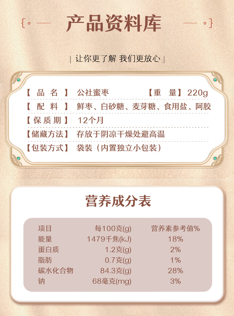 沂蒙公社蜜枣220g无核阿胶蜜枣清甜软糯粽子枣蜜饯果干
