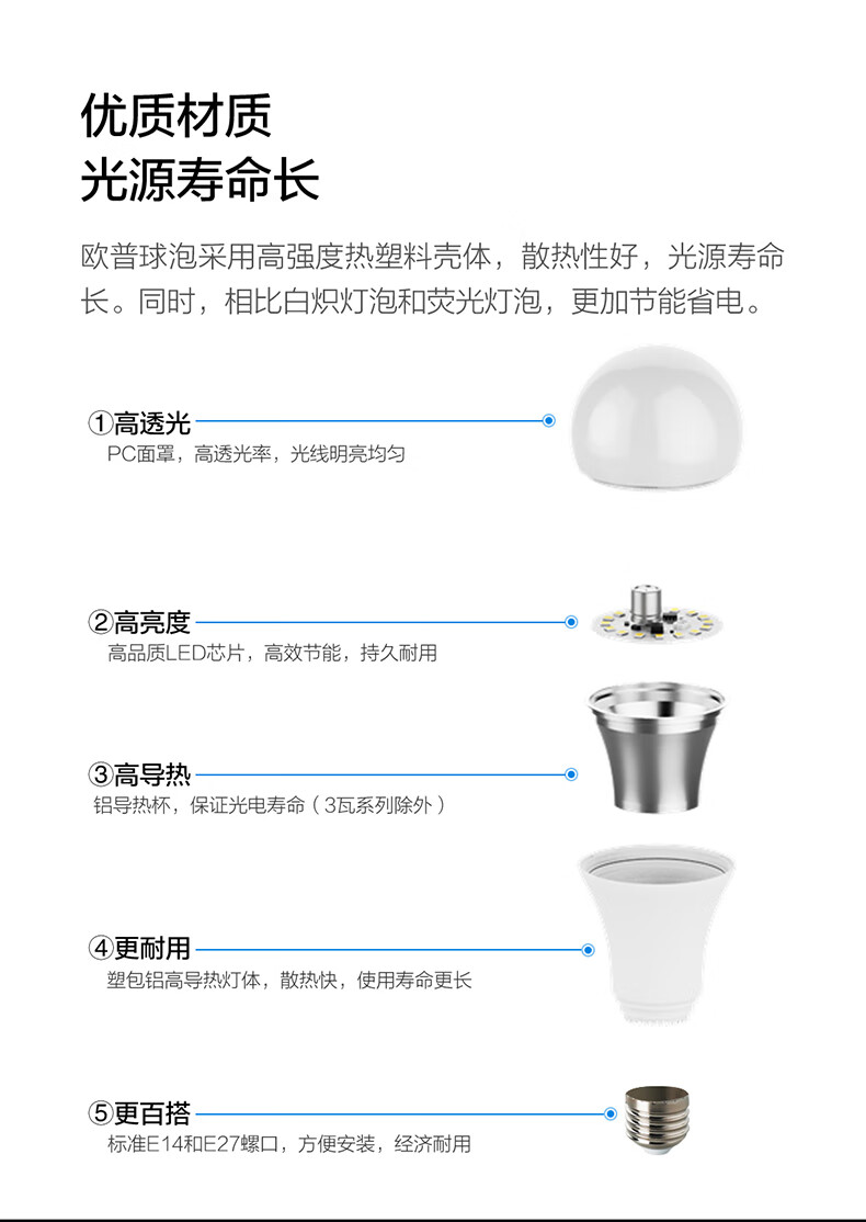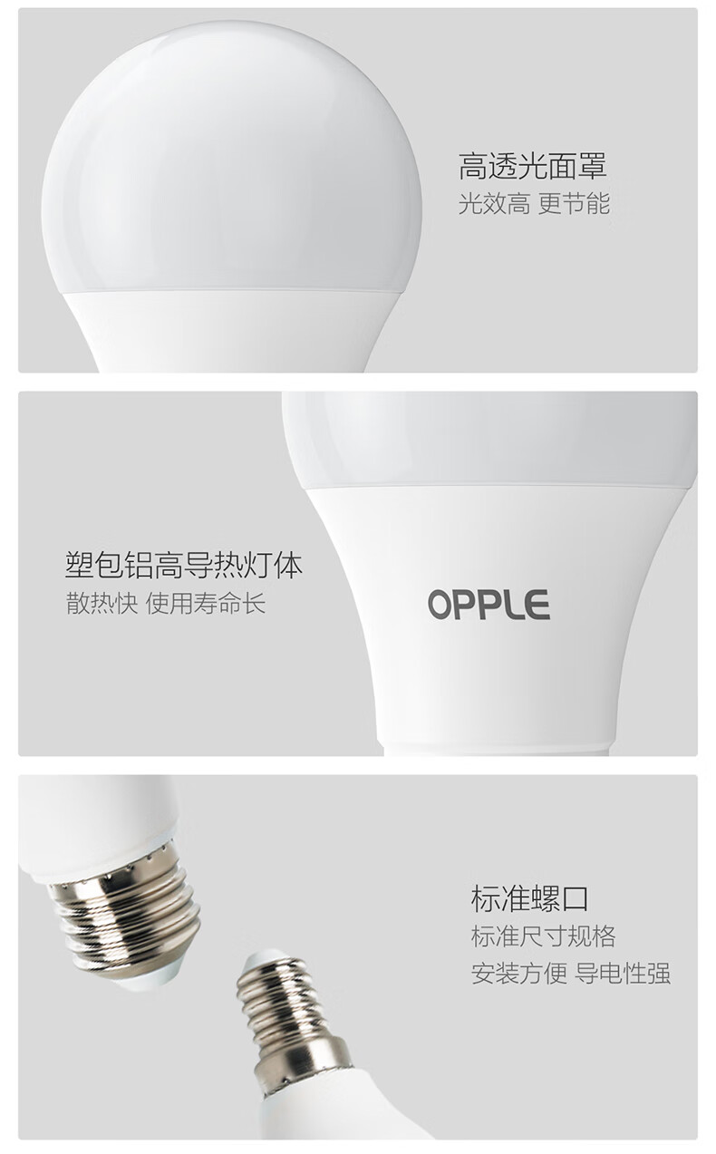 欧普照明(OPPLE)高显色led灯泡9W节能大螺口E27家用光源高亮节能真彩球泡6000k