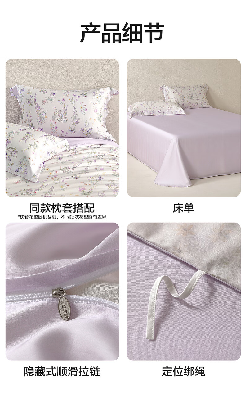水星家纺四件套床上A类天丝™棉凉感莱赛尔被套枕套床单26年新款套件 牧野寻芳 床单款 (被套150*210cm)