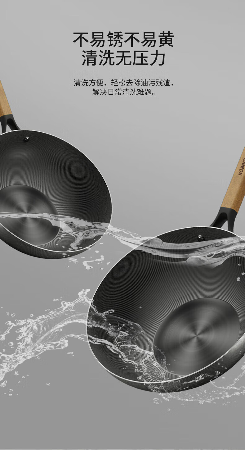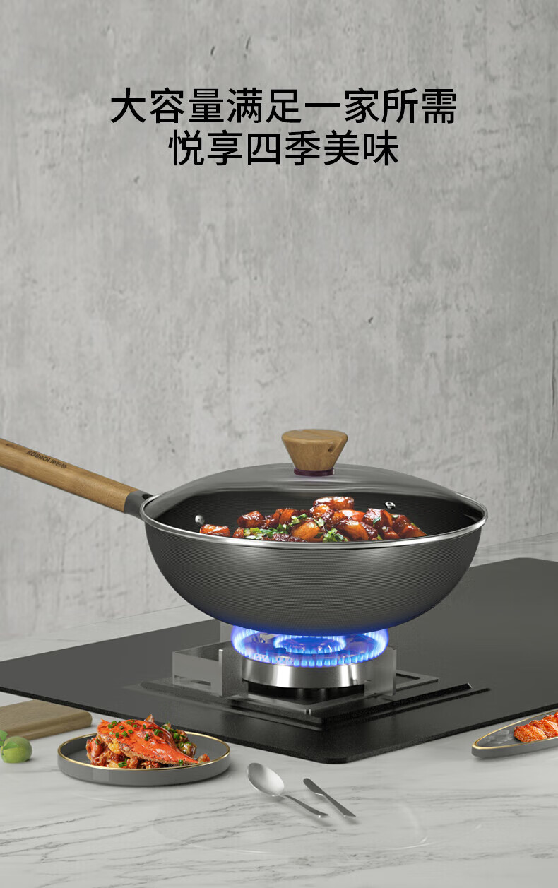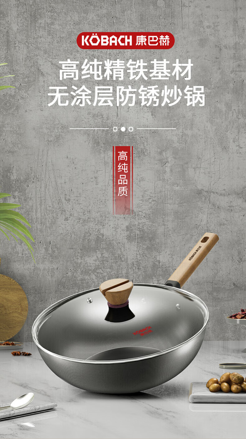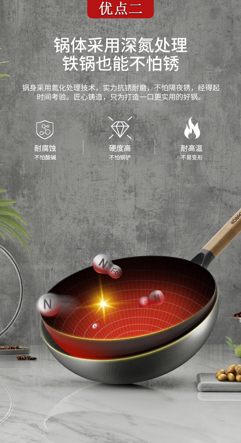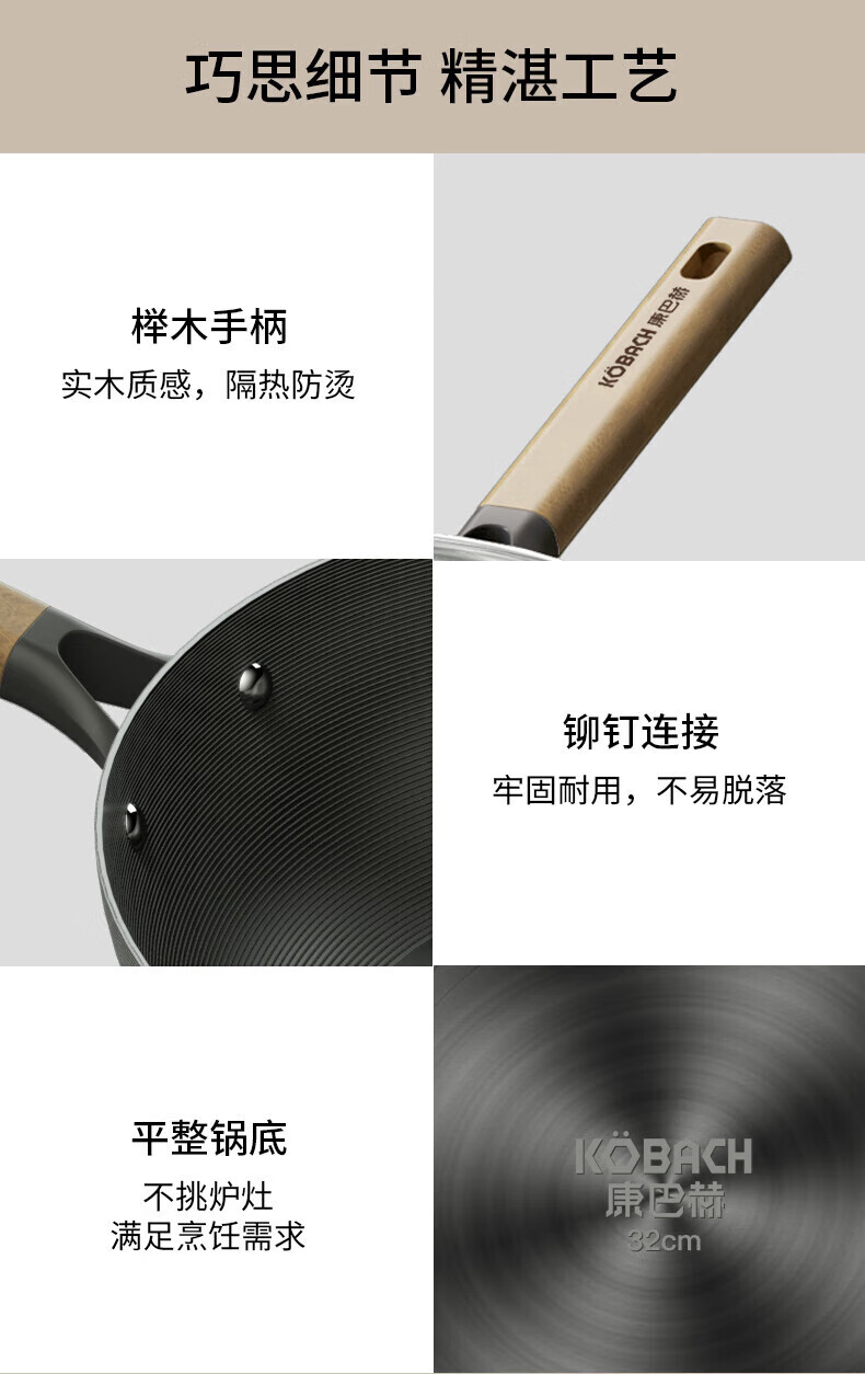 KOBACH锅无涂层炒菜锅少油烟精铁锅家用老铁锅电磁炉燃气灶通用32cm 32cm
