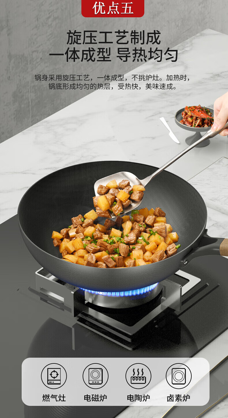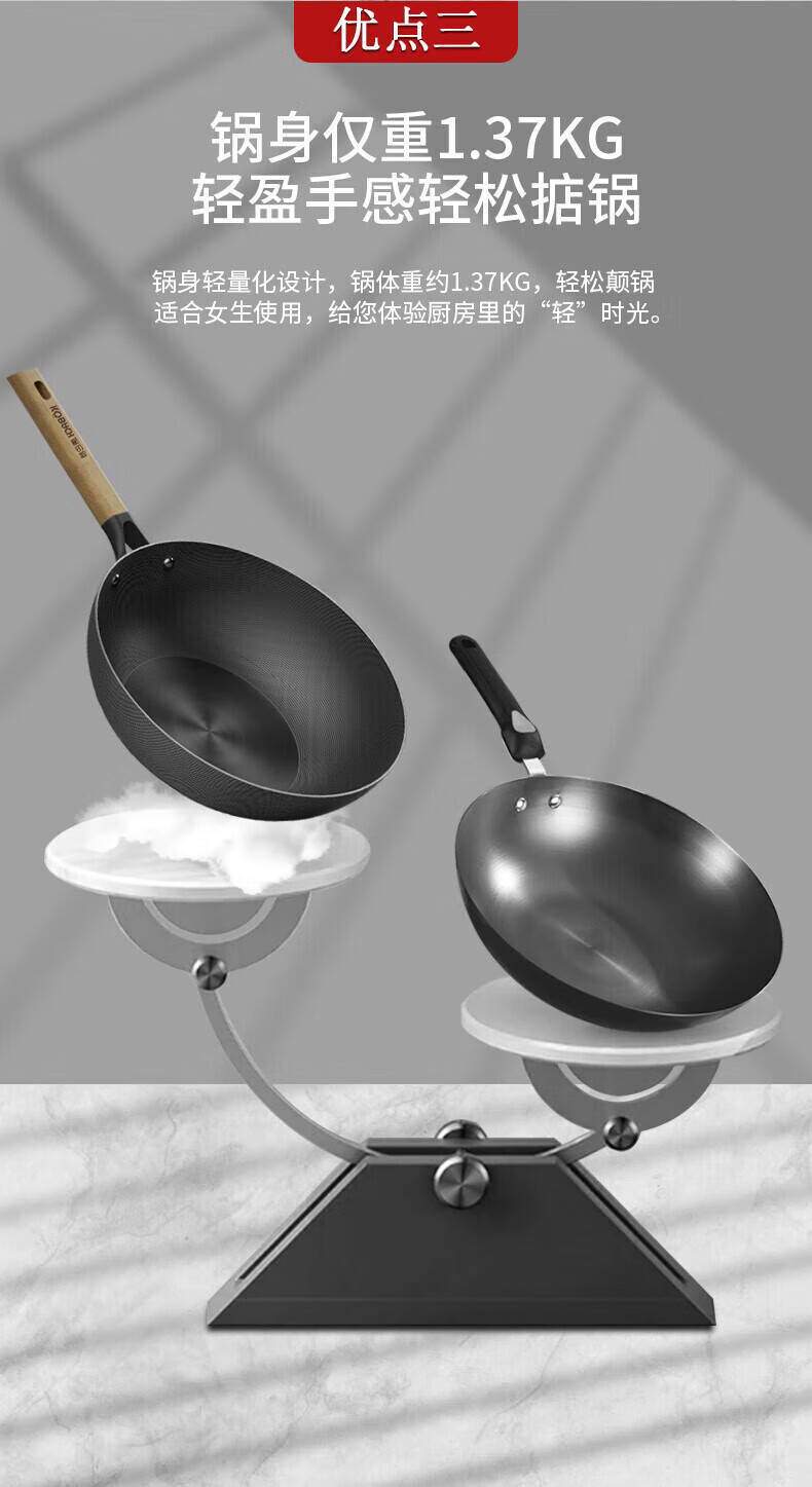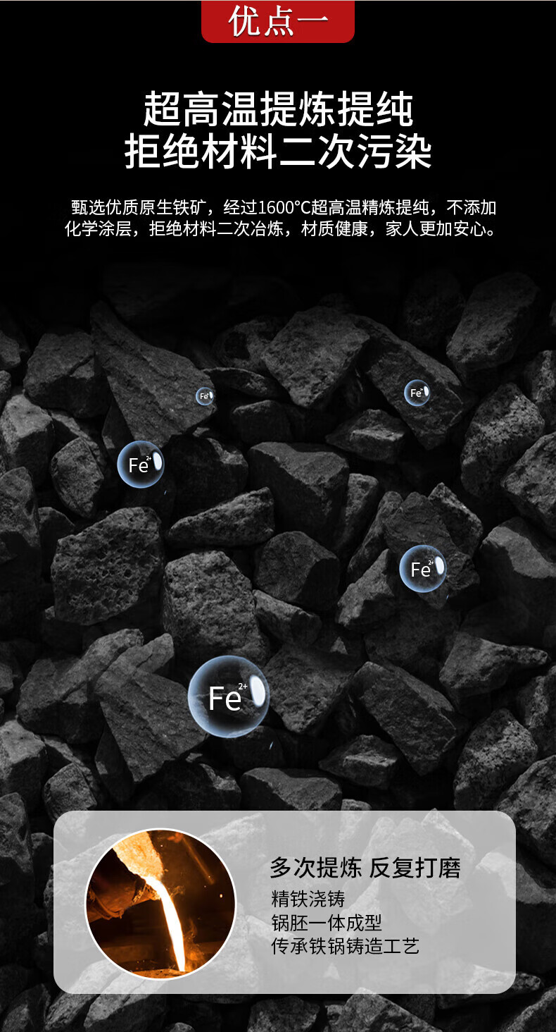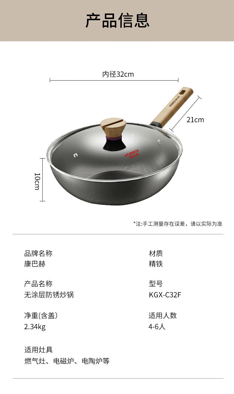 KOBACH锅无涂层炒菜锅少油烟精铁锅家用老铁锅电磁炉燃气灶通用32cm 32cm