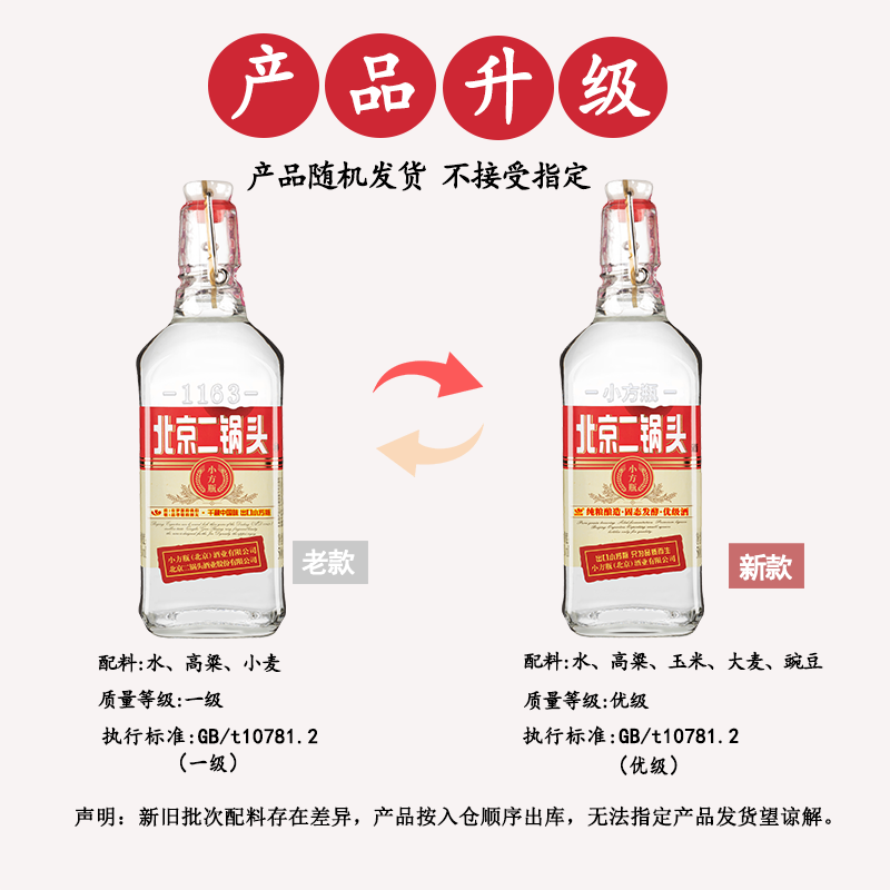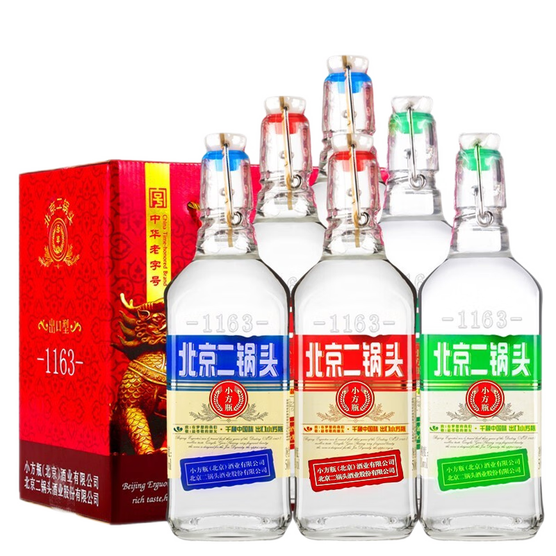 永丰牌北京二锅头小方瓶白酒整箱批发清香型自饮纯粮食口粮酒出口小方瓶 42度 500mL 6瓶 三混小方瓶