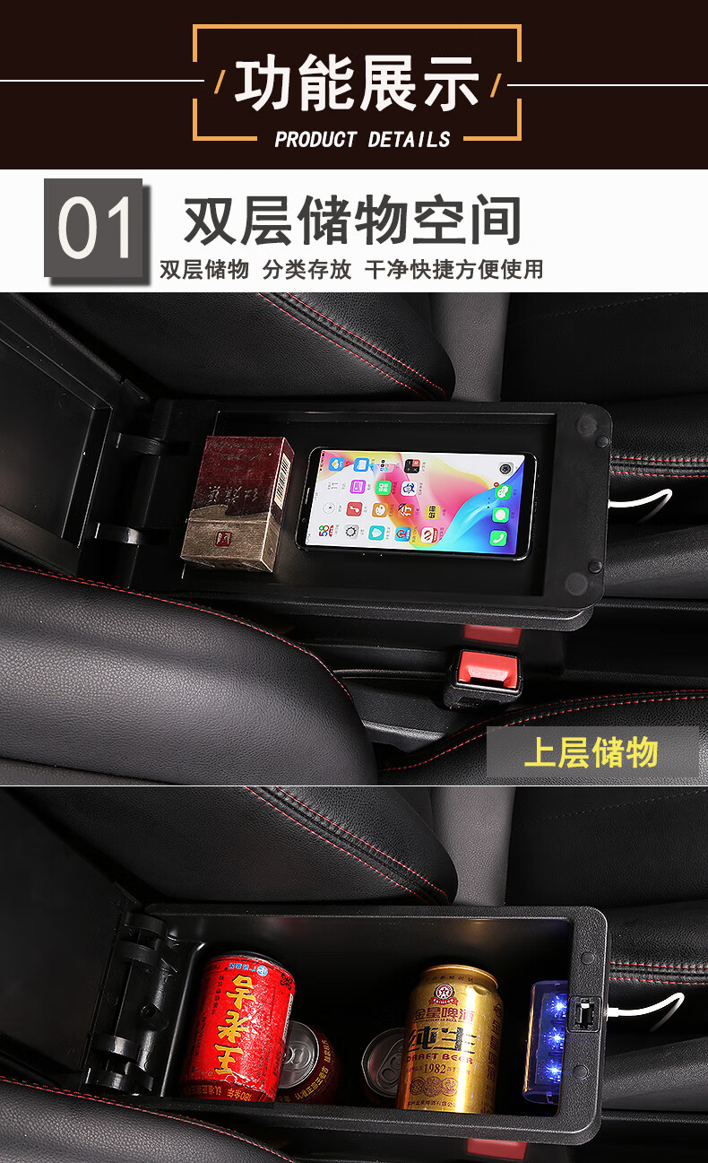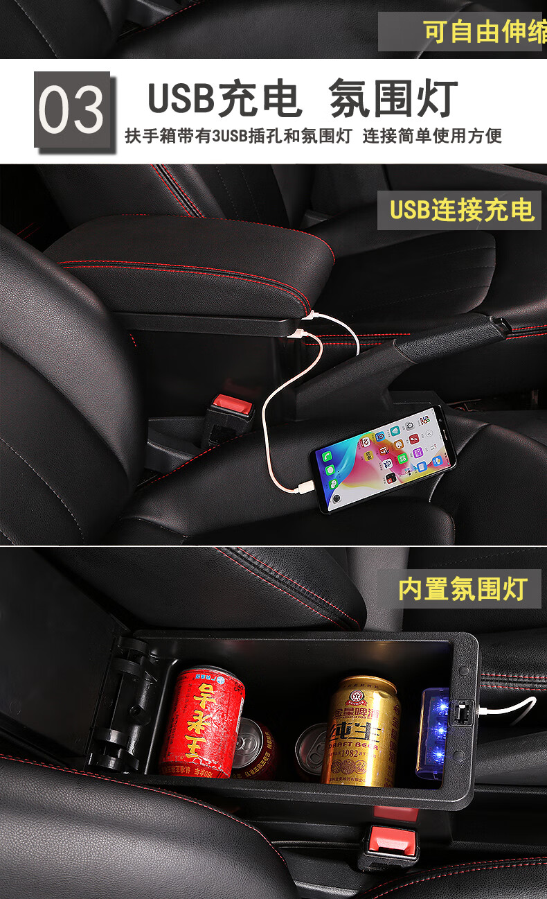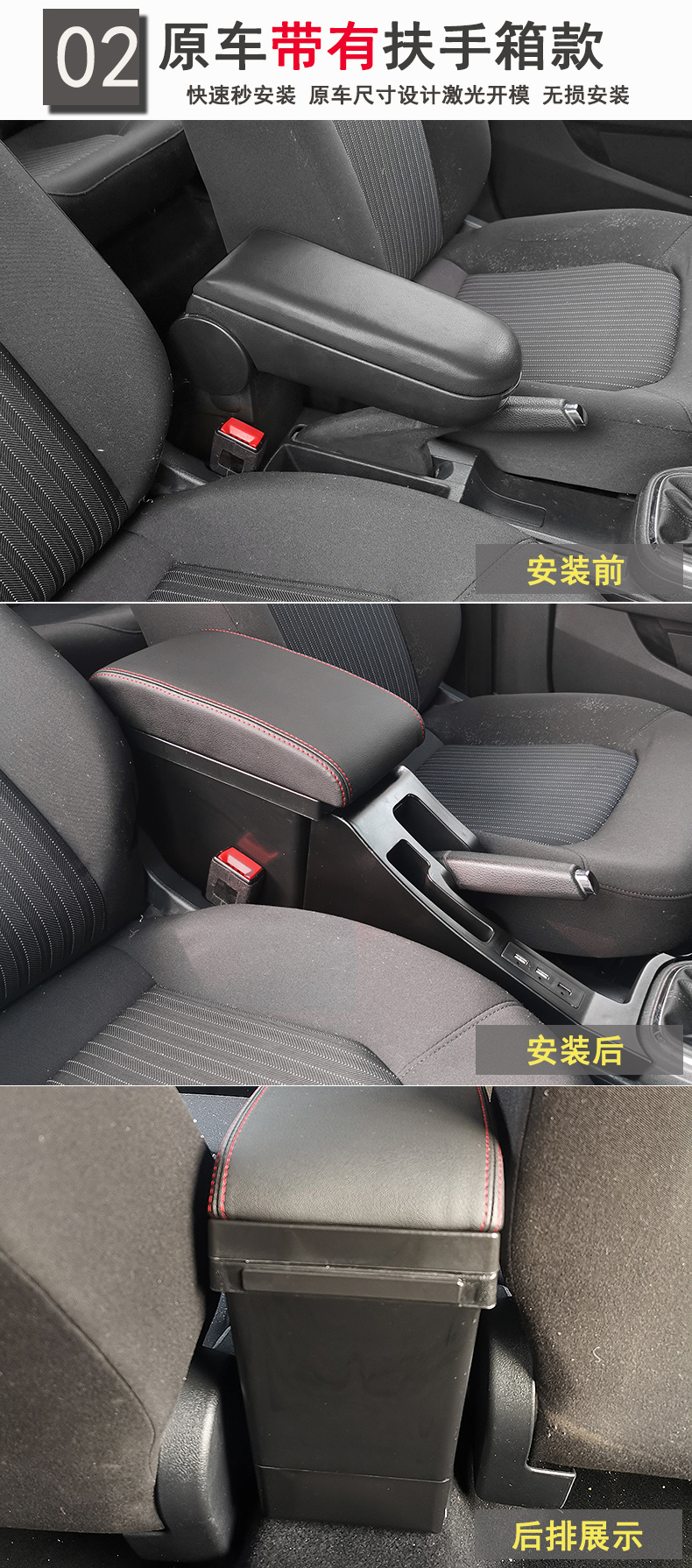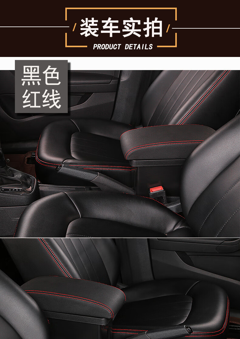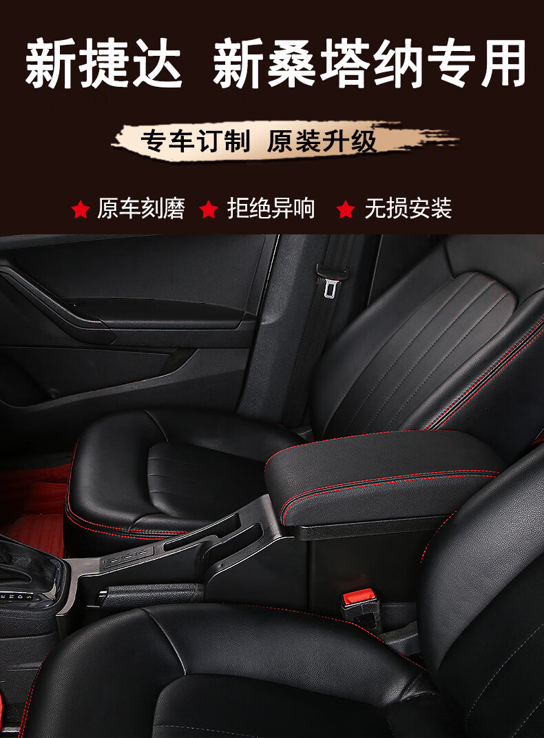 2021款大众新桑塔纳捷达va3浩纳扶手箱改装原装原厂配件专用中央手扶箱 真皮款-黑色黑线【低配车原车不带有扶手】现货速发