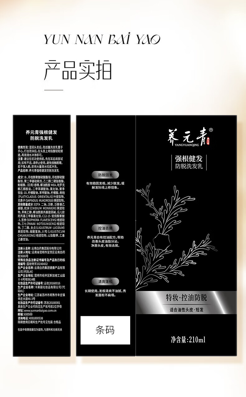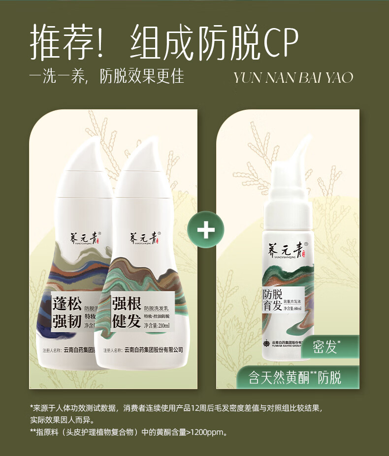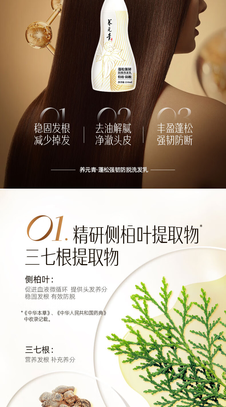 养元青洗发水防脱育发洗发水控油蓬松育发液护发固发洗头膏露套 【国妆特证】短发防脱洗发套装*3
