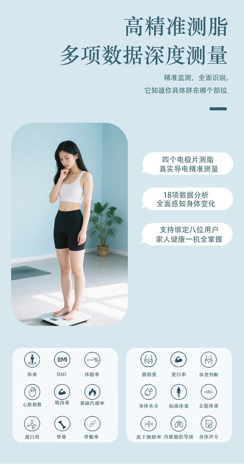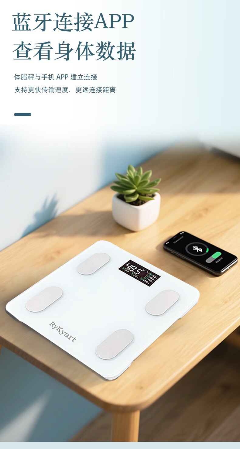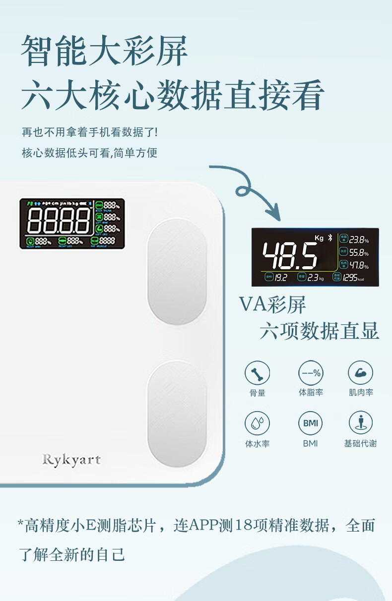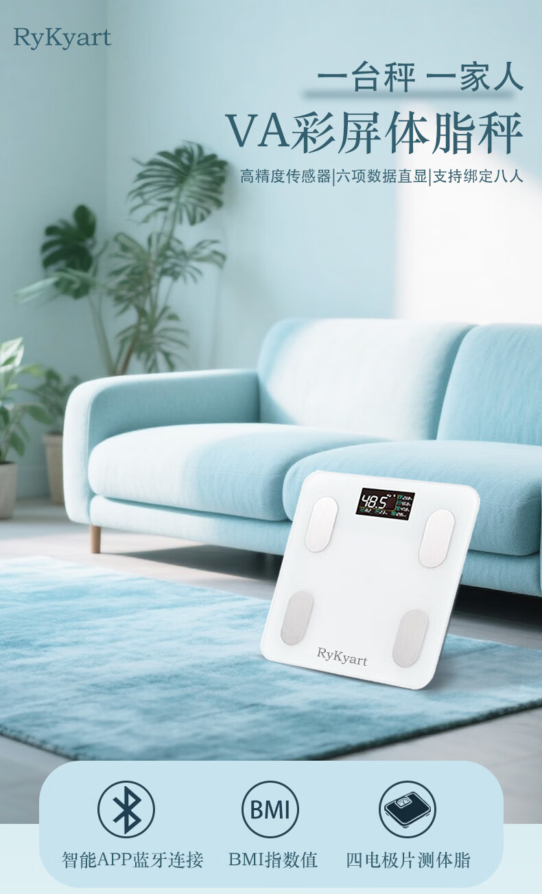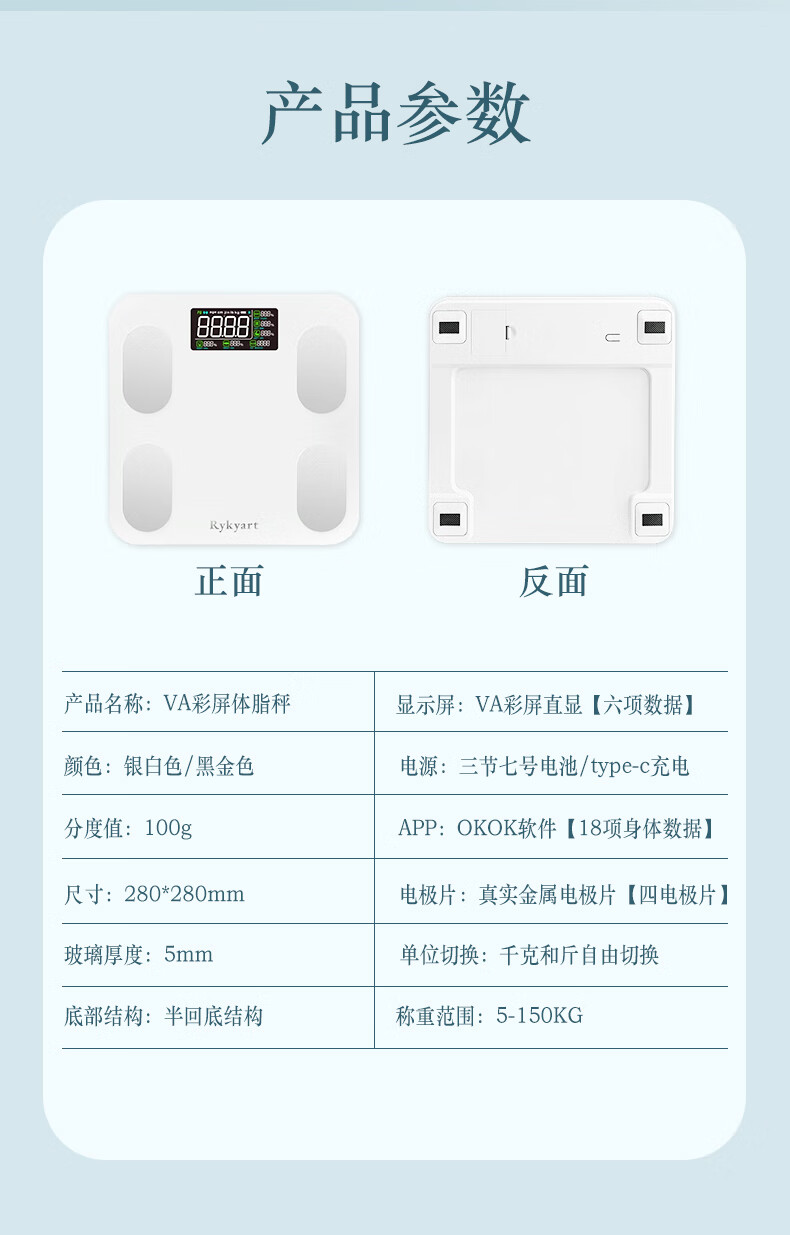 芮亚体脂秤VA彩屏称重电子秤减肥专用智能精准家用宿舍用体重秤 【充电款】银白色VA彩屏体脂秤