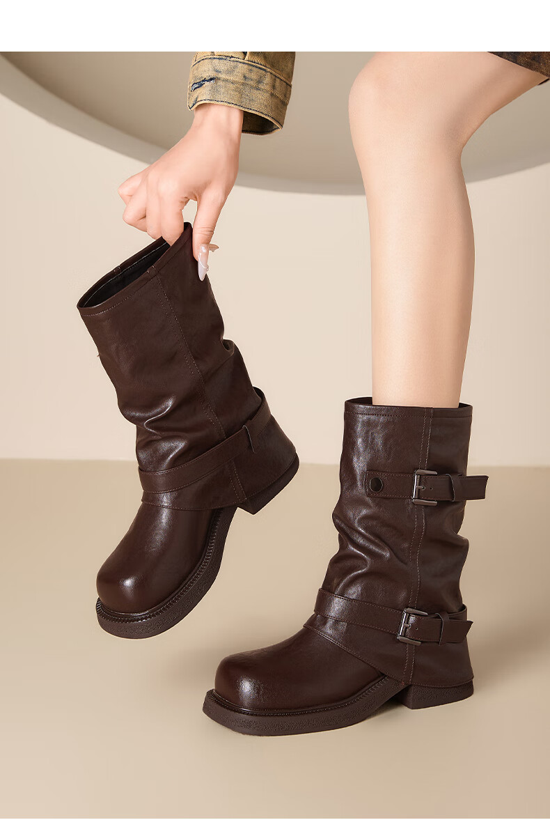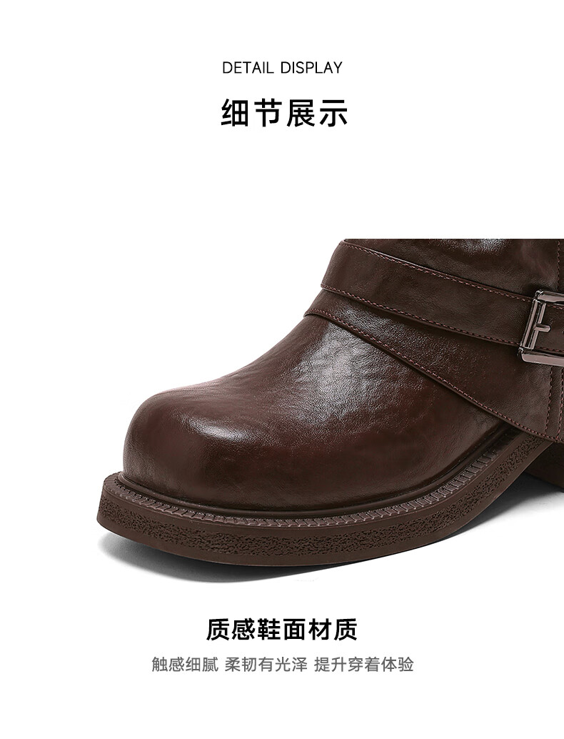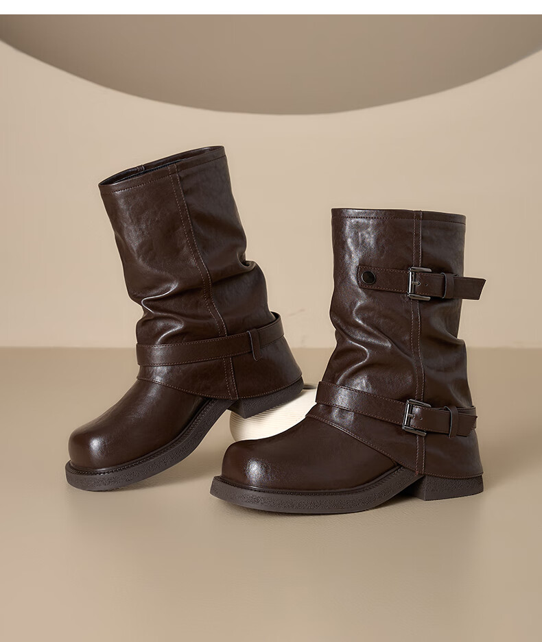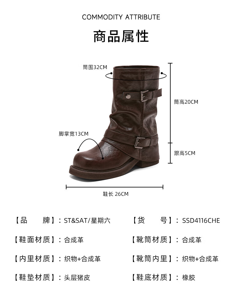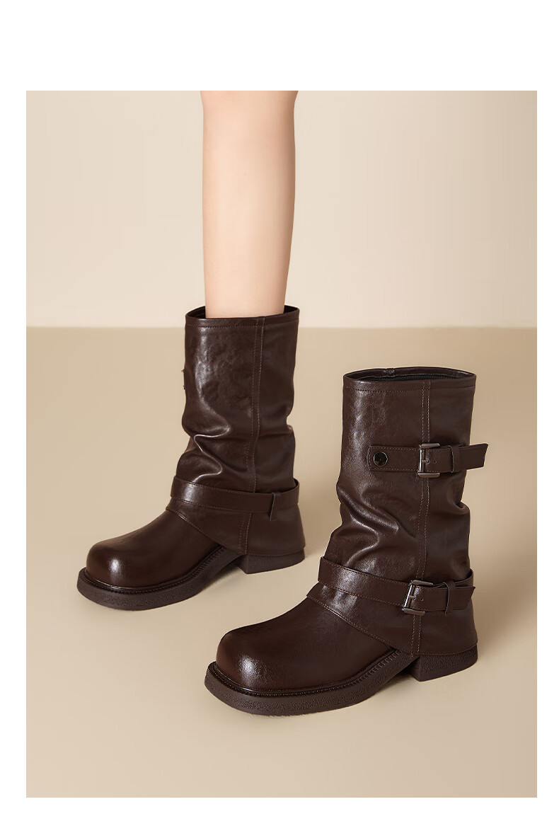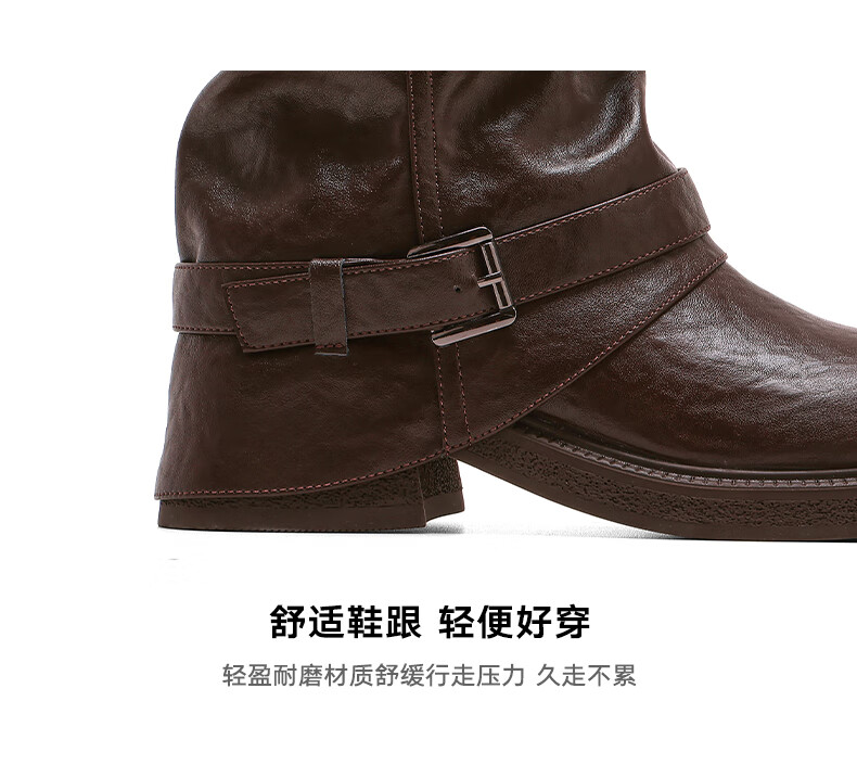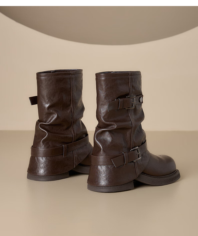 星期六厚底马丁靴女款2025新款冬季棕色短靴复古美拉德堆堆裤管靴 棕色 40