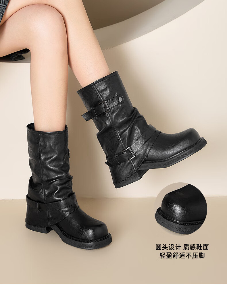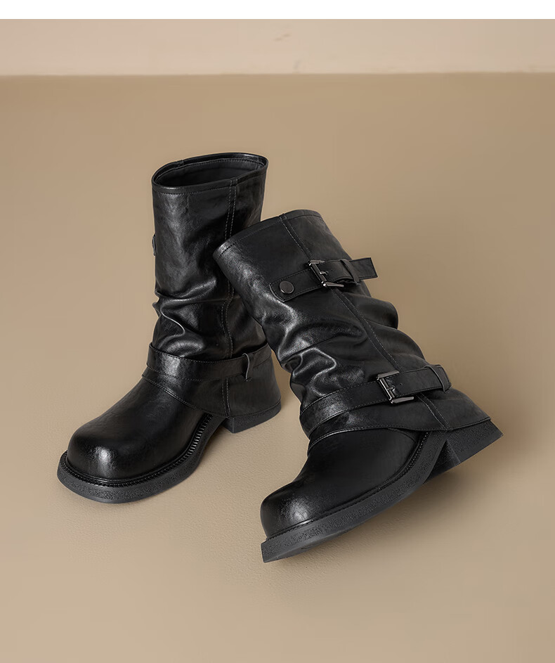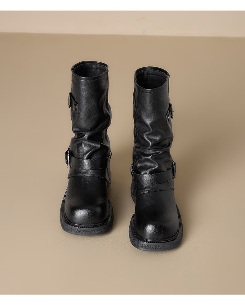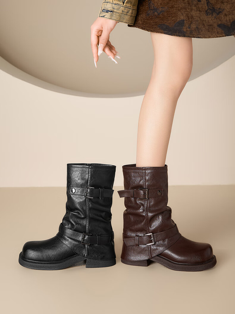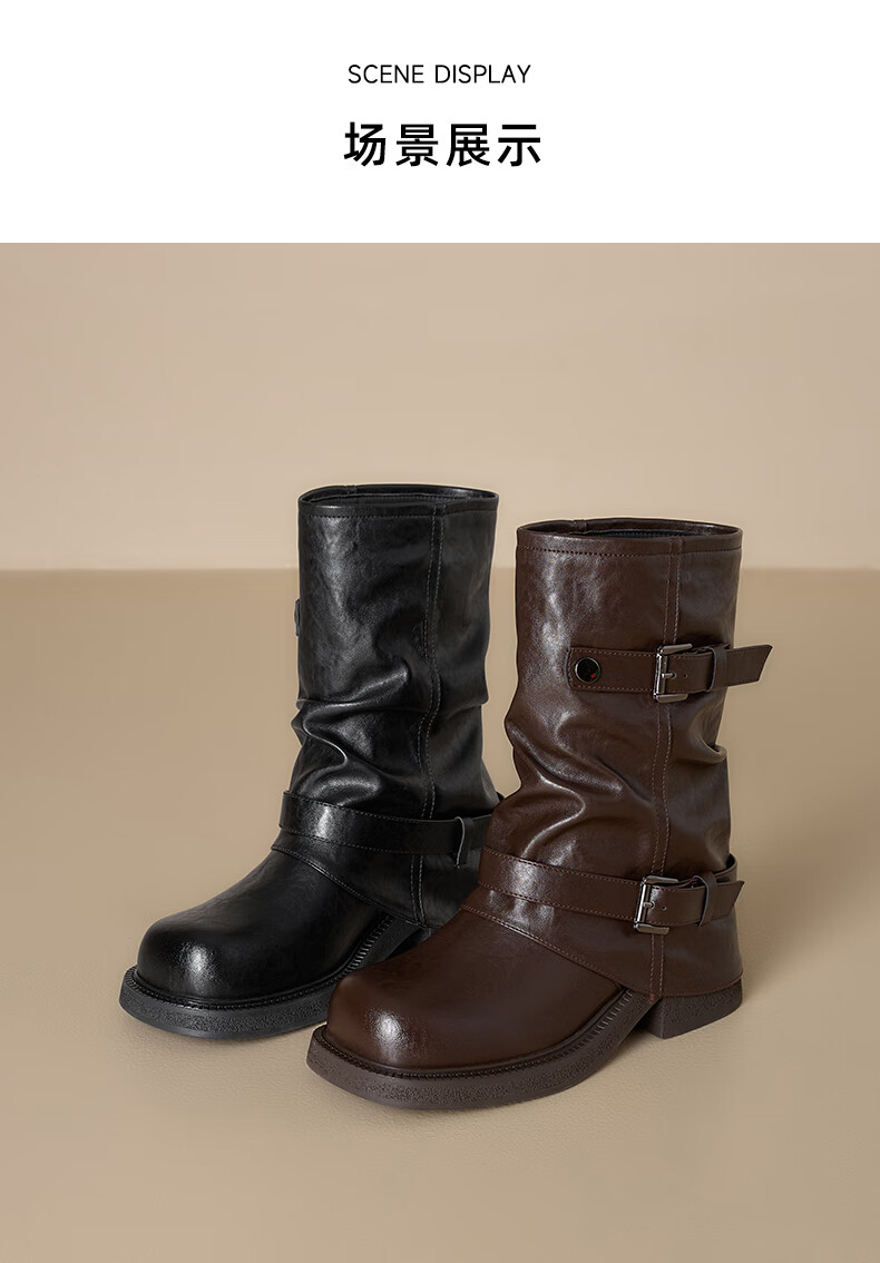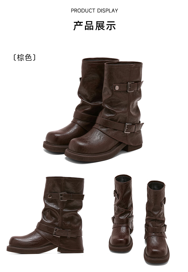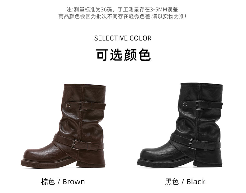 星期六厚底马丁靴女款2025新款冬季棕色短靴复古美拉德堆堆裤管靴 棕色 40
