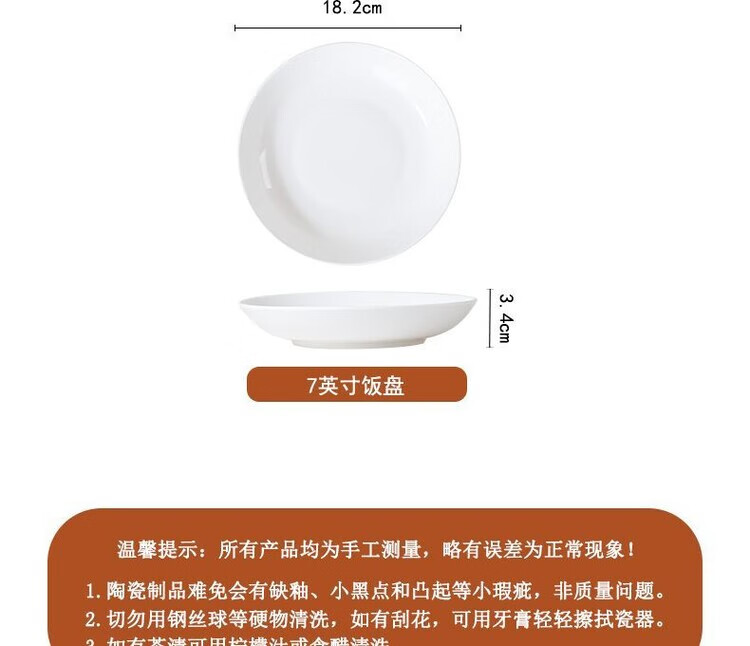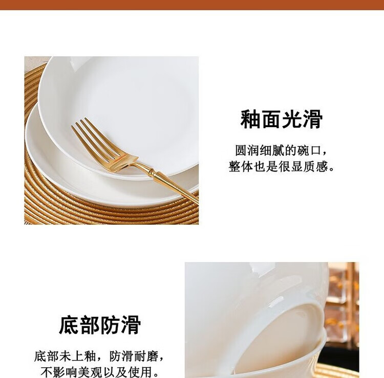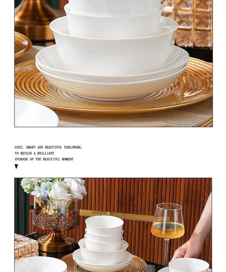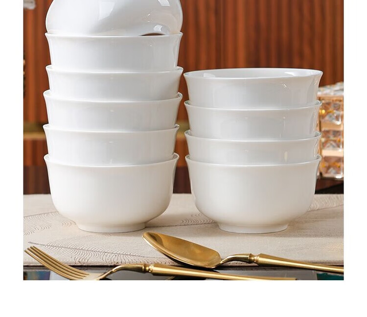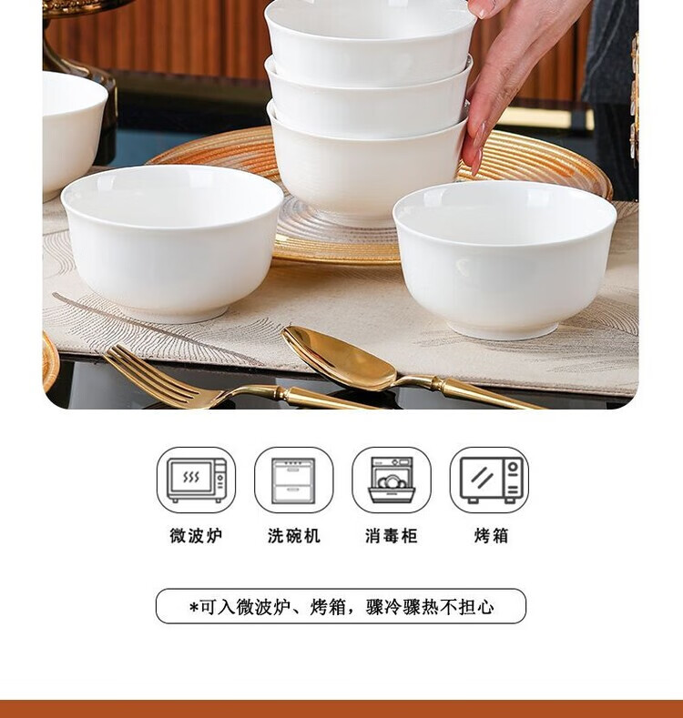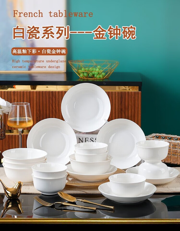 简漾家庭装整套碗盘食品级精致陶瓷碗碟白瓷碗饭碗 聚实惠 【1个补充装】纯白4.5英寸米饭碗