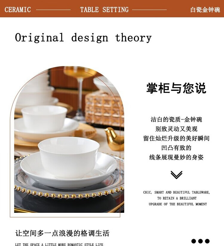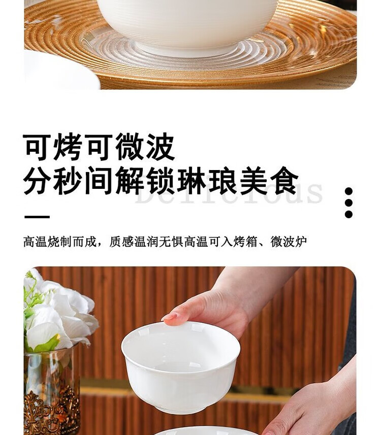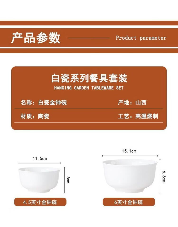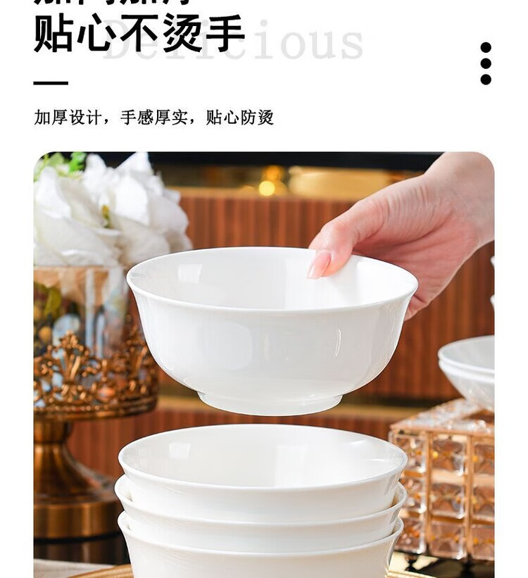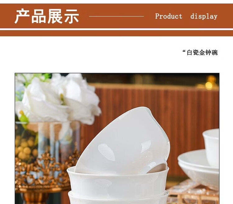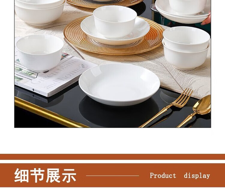 简漾家庭装整套碗盘食品级精致陶瓷碗碟白瓷碗饭碗 聚实惠 【1个补充装】纯白4.5英寸米饭碗