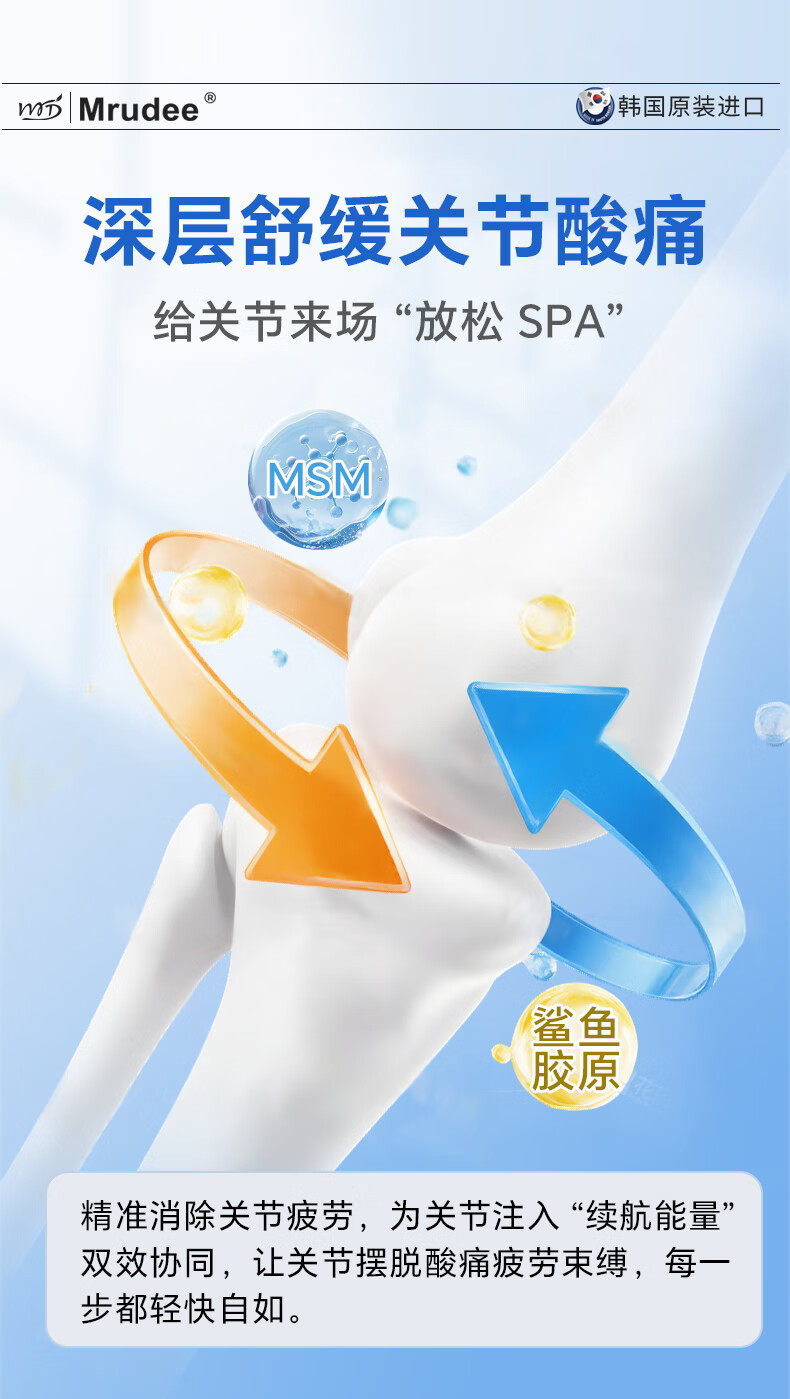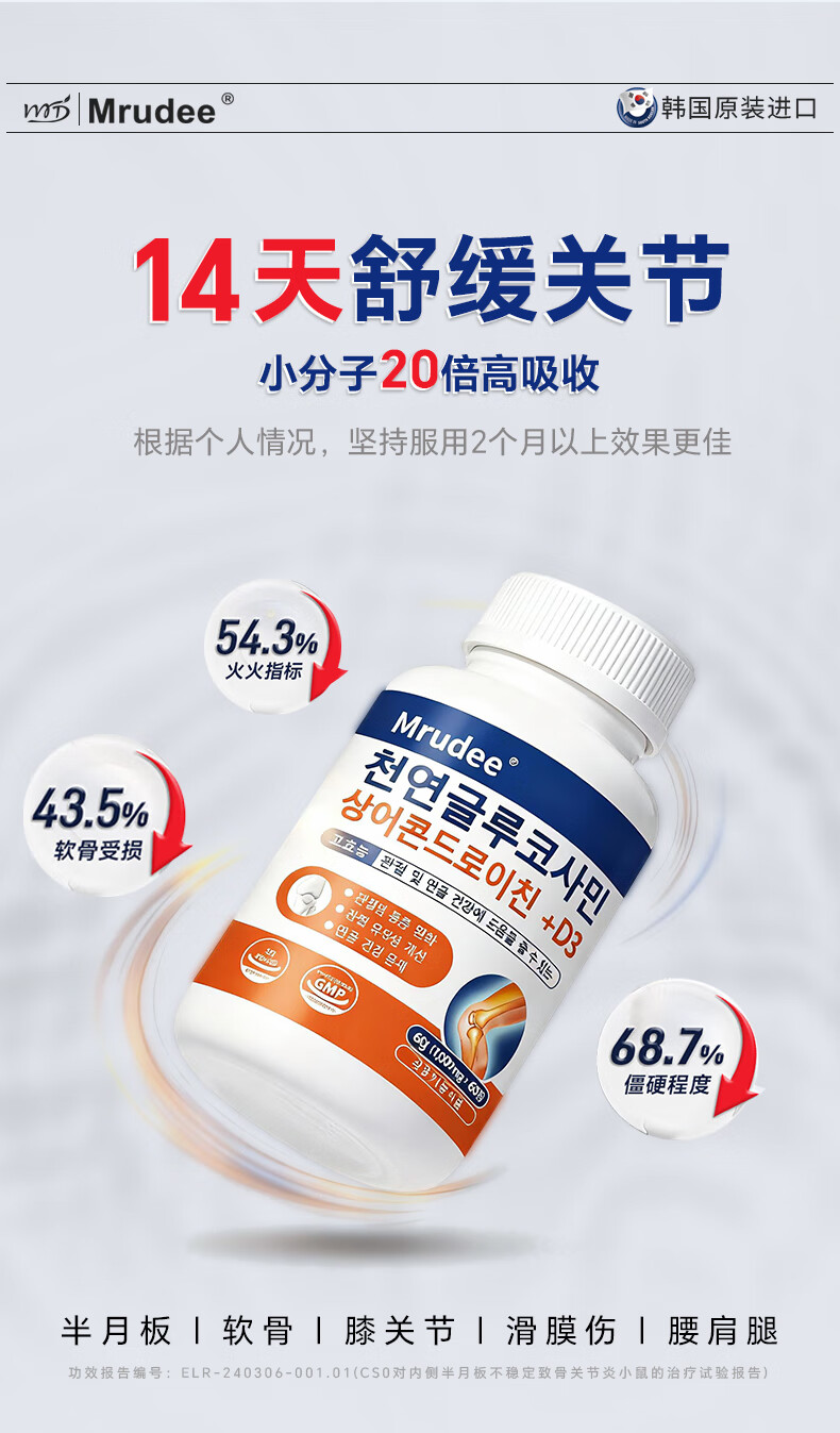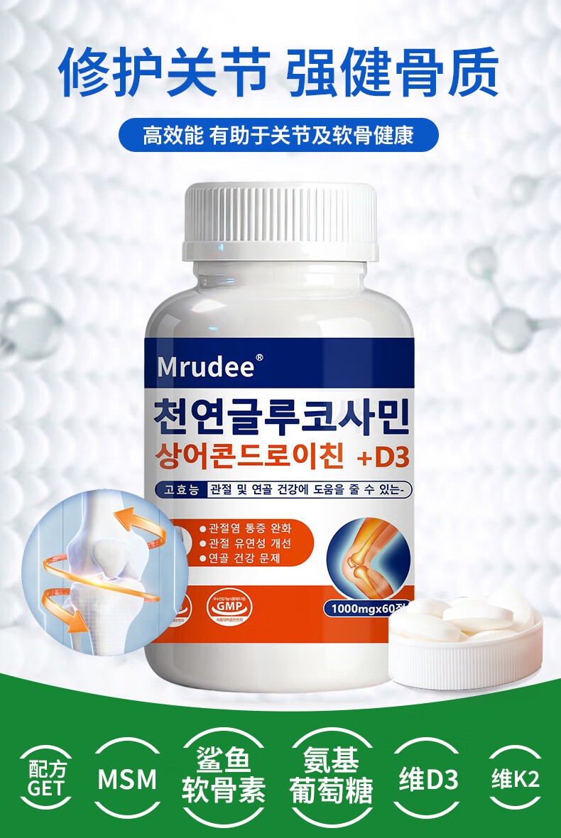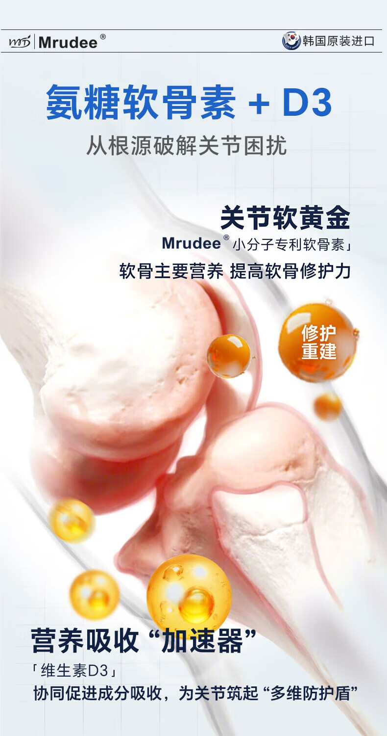 Mrudee氨糖软骨素中老年人韩国进口鲨鱼维骨力关节半月板膝盖补软骨密度 【关节痛/半月板骨质】2瓶 7天见效专业版