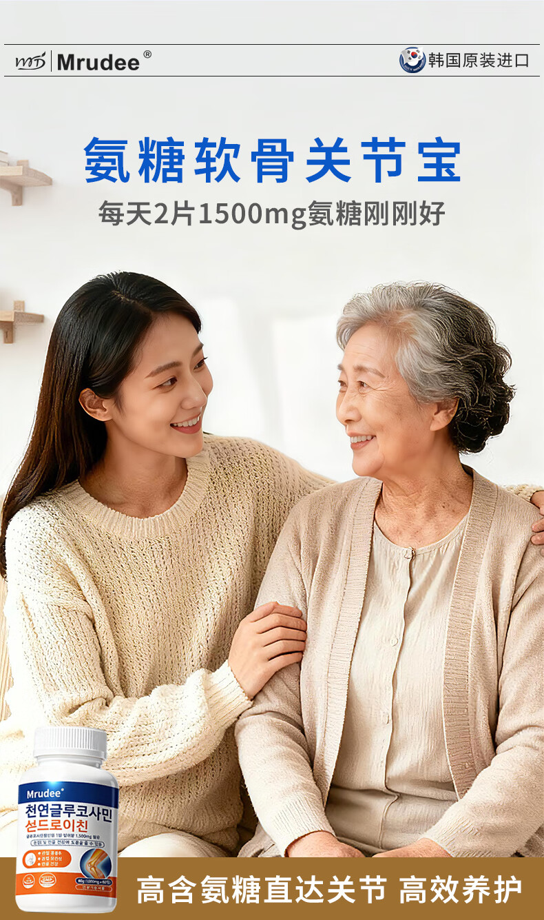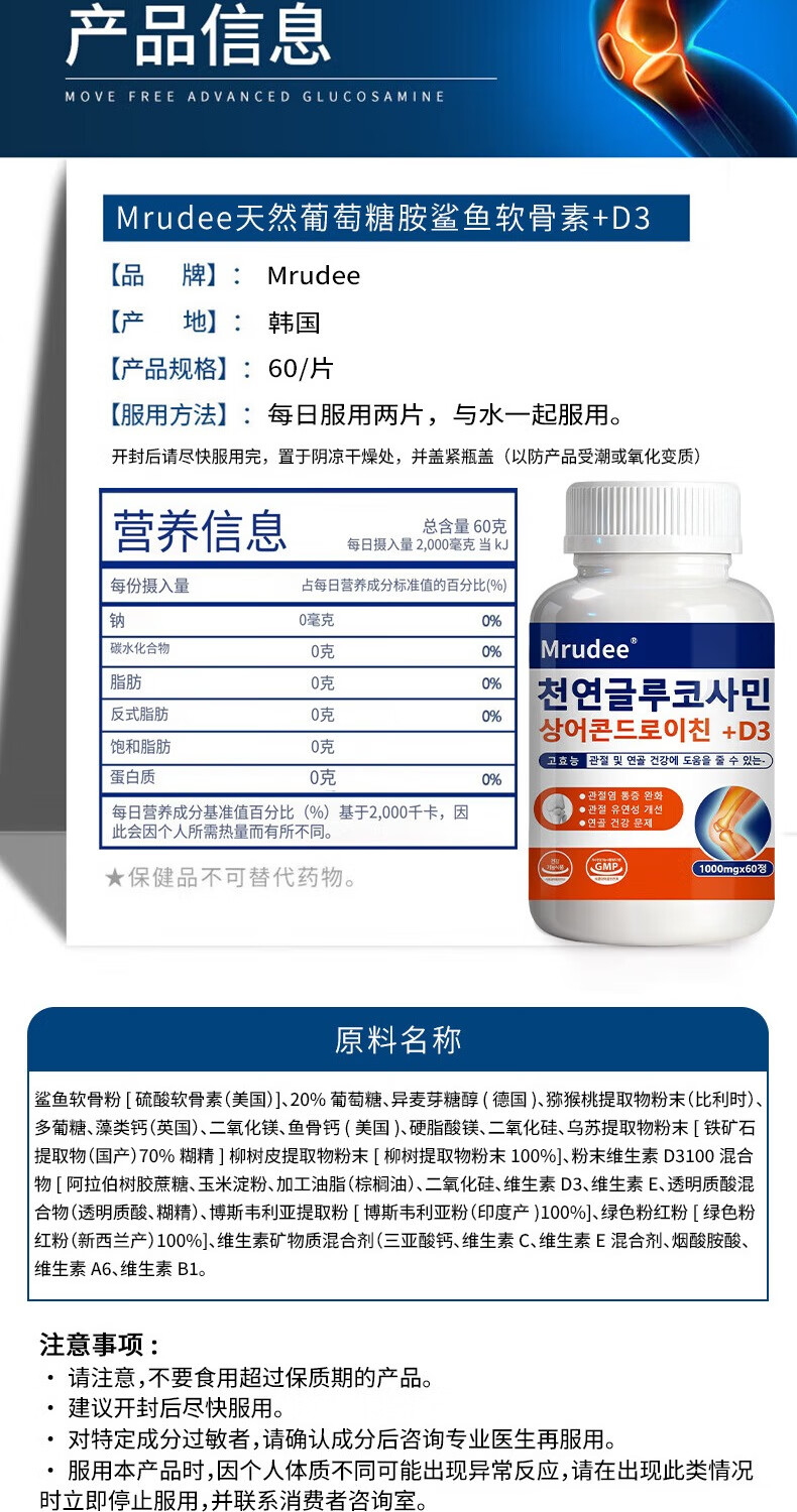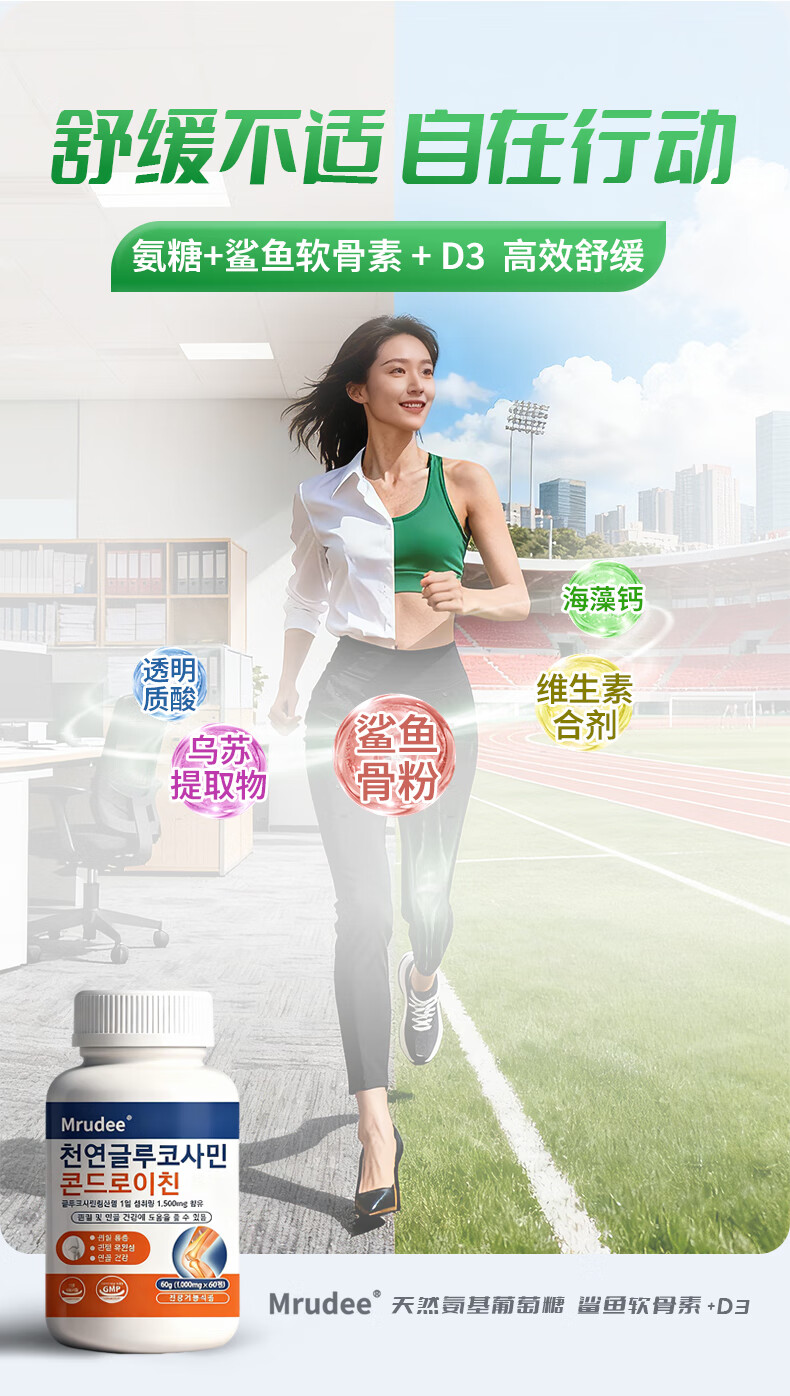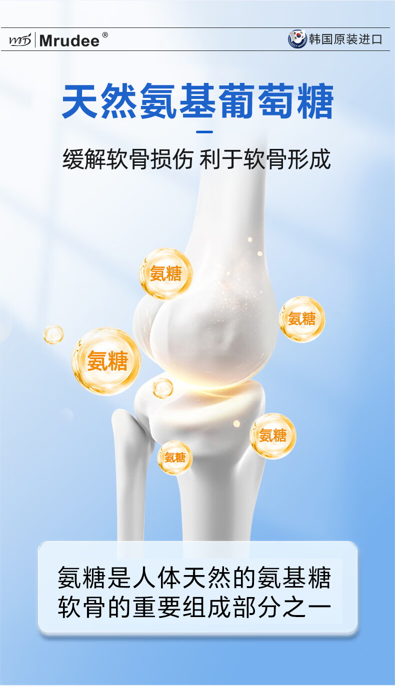 Mrudee氨糖软骨素中老年人韩国进口鲨鱼维骨力关节半月板膝盖补软骨密度 【关节痛/半月板骨质】2瓶 7天见效专业版