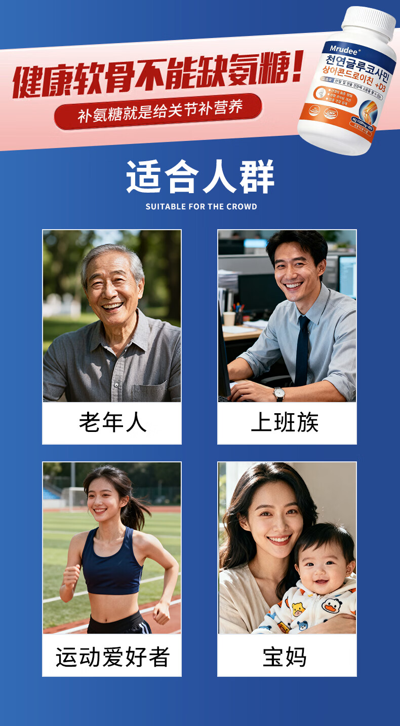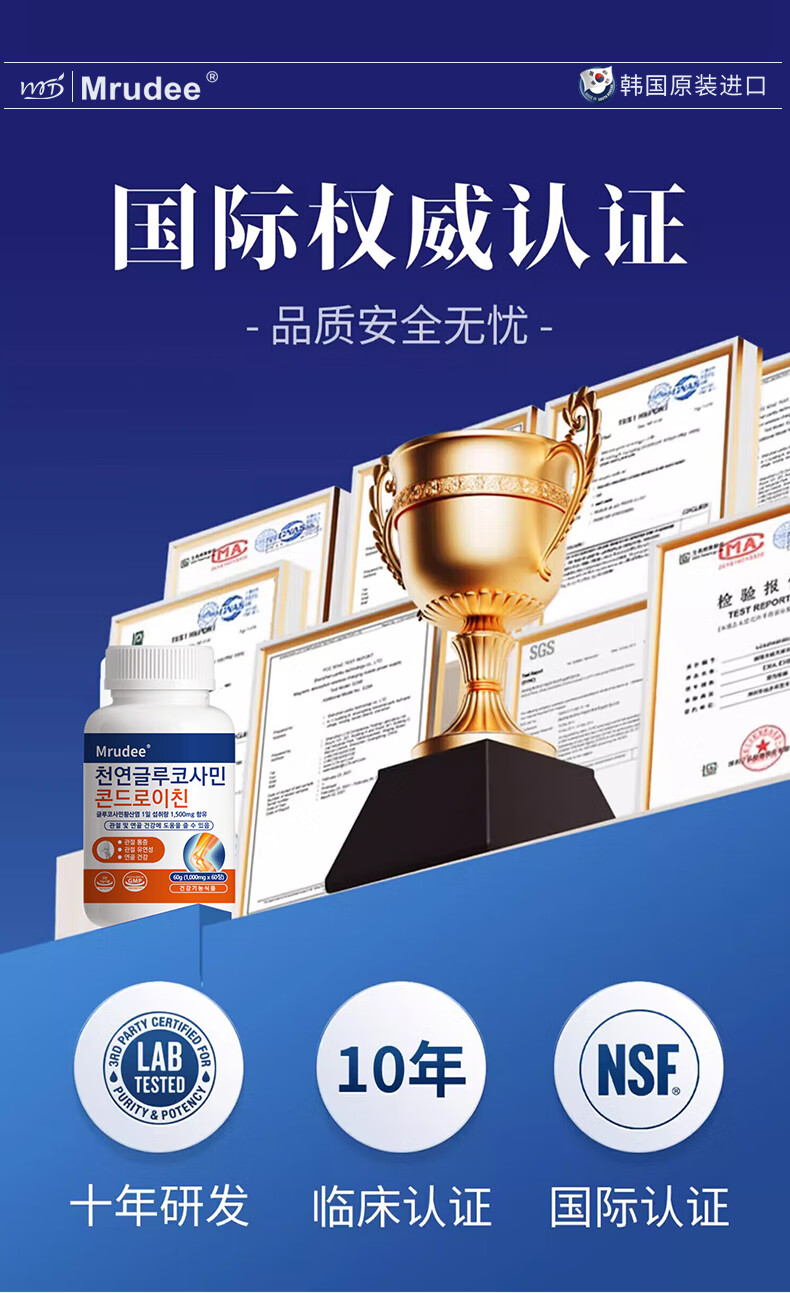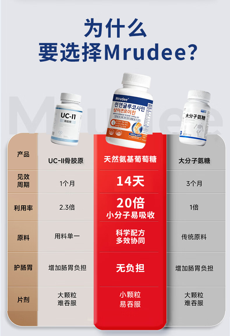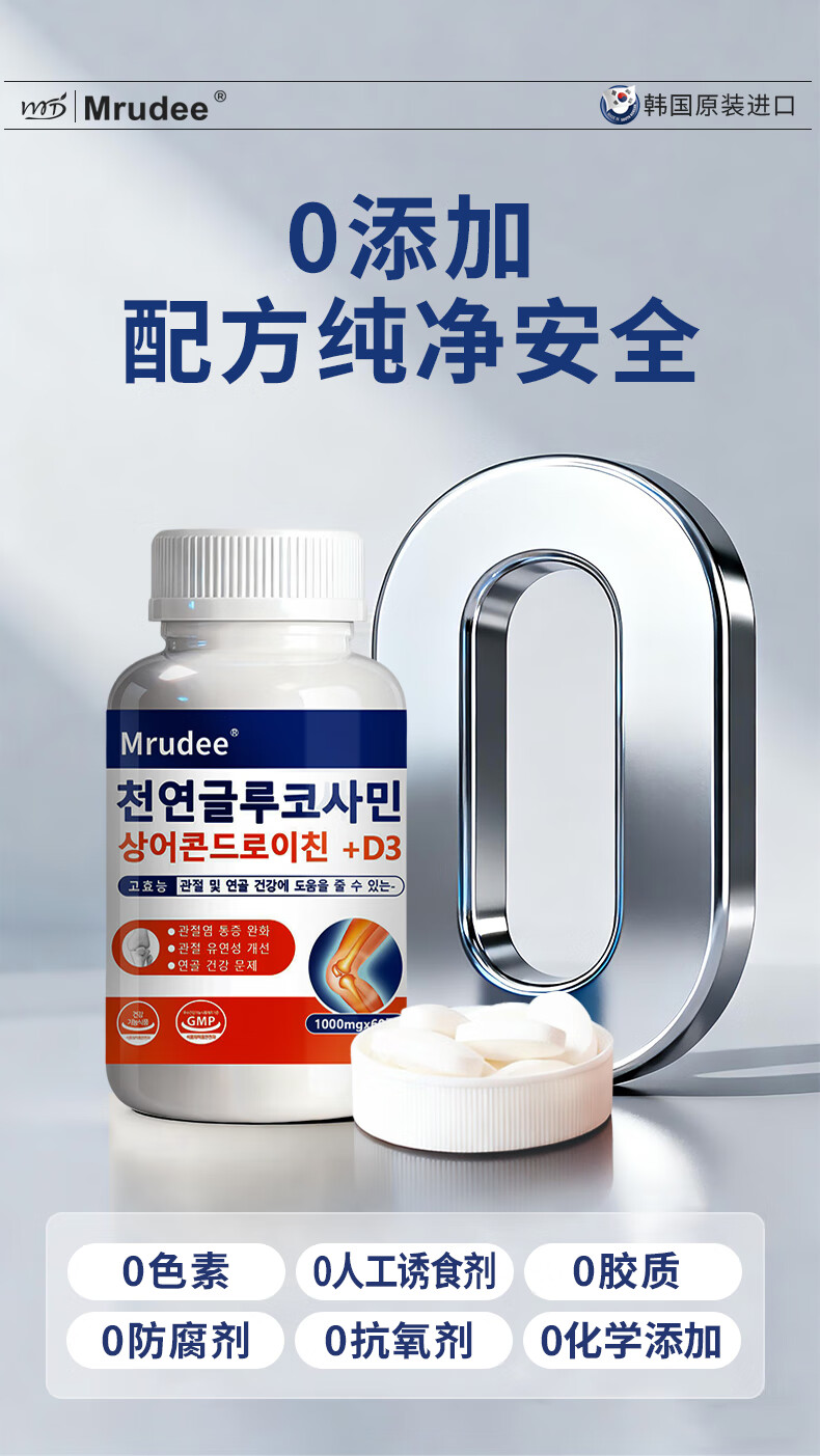 Mrudee氨糖软骨素中老年人韩国进口鲨鱼维骨力关节半月板膝盖补软骨密度 【关节痛/半月板骨质】2瓶 7天见效专业版