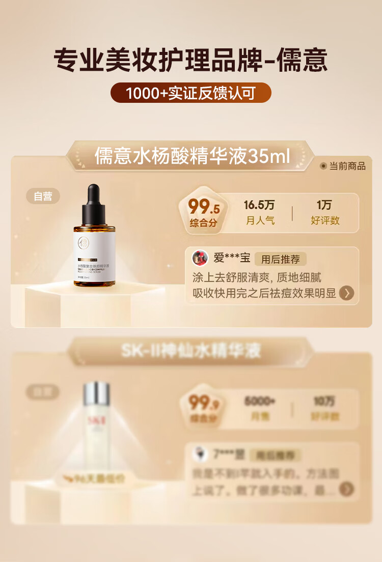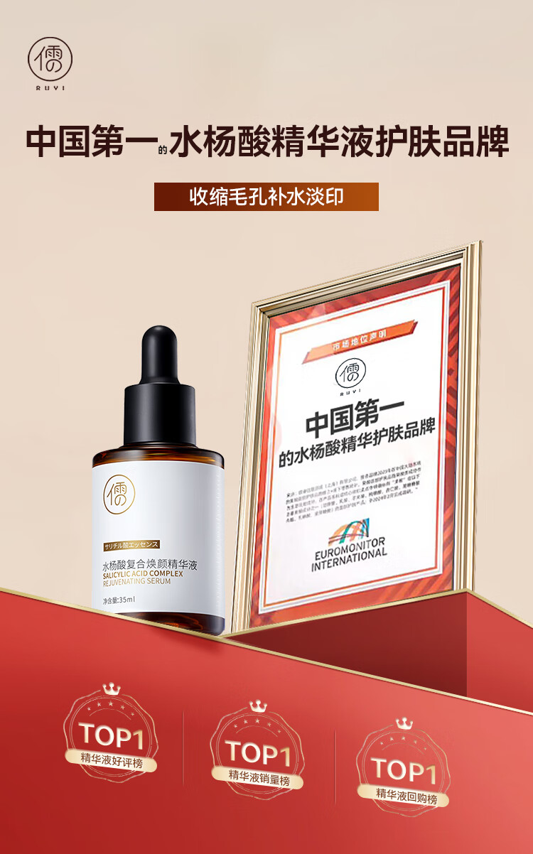儒意(RUYI)水杨酸精华液果酸收缩毛孔粗大可搭祛痘修复淡化痘印痘坑清理闭口