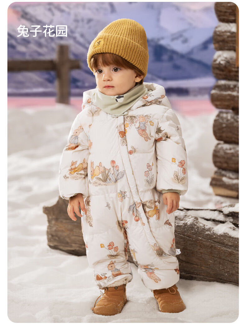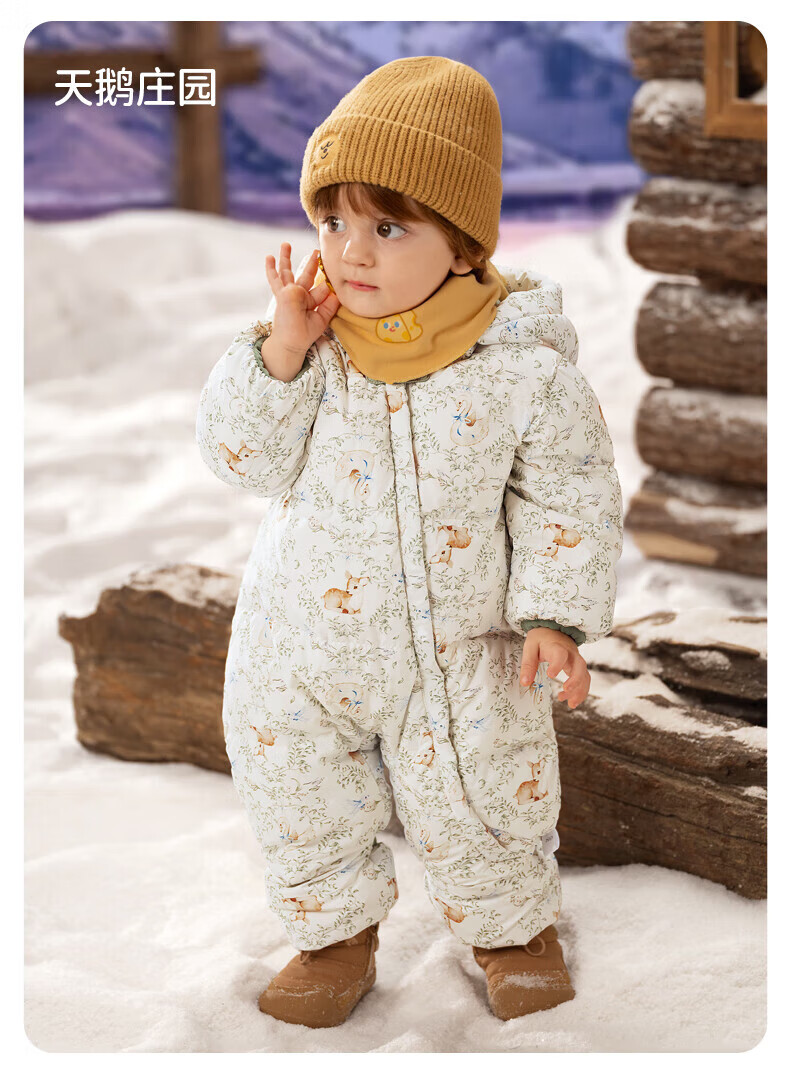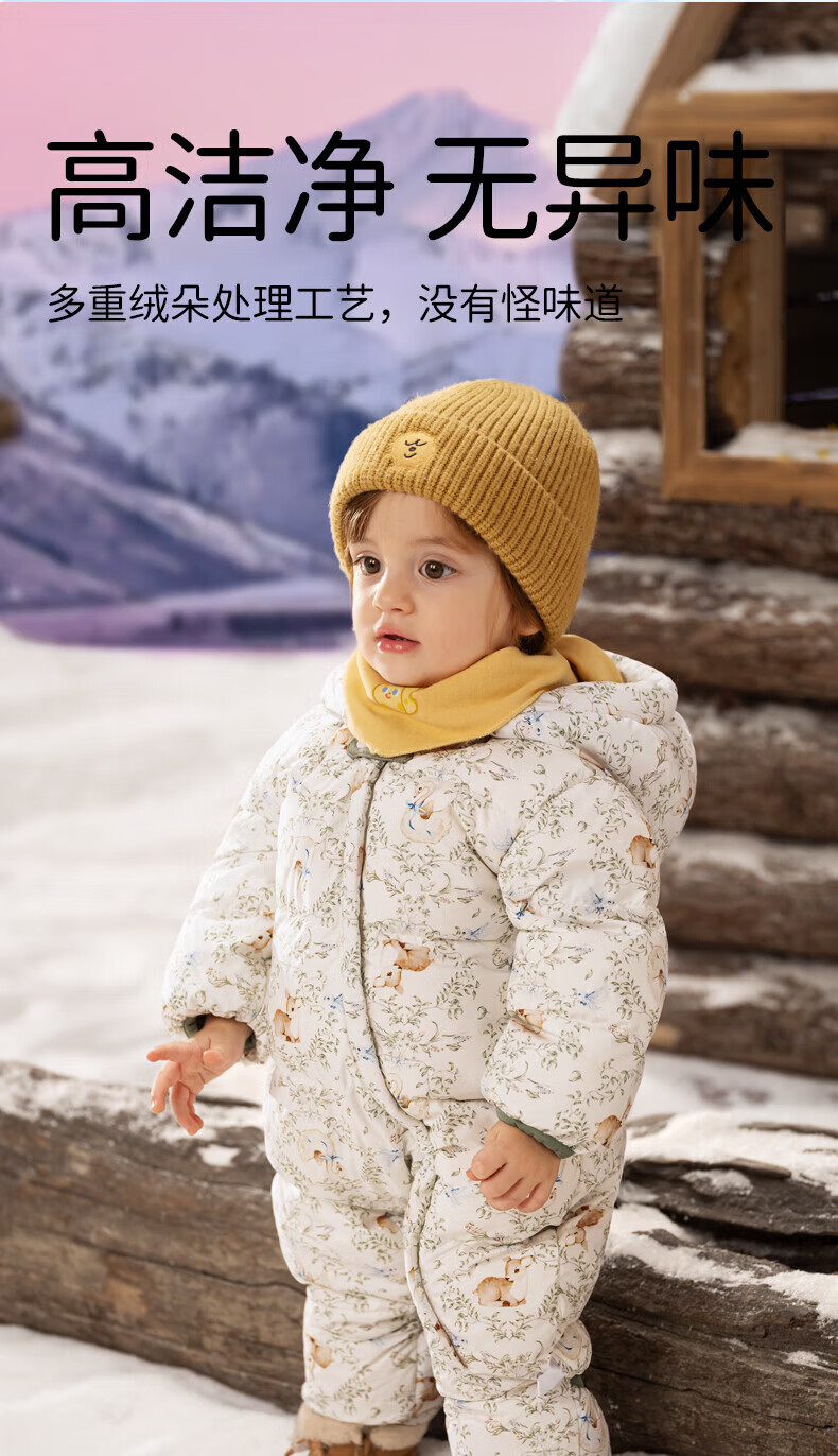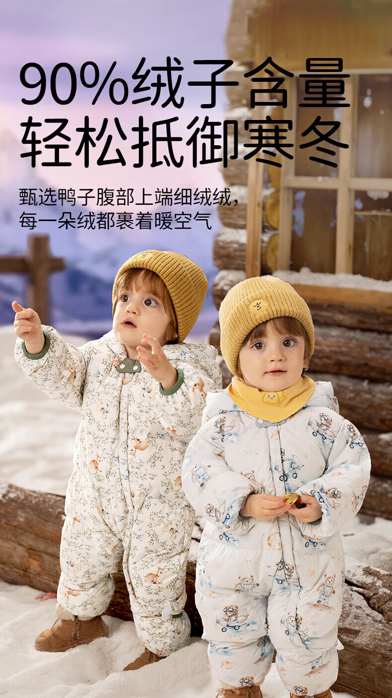 欧孕(OUYUN)婴儿羽绒服连体衣冬季宝宝外出衣服保暖秋冬装白鸭绒哈衣爬服 飞行小熊【保暖90白鸭绒】 90cm