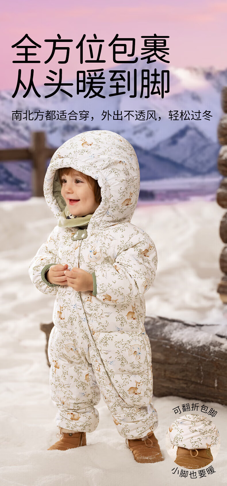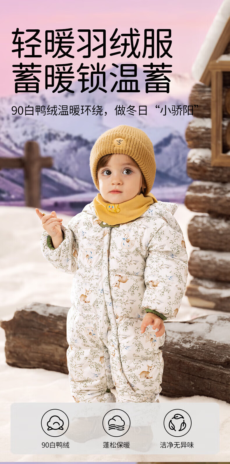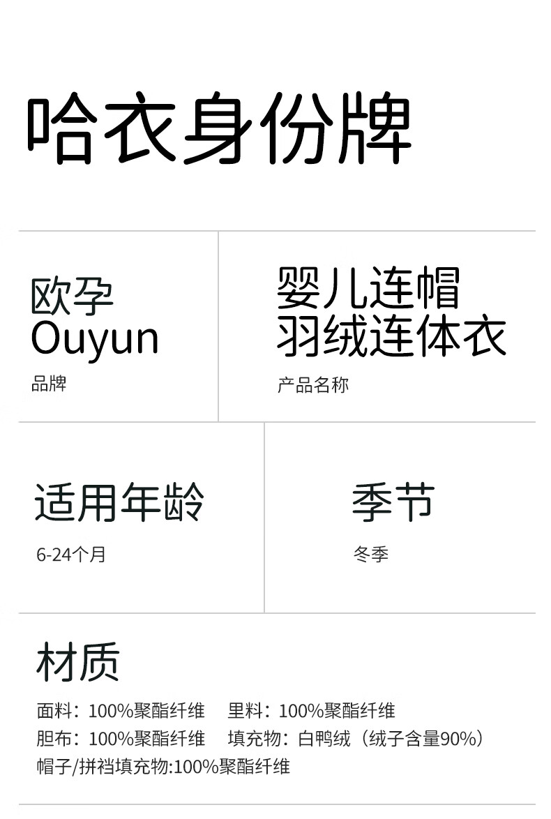欧孕(OUYUN)婴儿羽绒服连体衣冬季宝宝外出衣服保暖秋冬装白鸭绒哈衣爬服 飞行小熊【保暖90白鸭绒】 90cm