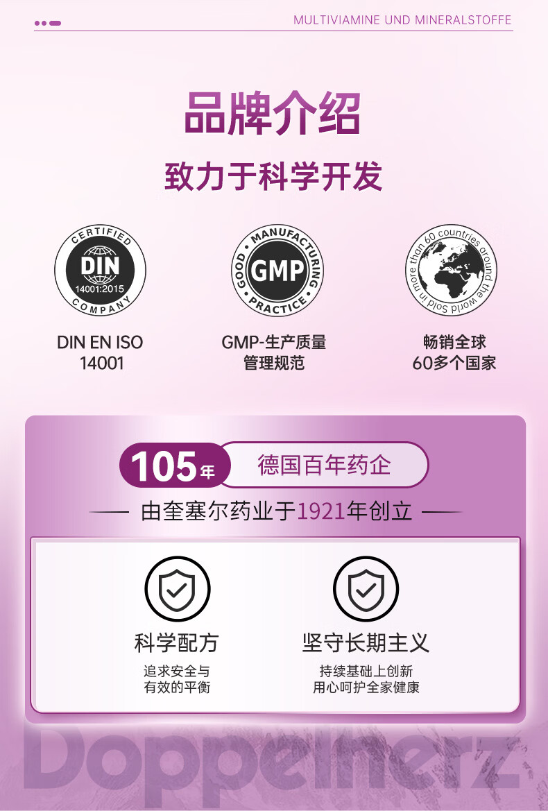 双心(Doppel herz)女士复合维生素17种营养叶酸烟酰胺生物素B族60粒/盒【联盟专享】 16种营养多维【1周期】 60粒*2盒 60粒*2盒