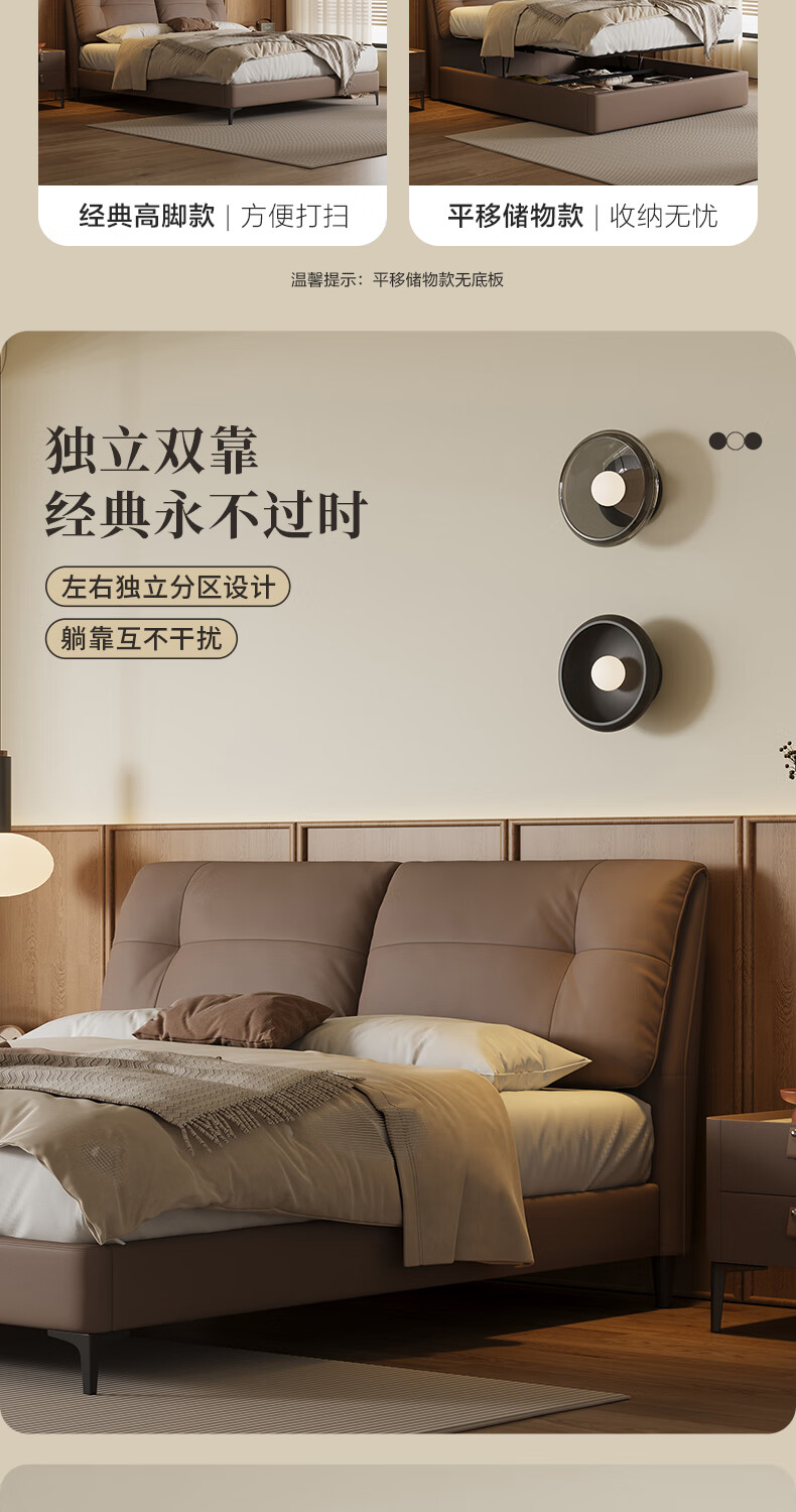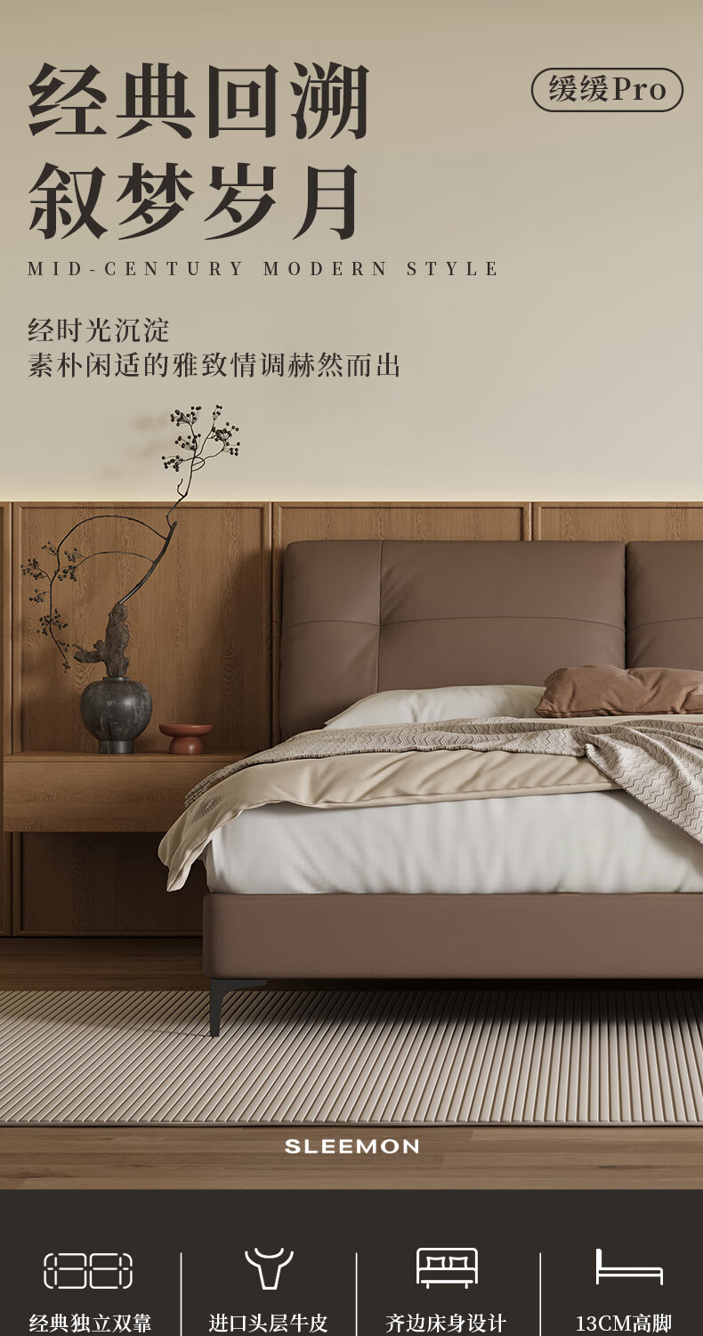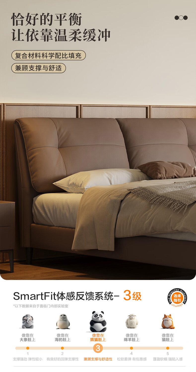 喜临门皮艺双人床主卧真皮大床复古风卧室婚床家具缓缓pro[床架] 云雾米+白骑士plus床垫 1.8*2米