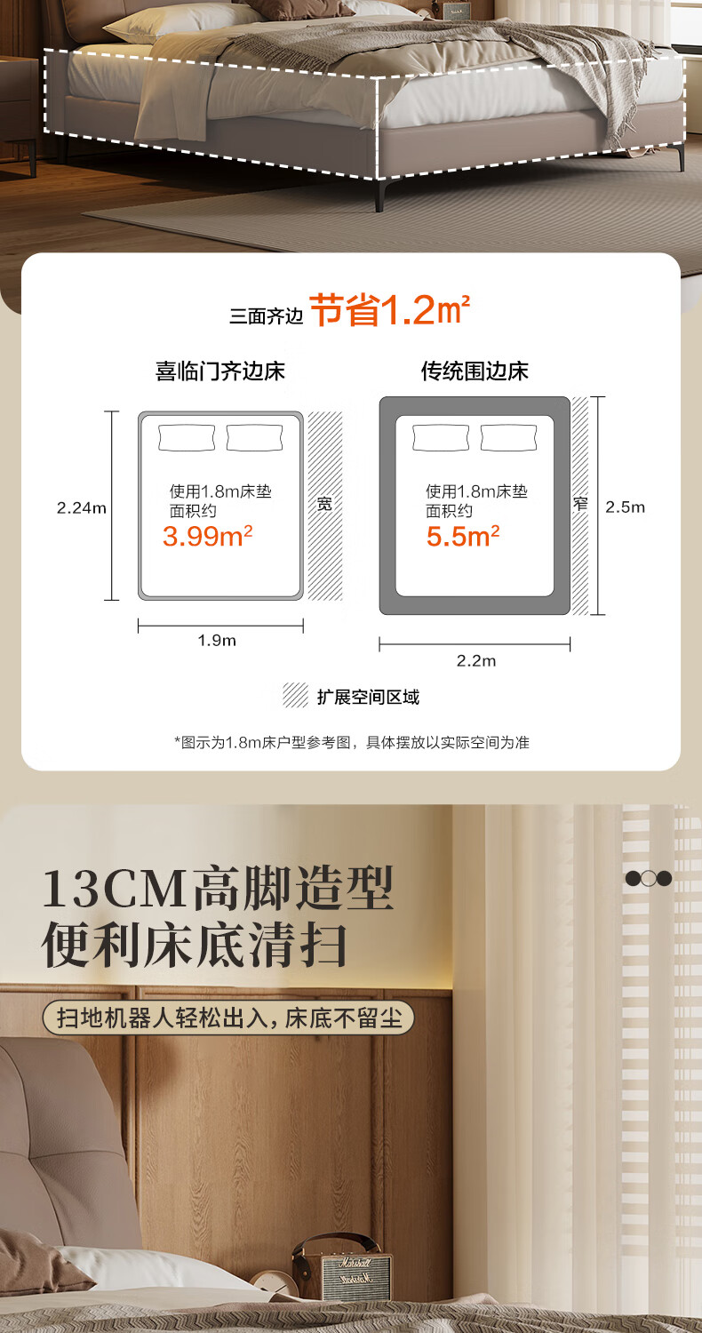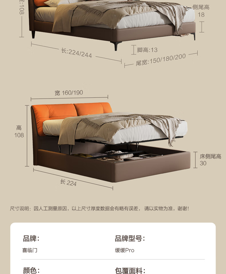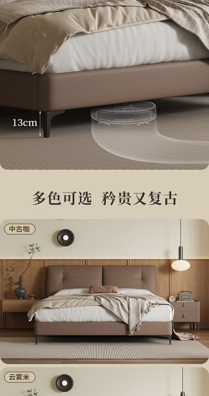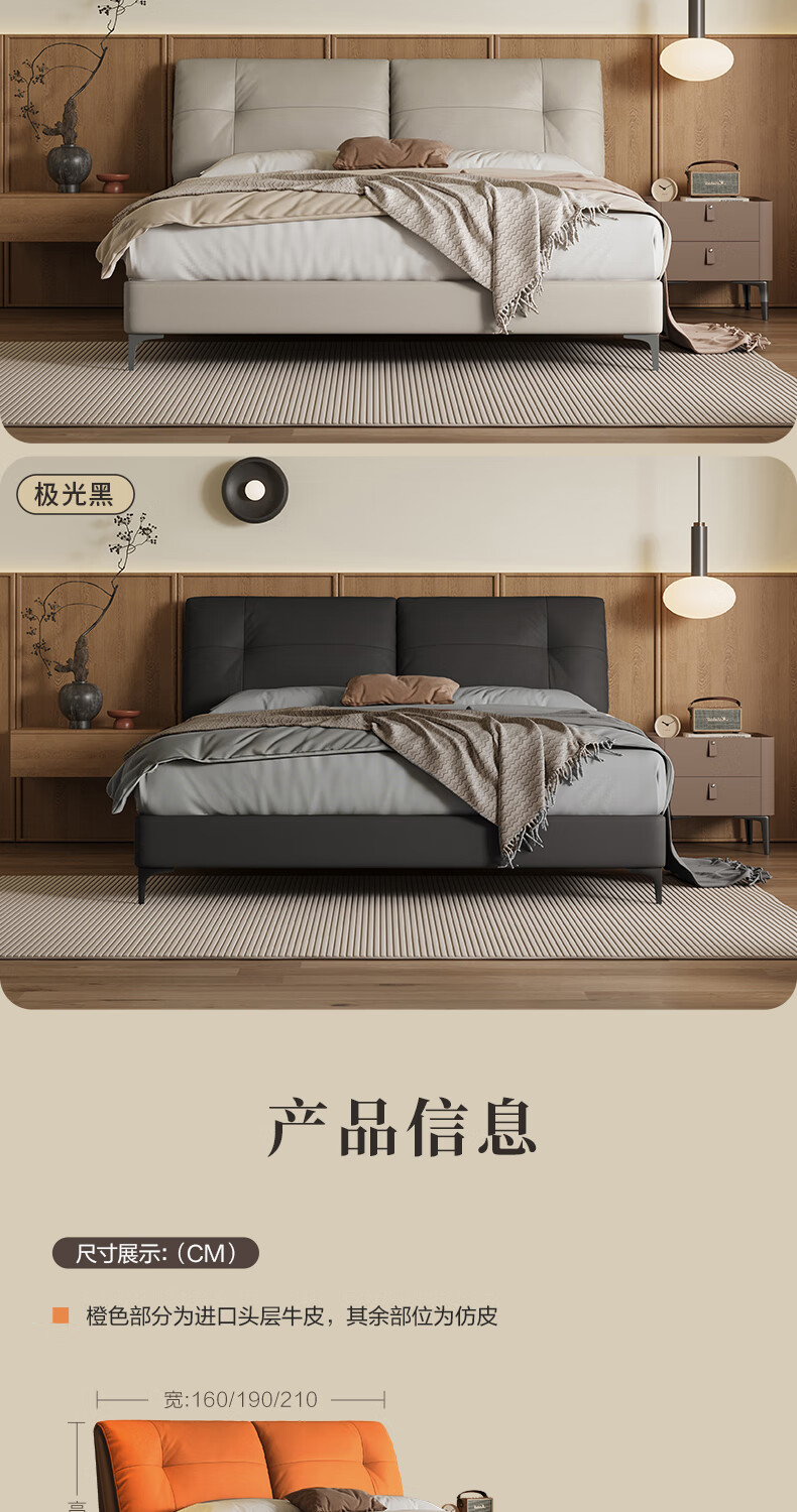 喜临门皮艺双人床主卧真皮大床复古风卧室婚床家具缓缓pro[床架] 云雾米+白骑士plus床垫 1.8*2米