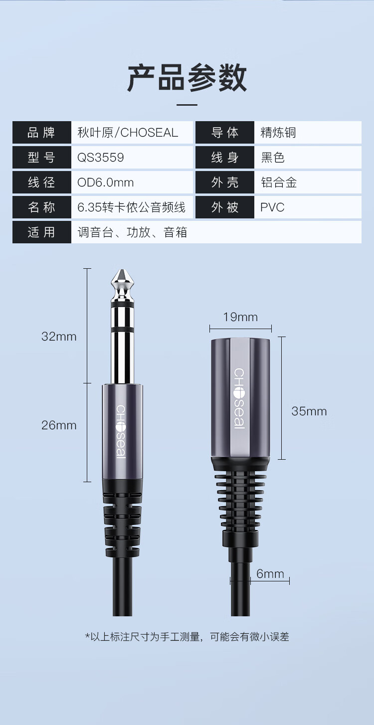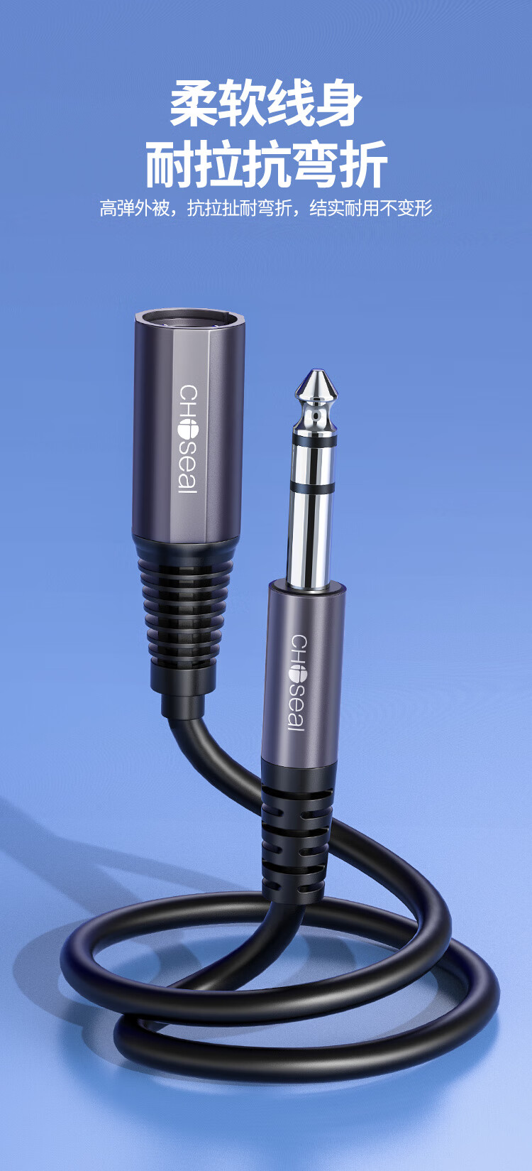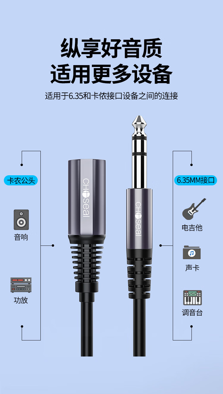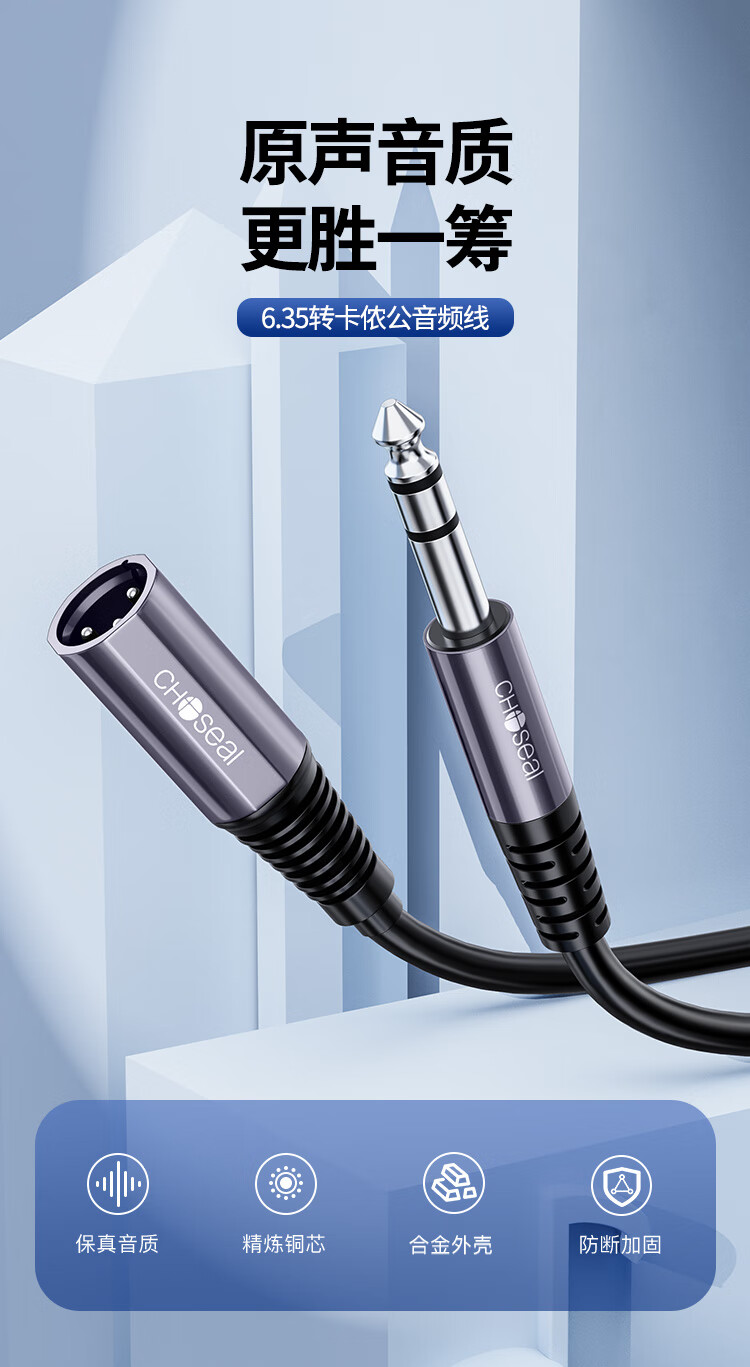 秋叶原(CHOSEAL) 6.5mm转卡侬公音频线 6.35公对卡农公话筒 三芯XLR立体声麦克风调音台音响功放 5米 QS3559T5