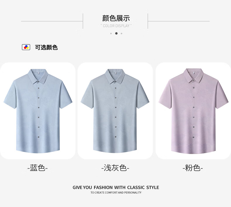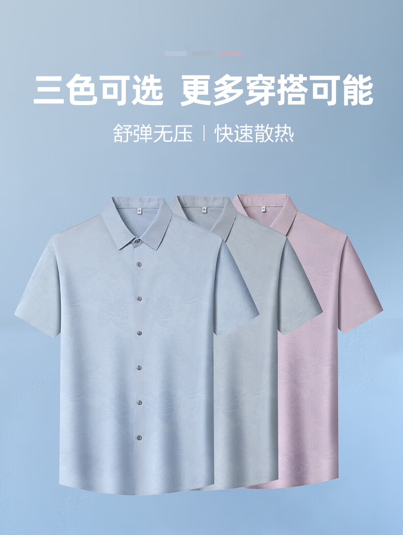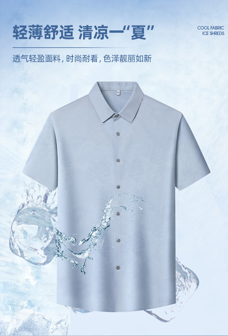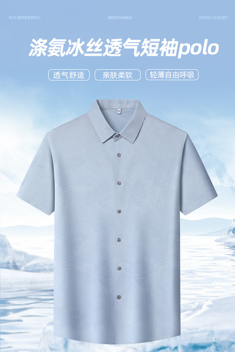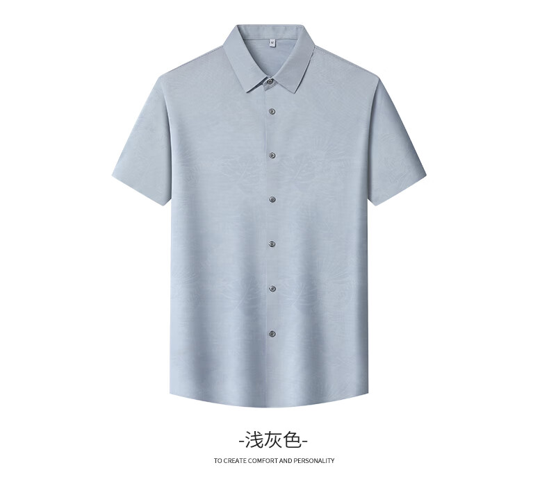 SHANSHAN杉杉短袖衬衫男2026夏季新款上班通勤休闲日常双面印花翻领POLO衫 浅灰色 M /170