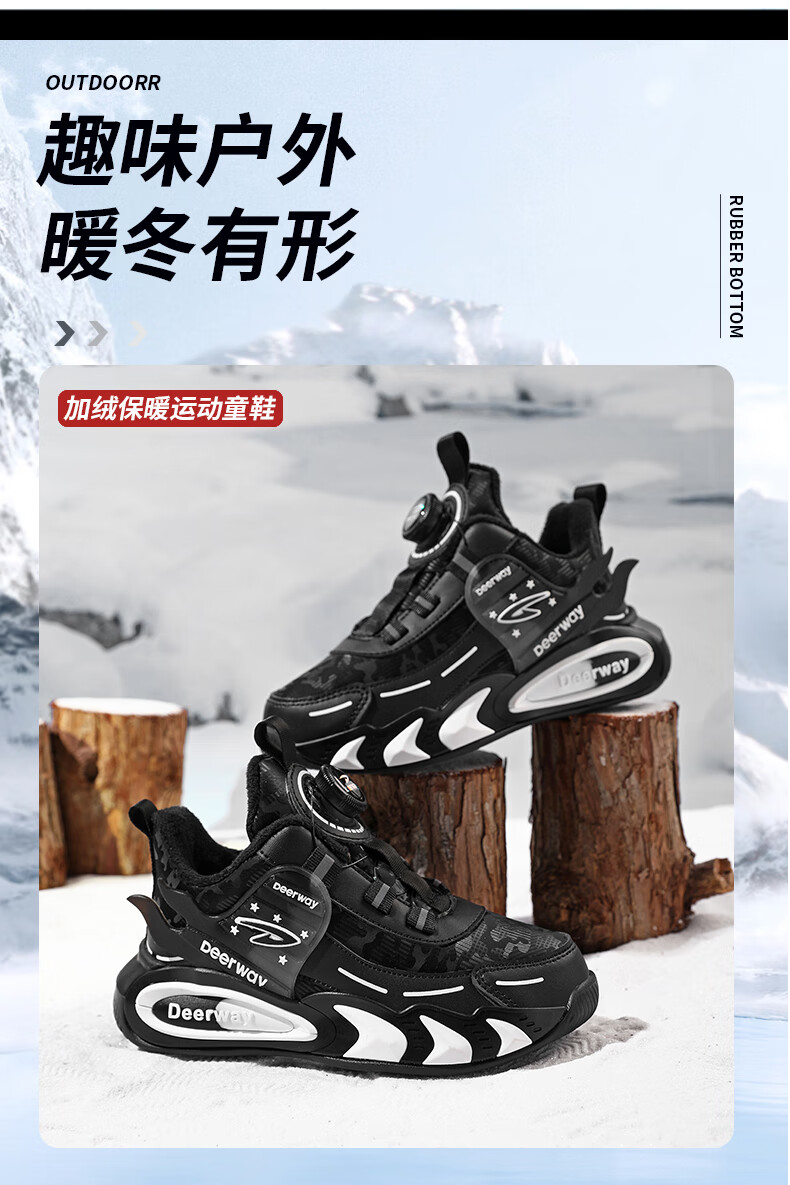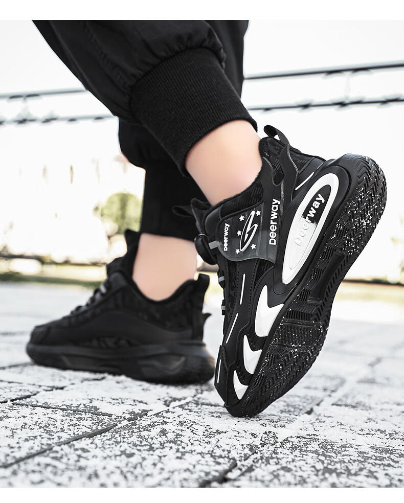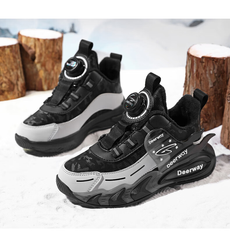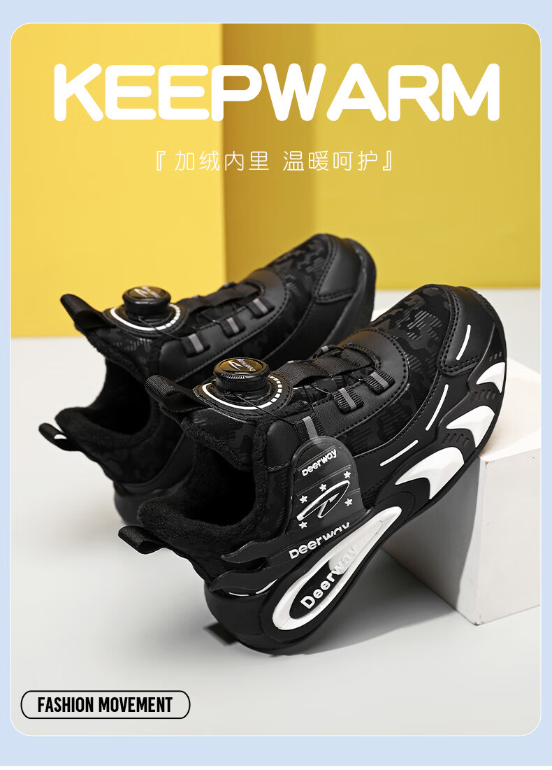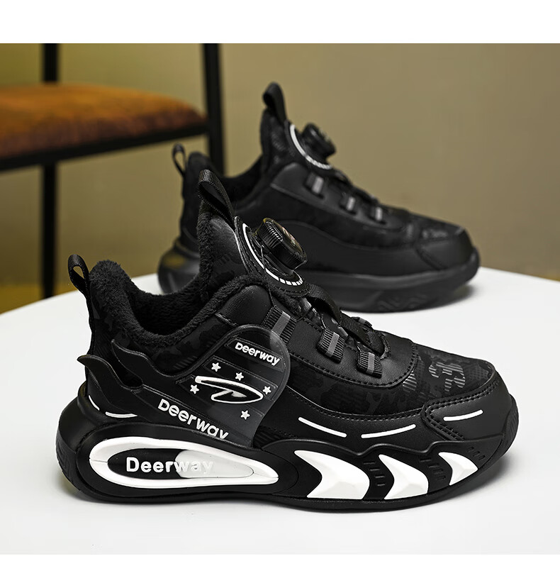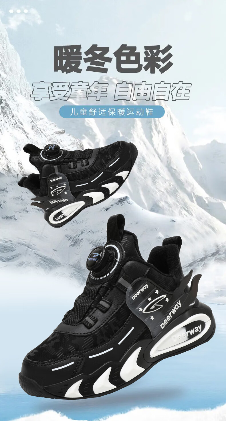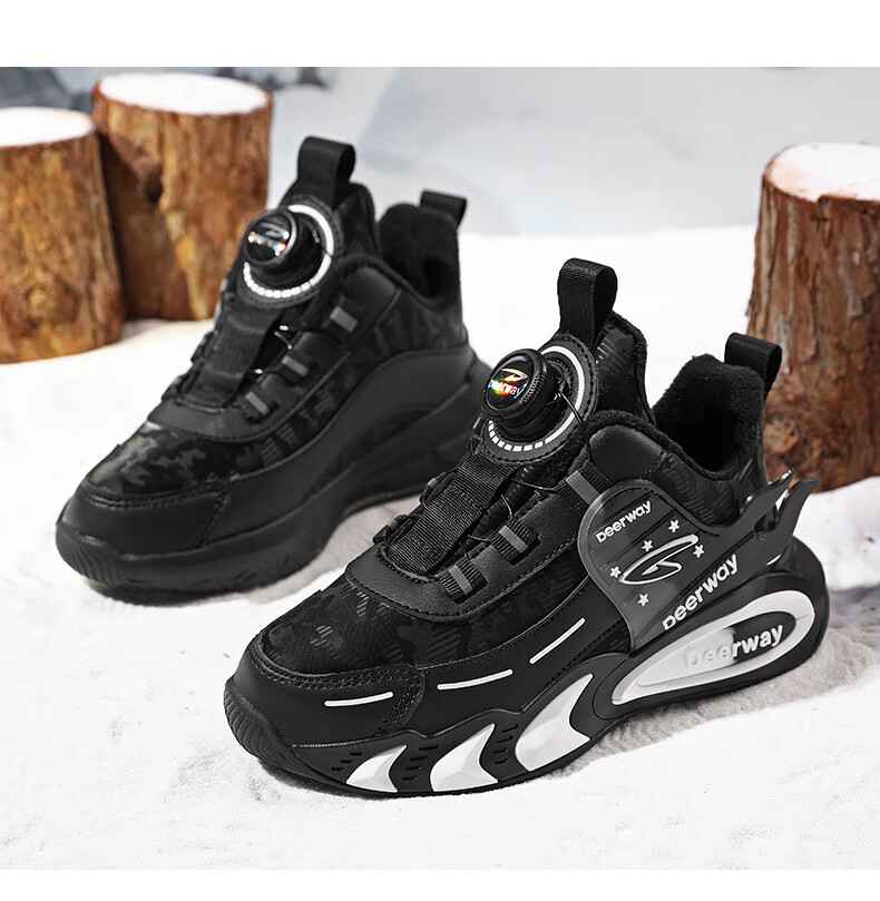 德尔惠儿童运动鞋男中大童2025年秋冬款革面防水防滑男生跑步鞋子二棉 D6657黑色【二棉】 36 内长23.0/脚22.0